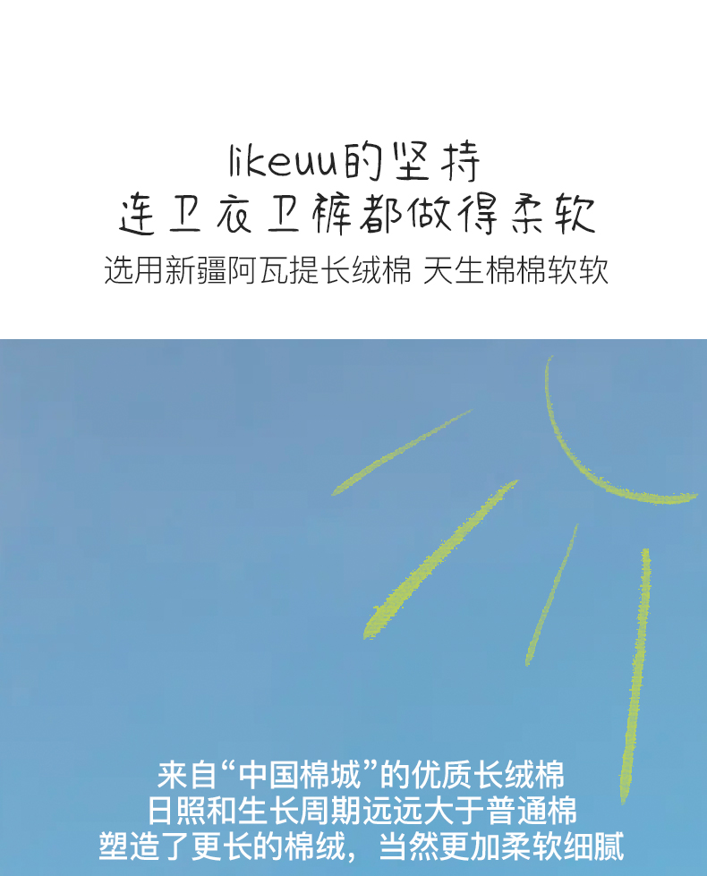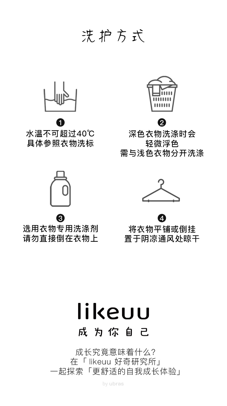 - likeuu是专注于为6~15岁的青少年创造柔软、无束缚的成长体验,以好奇心为灵感的成长发育期贴身衣物品牌。likeuu的产品覆盖内衣、内裤、保暖衣、家居服、运动等品类。