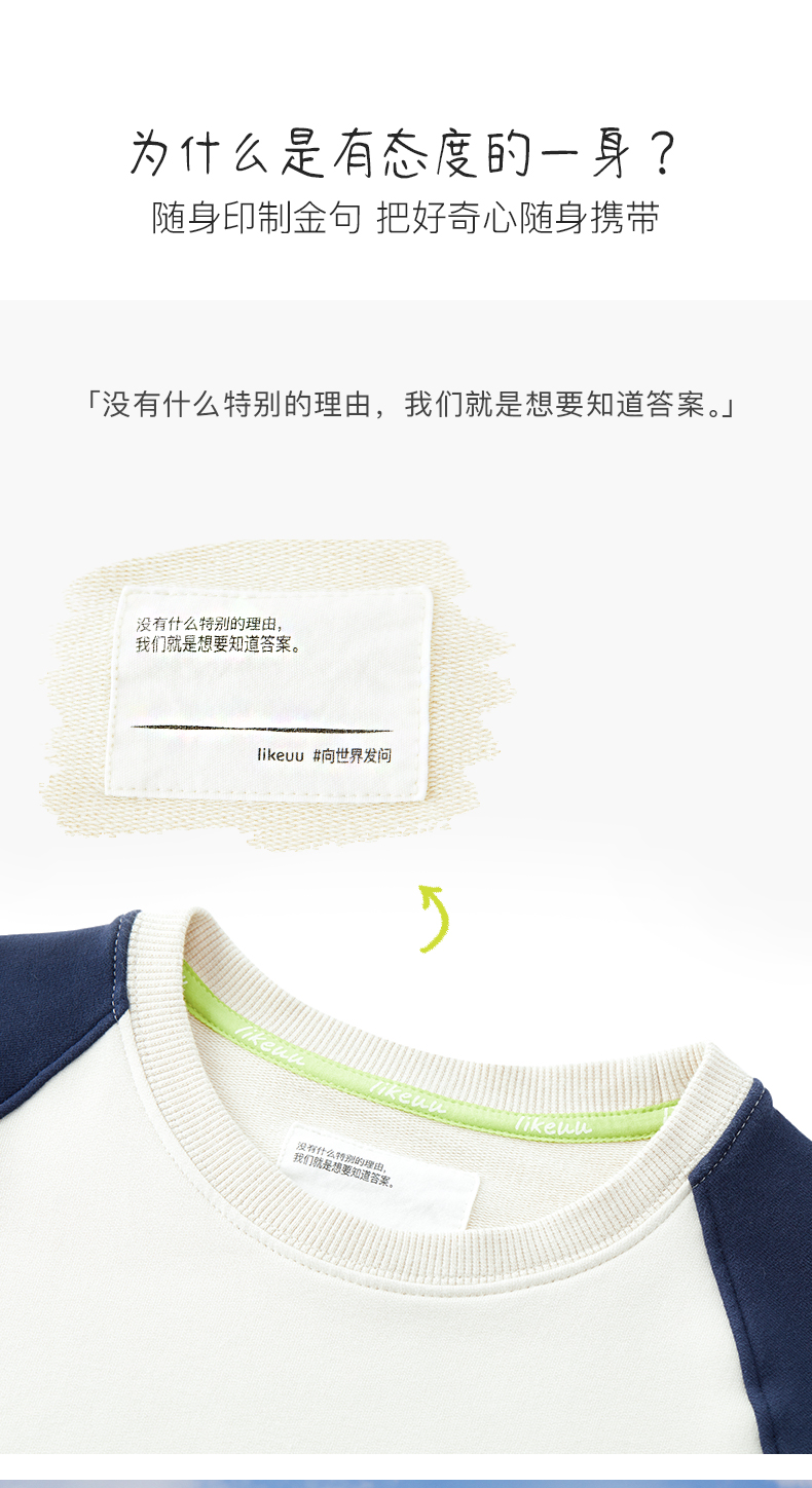 likeuu儿童卫衣卫裤男女中大童休闲探索圆领卫衣ZY
