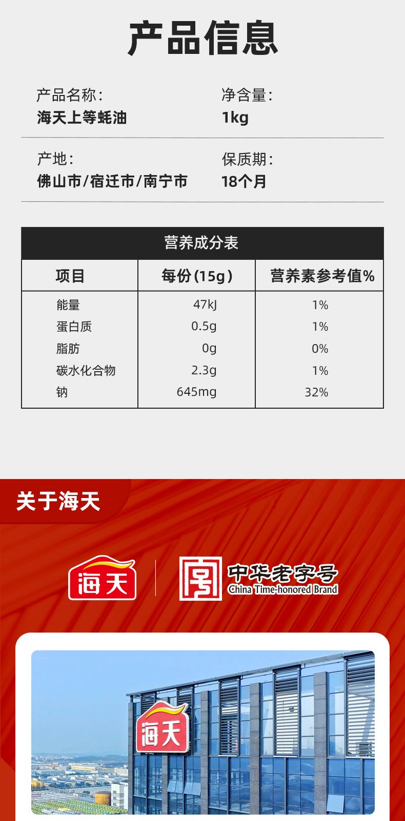 海天1kg上等蚝油挤挤装【一箱请拍12瓶】