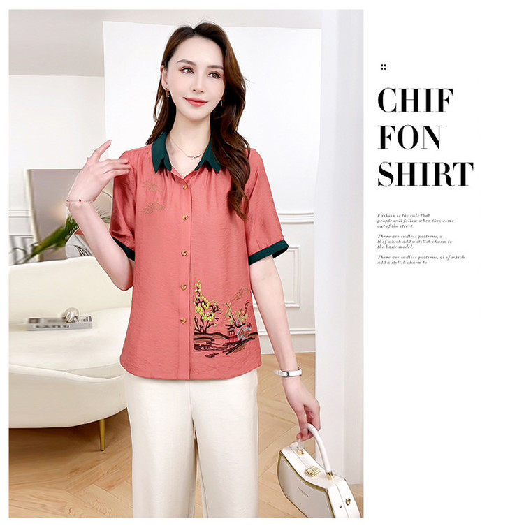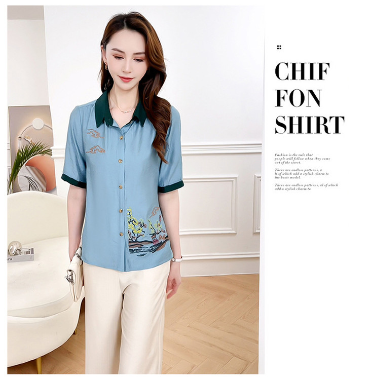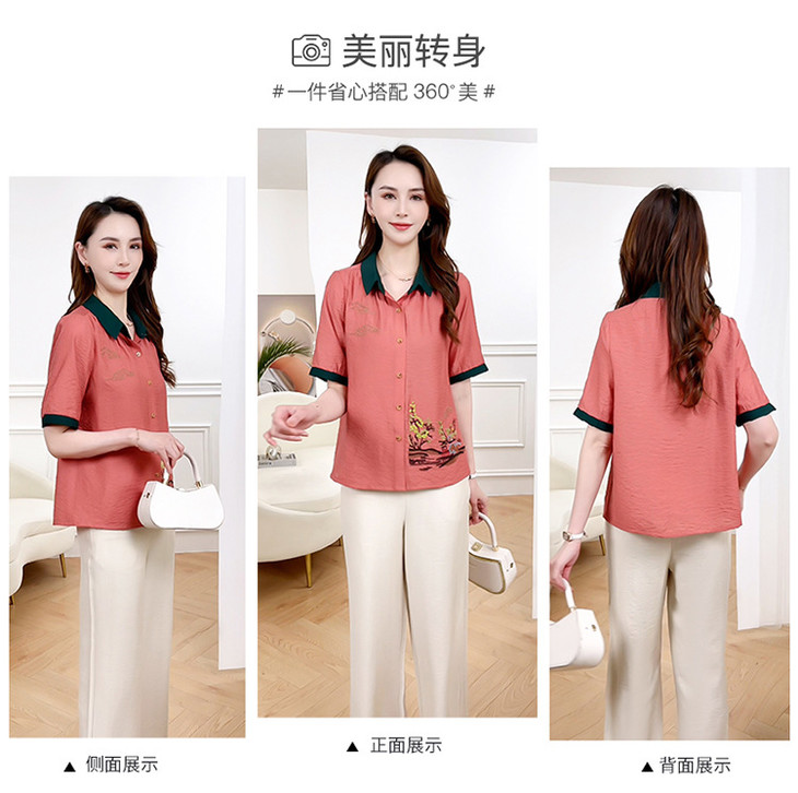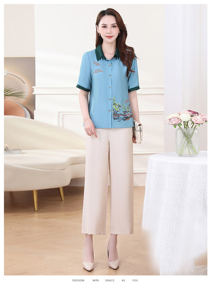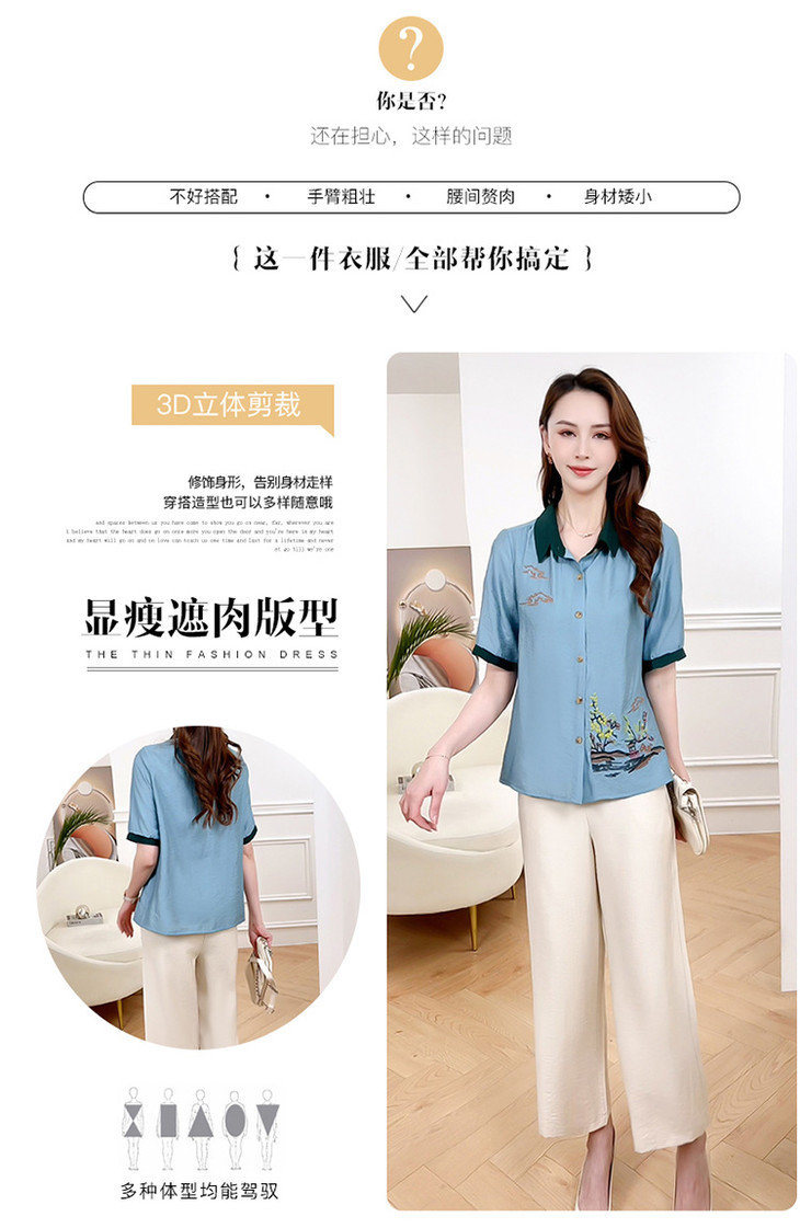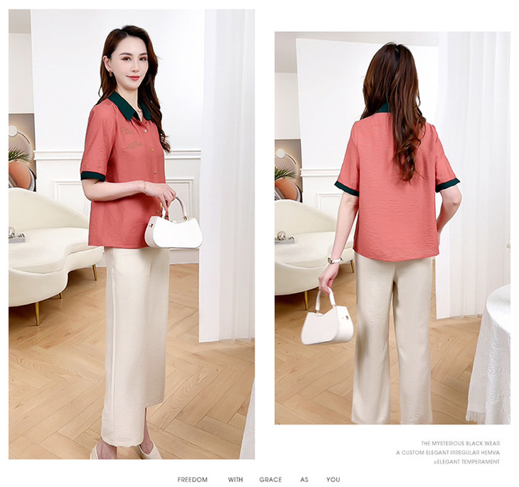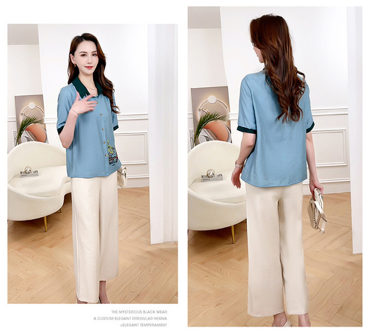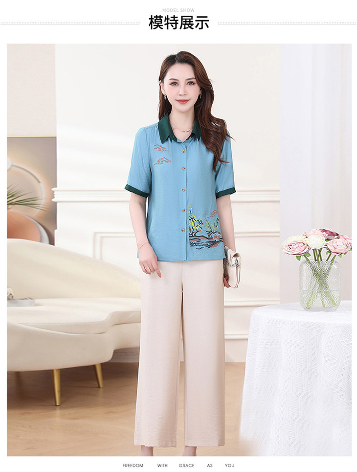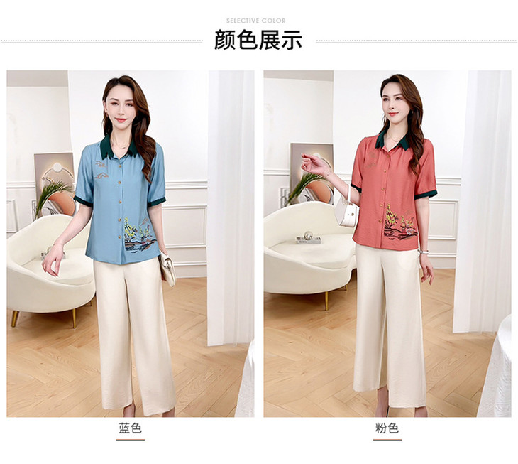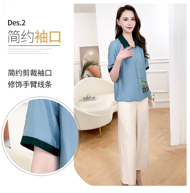 QYMXYKL-JH815-L2024年夏款短袖印花修身时尚外搭衬衫简约宽松休闲阔腿裤两件套裤