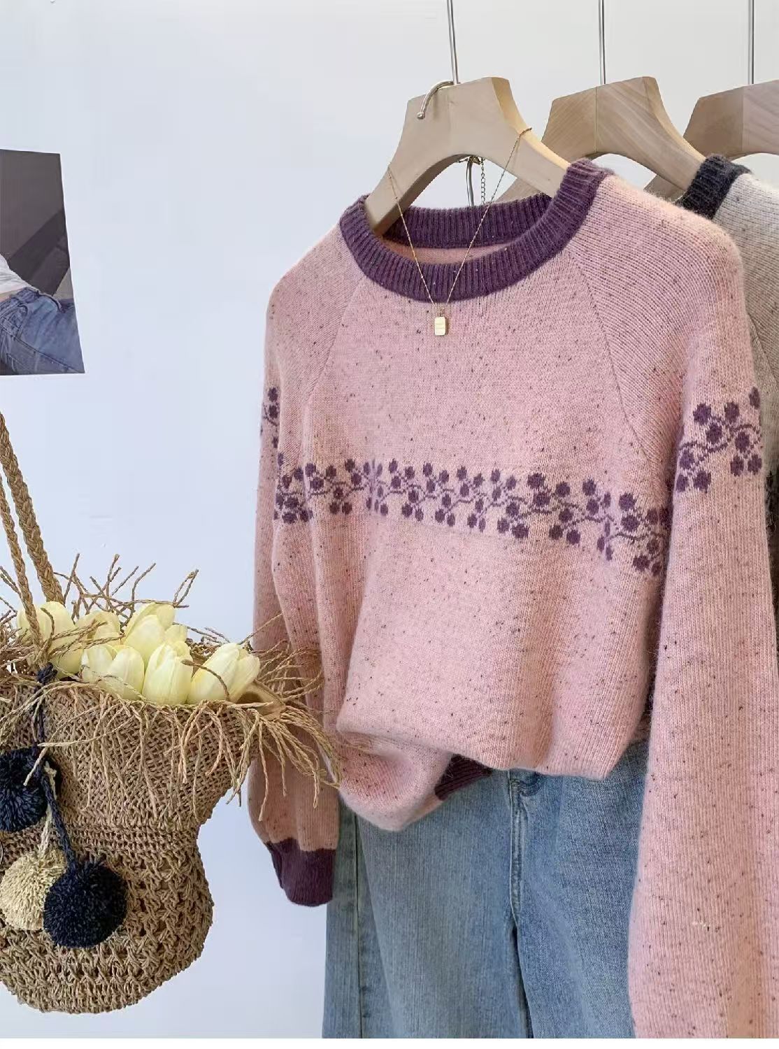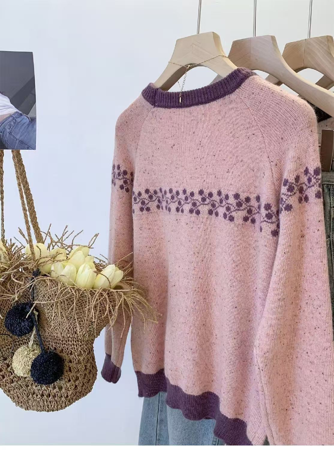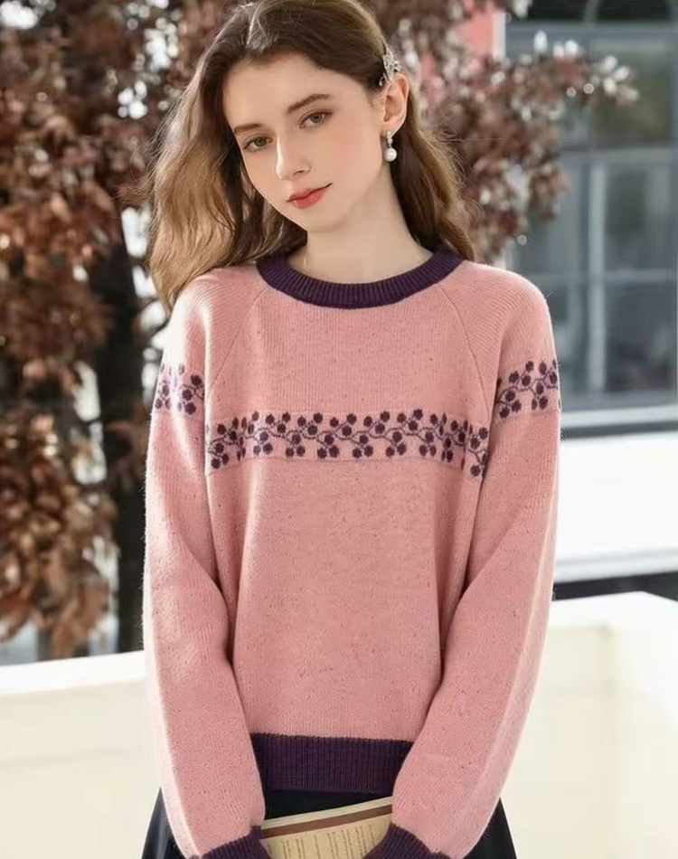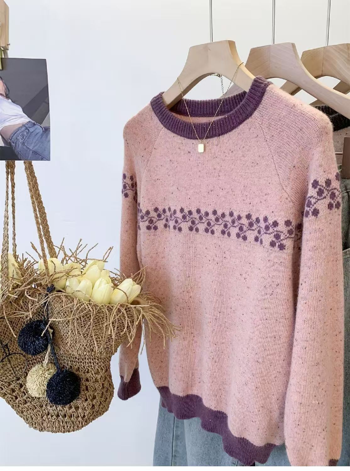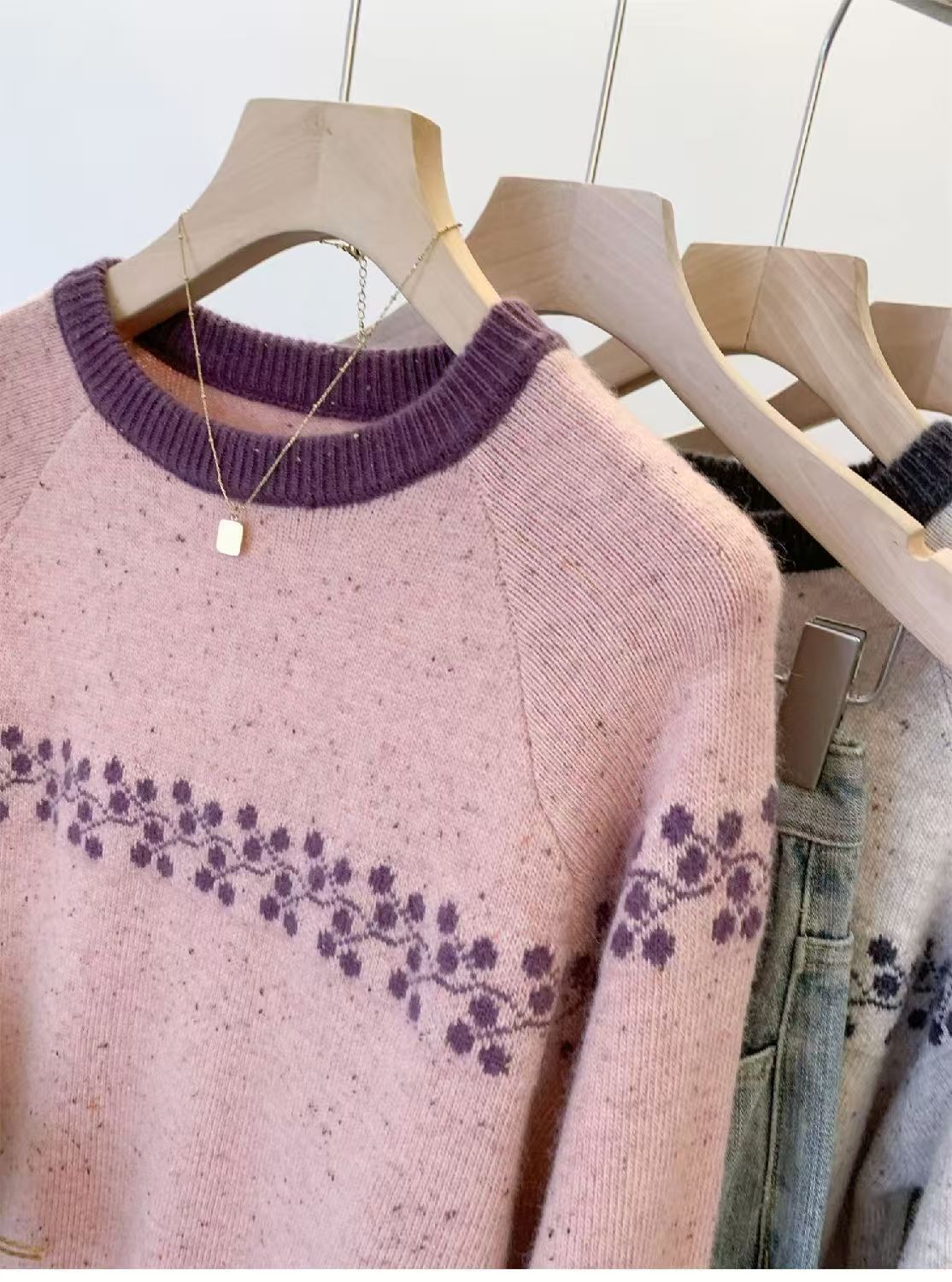 清了!清!不支持退货【自营】跨年福利-【超美毛衣】羊绒手感~Z089藤蔓复古花纱撞色领毛衣-喜出