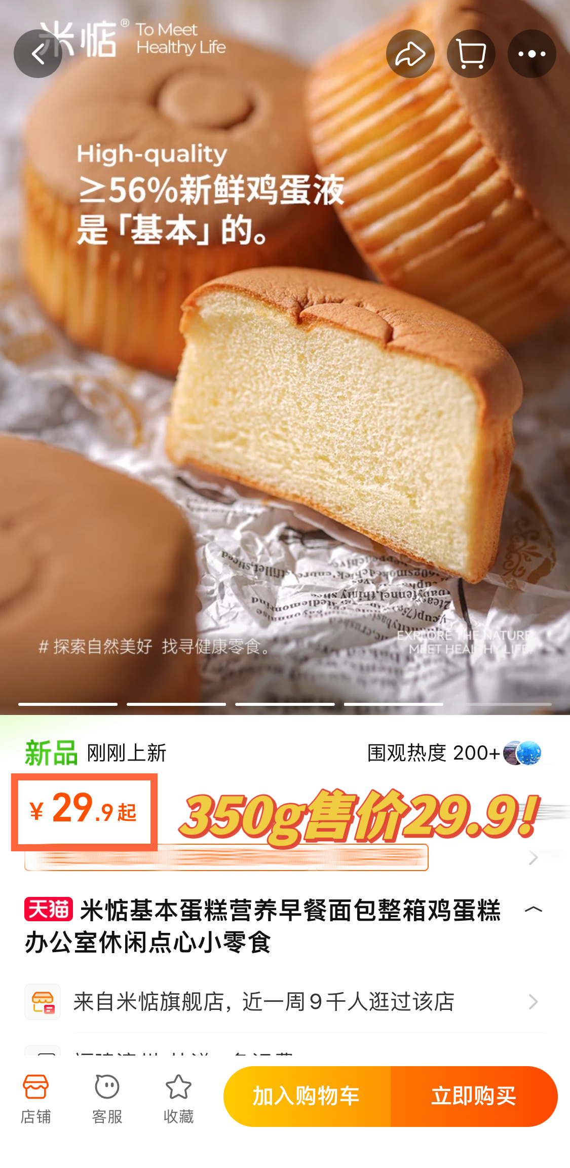 重新定义蛋糕口感!【米惦基本蛋糕】一朵轻盈 一口绵密 戚风烘焙工艺 新鲜鸡蛋液制作 不加一滴水 是一朵可以吃的绵云~