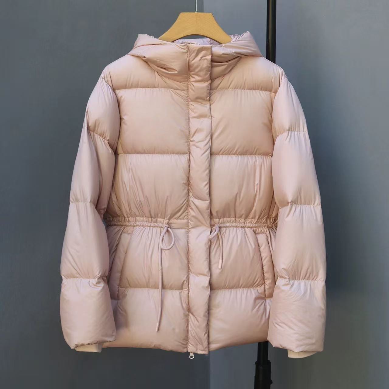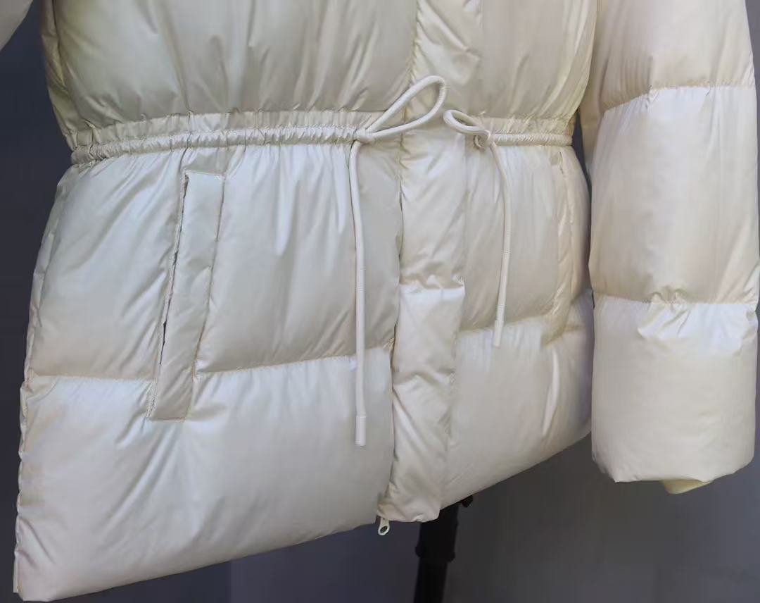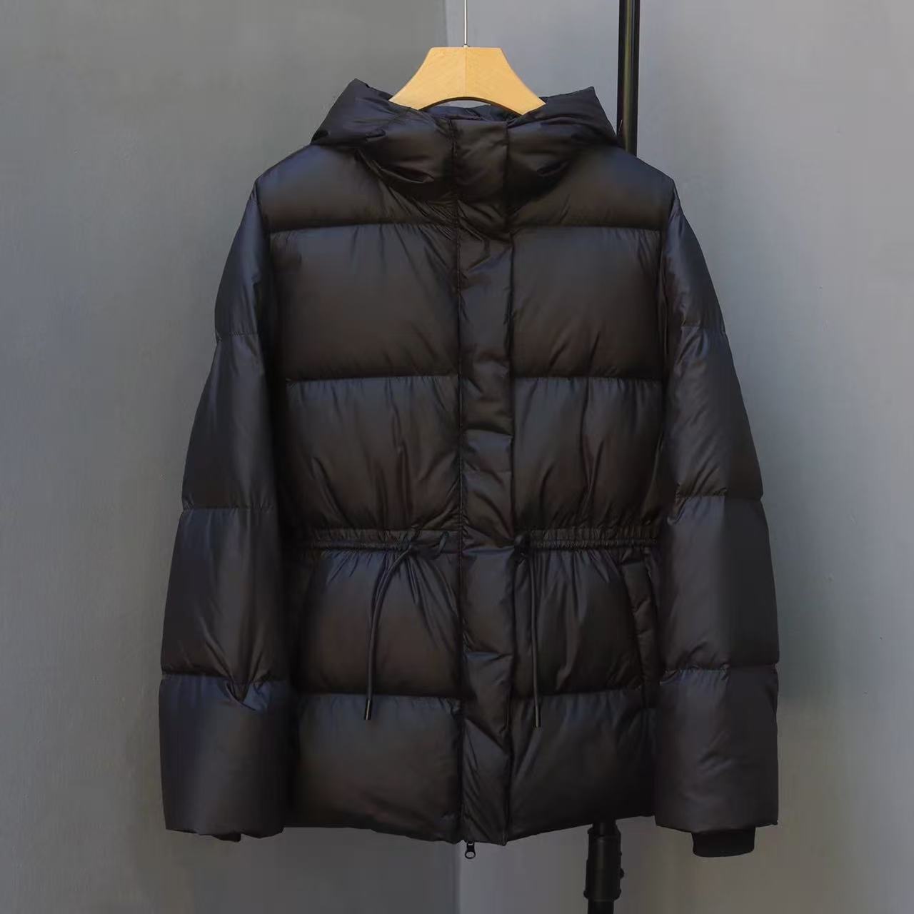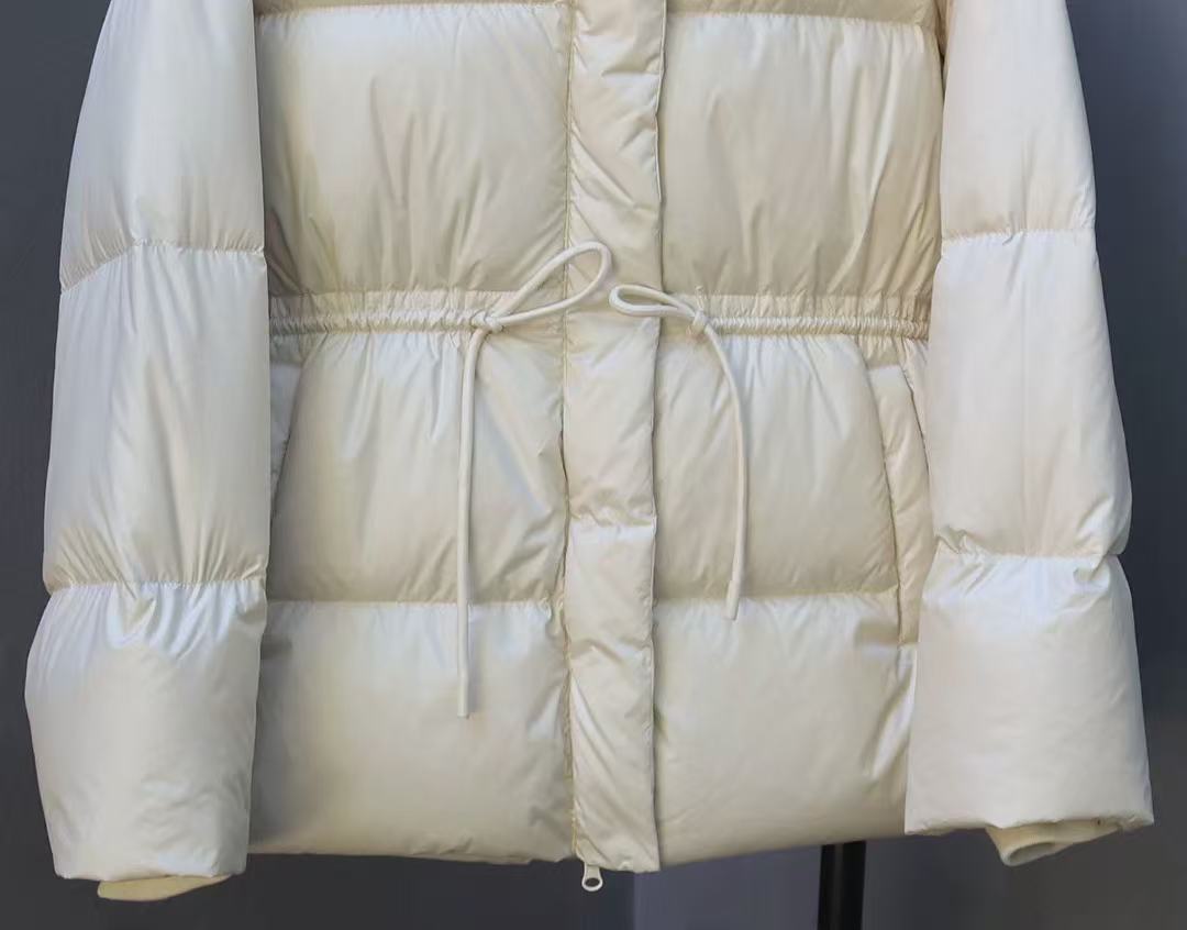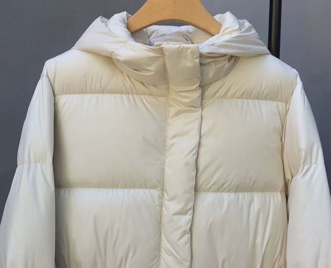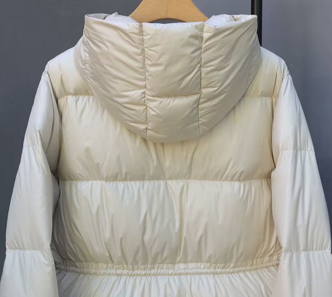 丁摩 羽绒服女中款厚款收腰白鸭绒连帽泡芙面包服中长款2405