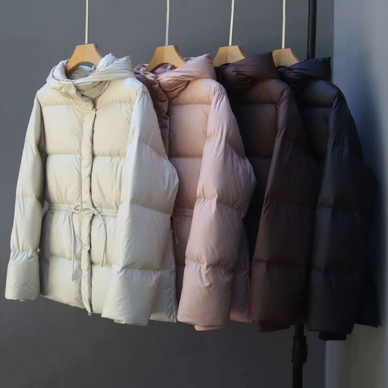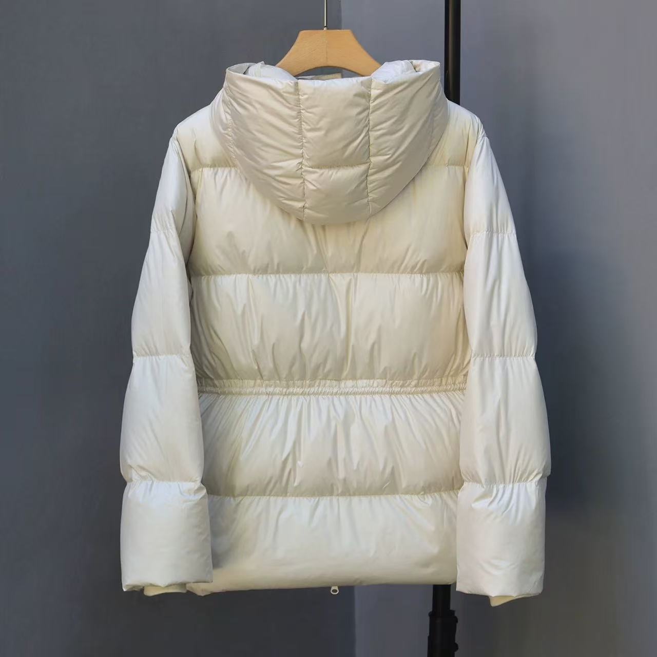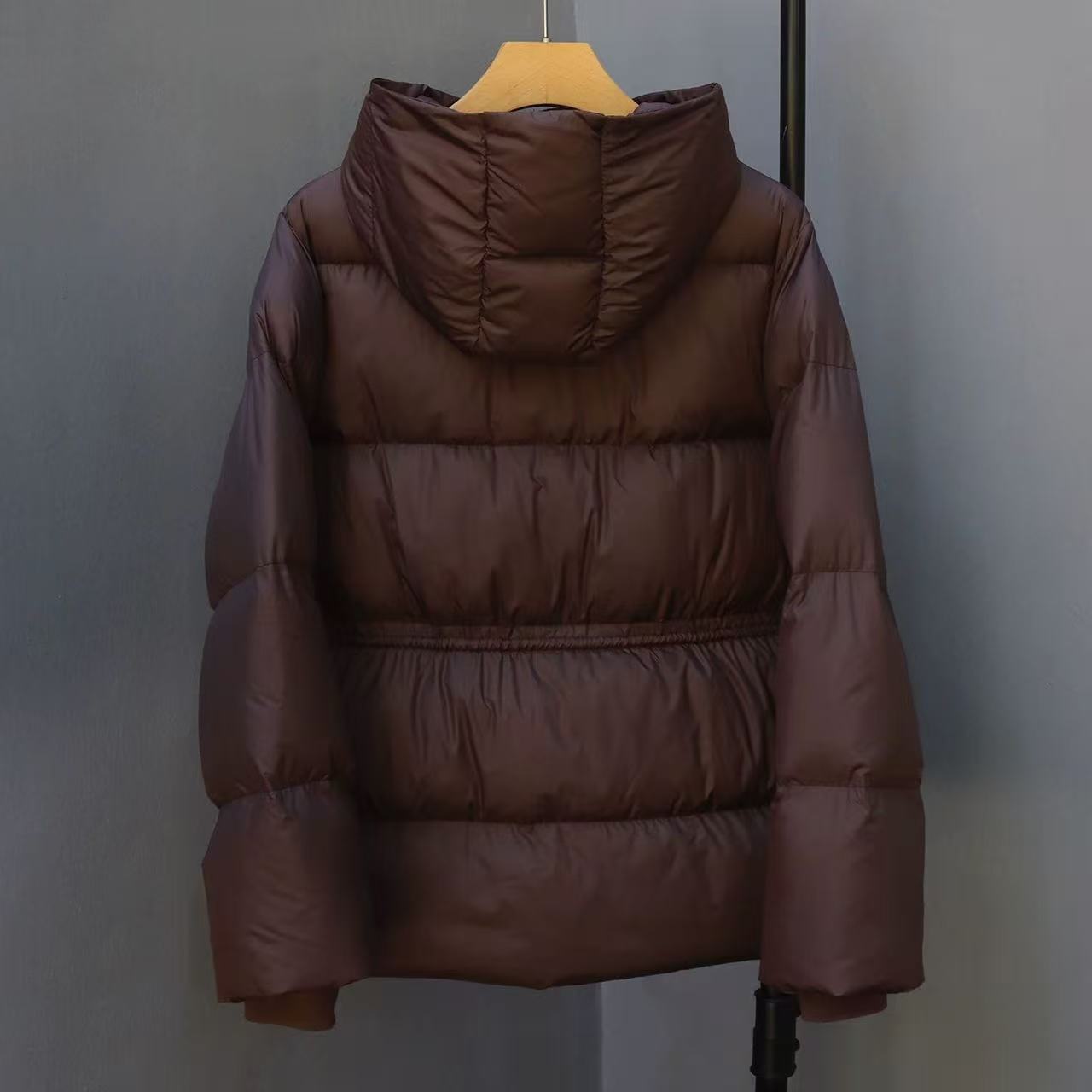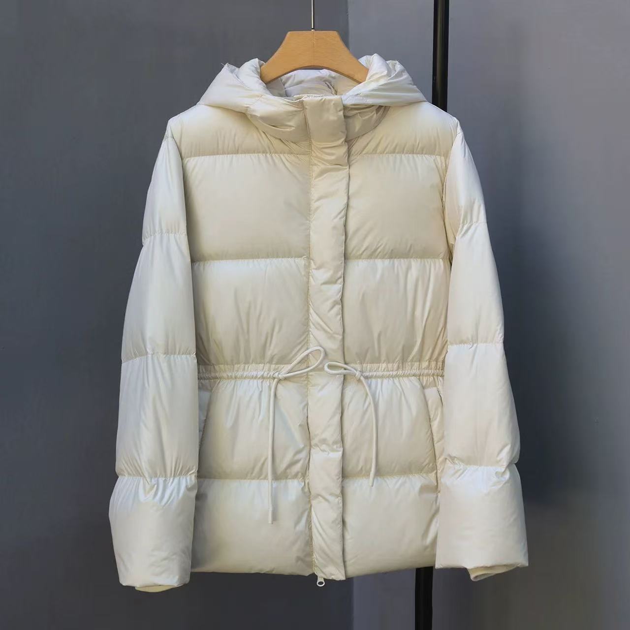 丁摩 羽绒服女中款厚款收腰白鸭绒连帽泡芙面包服中长款2405