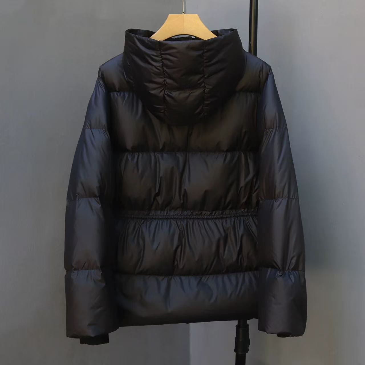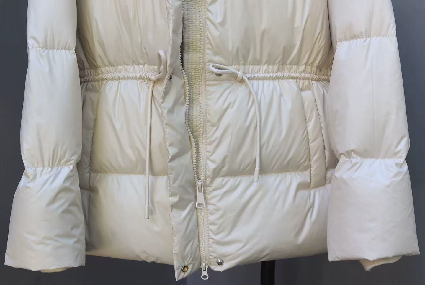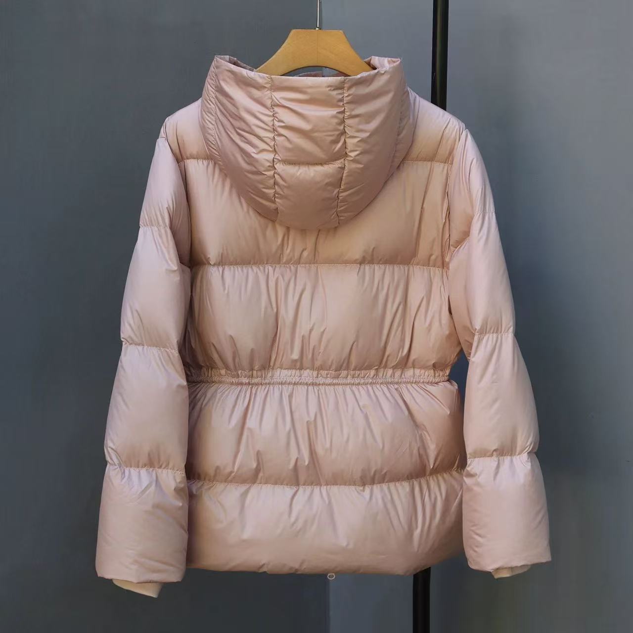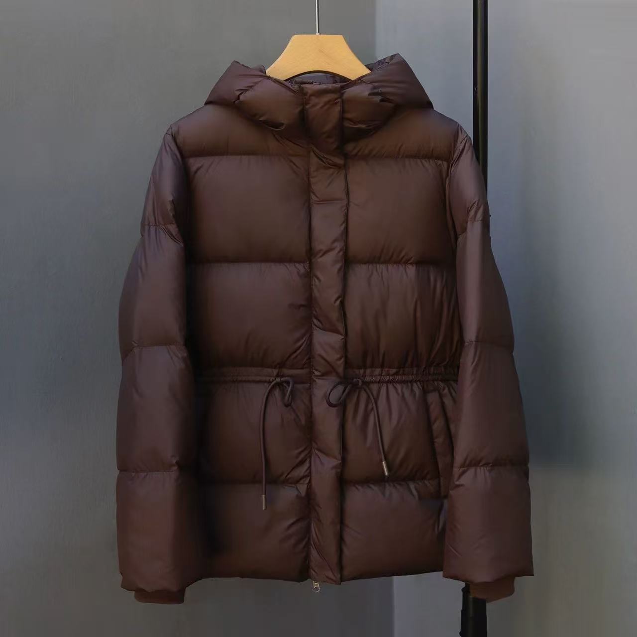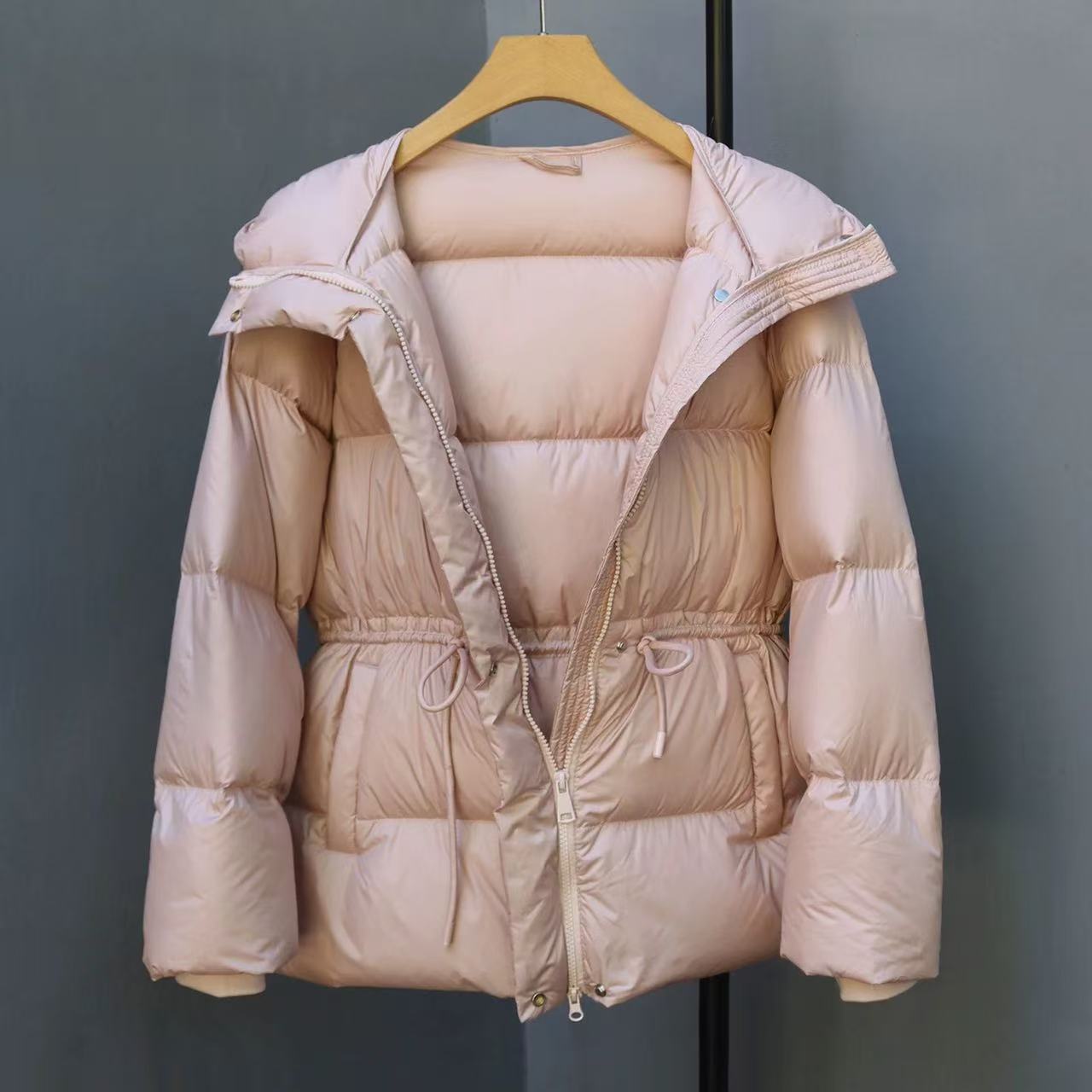 丁摩 羽绒服女中款厚款收腰白鸭绒连帽泡芙面包服中长款2405