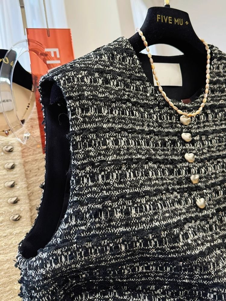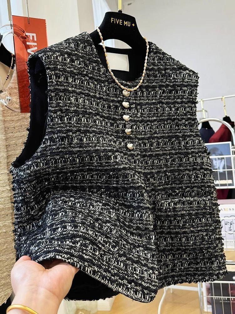 丁摩 高级感气质名媛小香风圆领无袖马甲背心外套女春秋外穿坎肩上衣潮5ZF- 9305