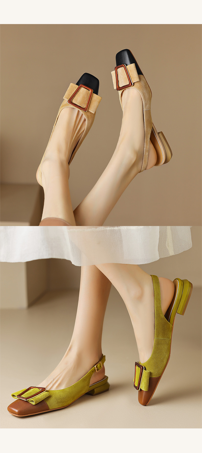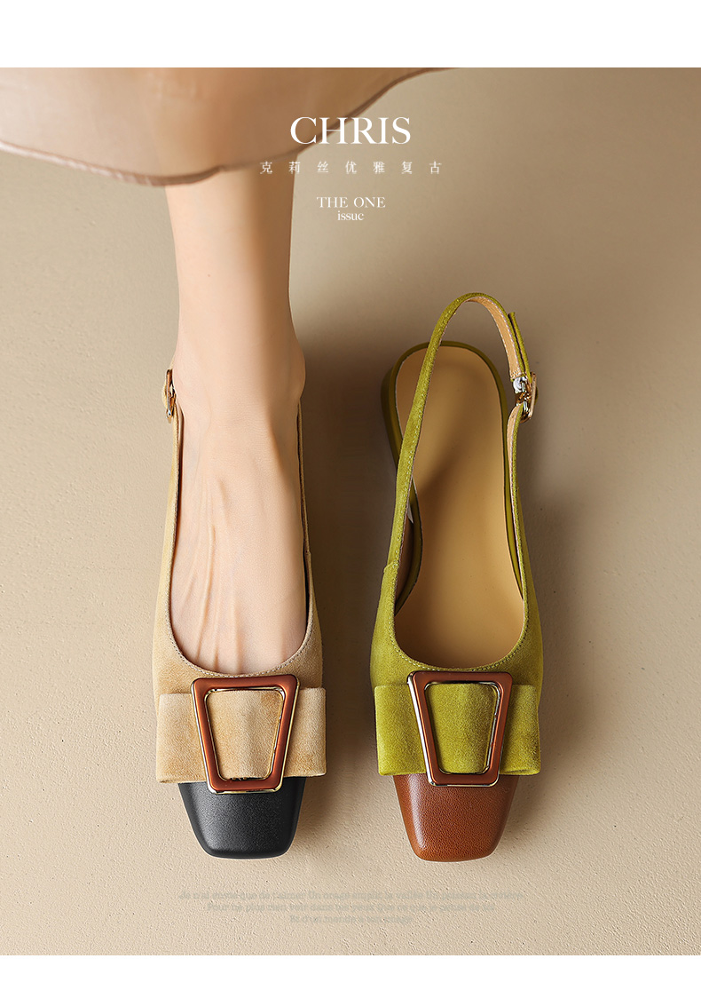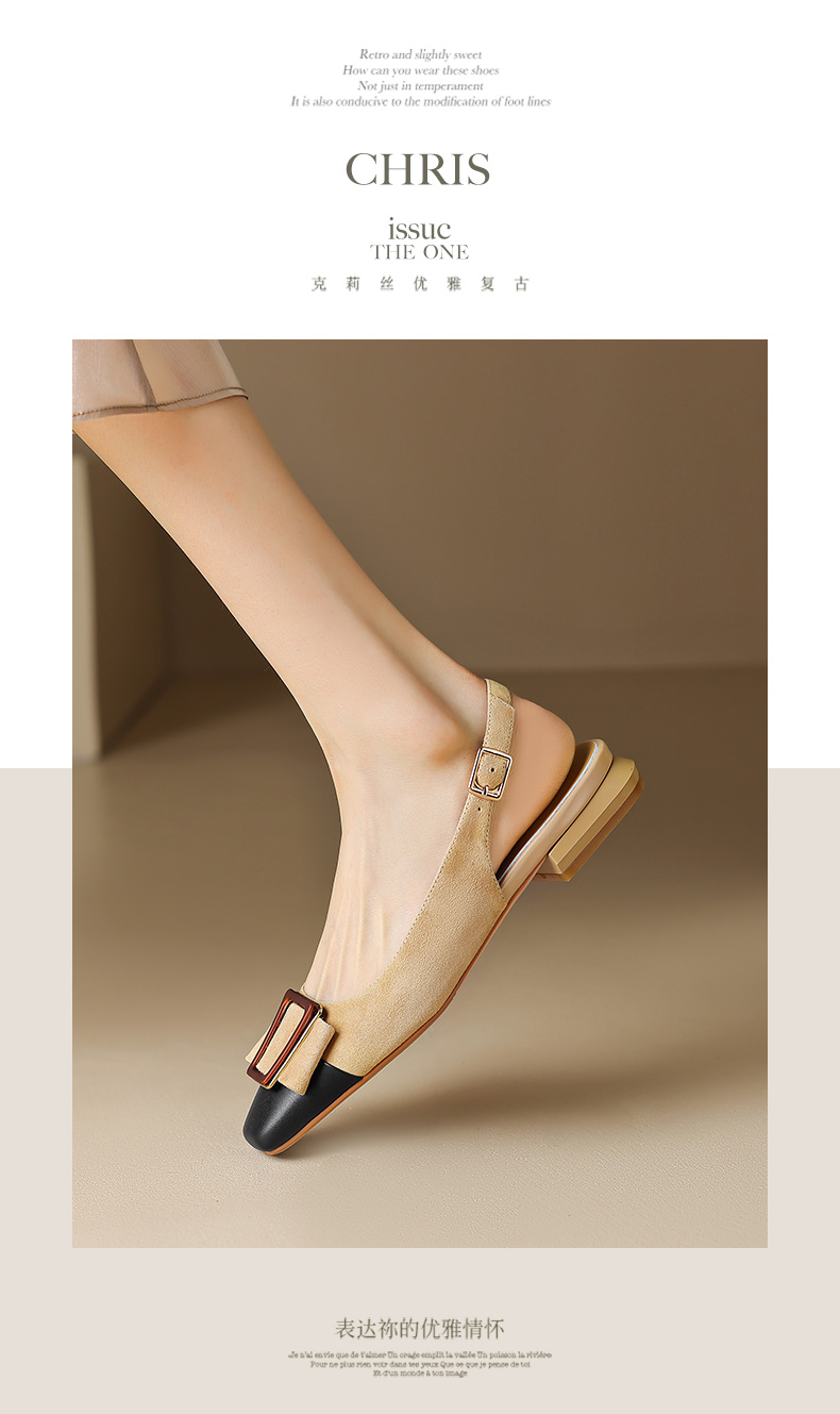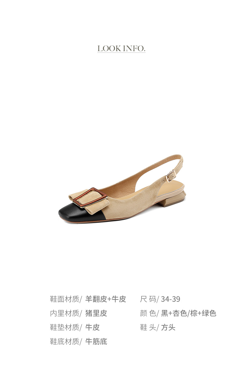 复古方头包头方扣,一字式后空凉鞋YF-D514-A23