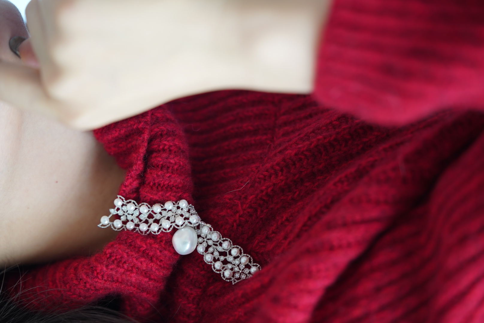 巴洛克「胸花蕾丝」清雅 空灵 文艺925银进口配件配淡水珍珠及巴洛克珍珠799🉐