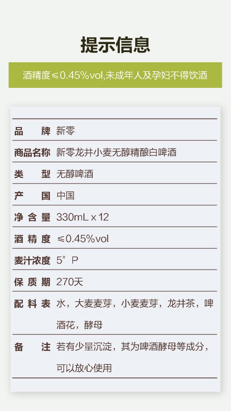 【发出后不支持拦截】【山姆同款】新零 龙井小麦无醇精酿啤酒 330ml*6