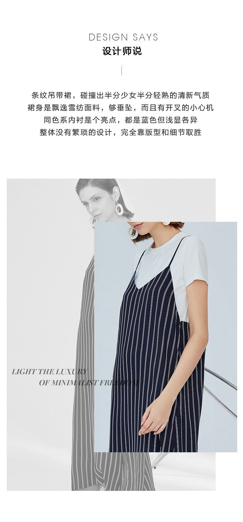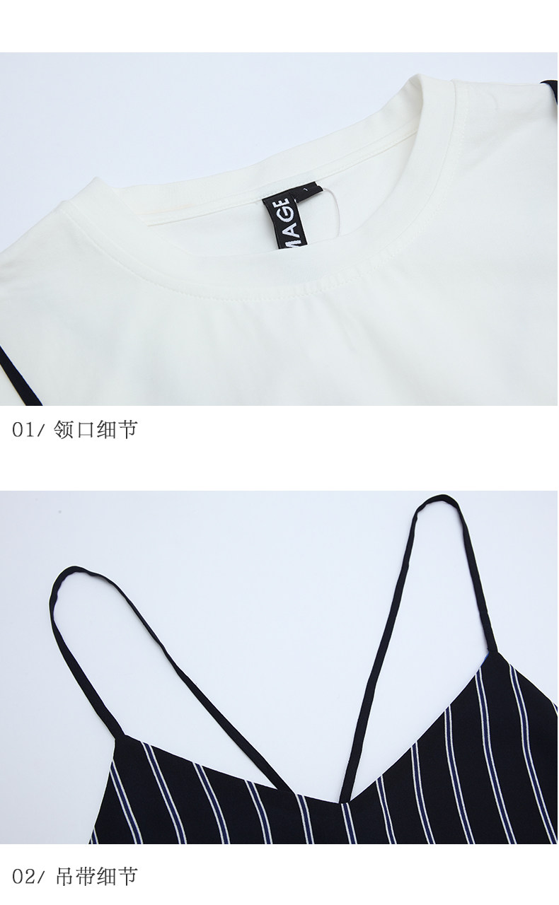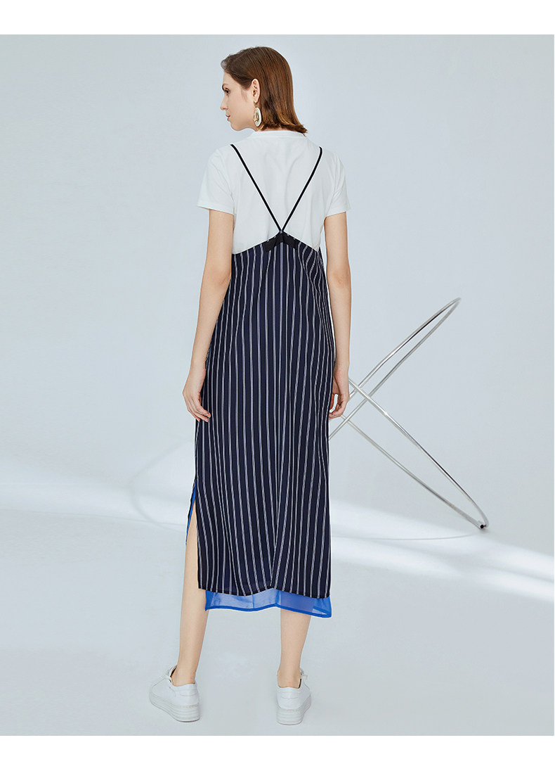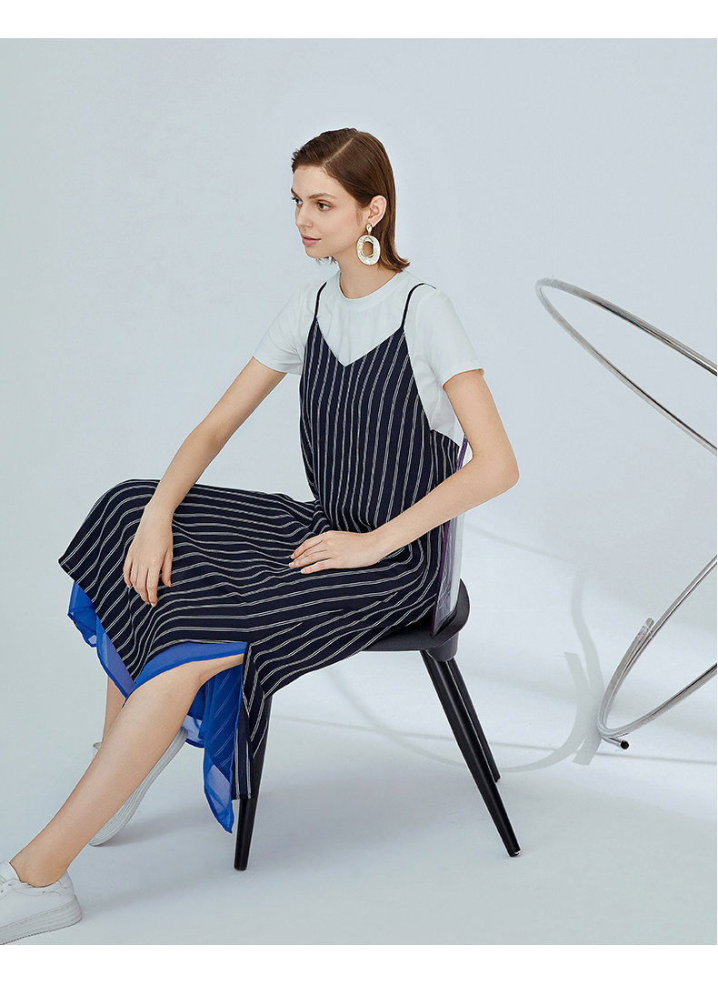 VIMAGE纬漫纪女装夏季宽松休闲条纹吊带假两件连衣裙长款V1107755