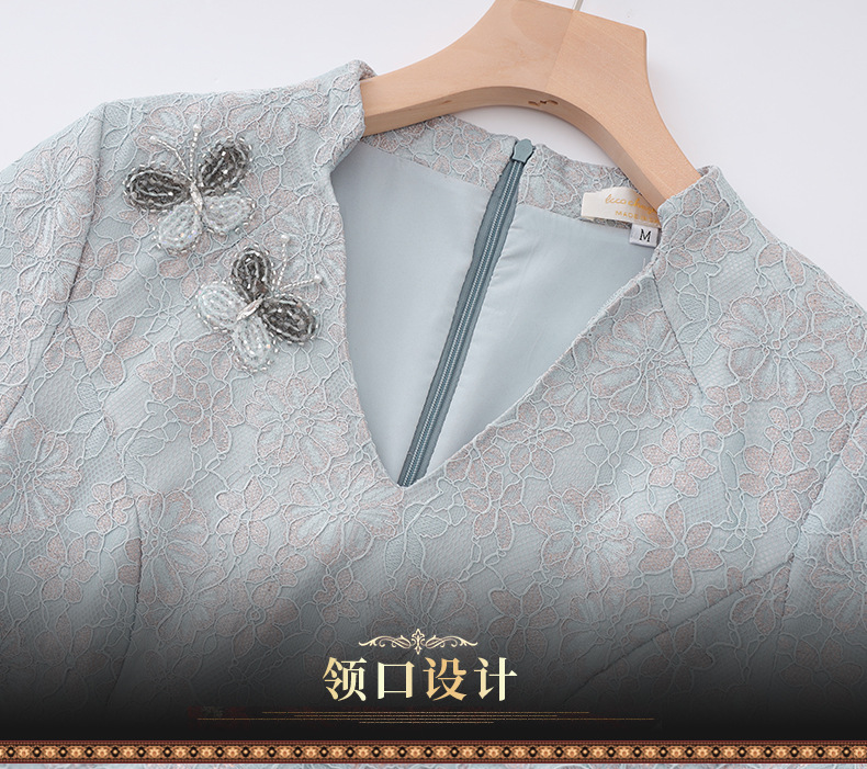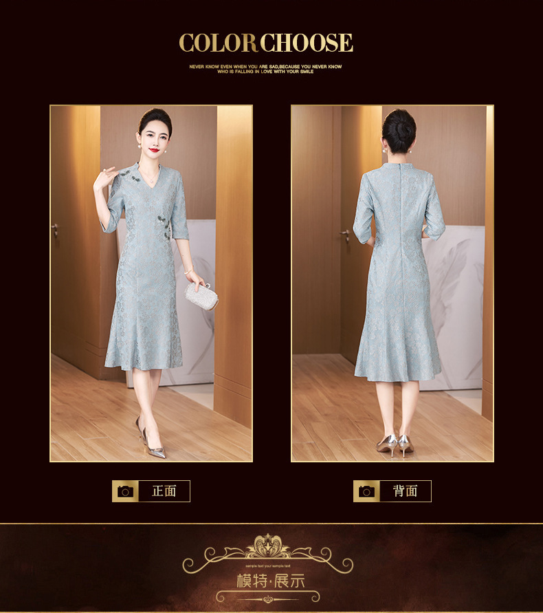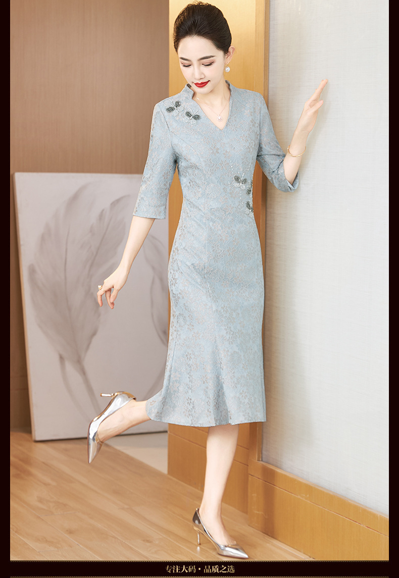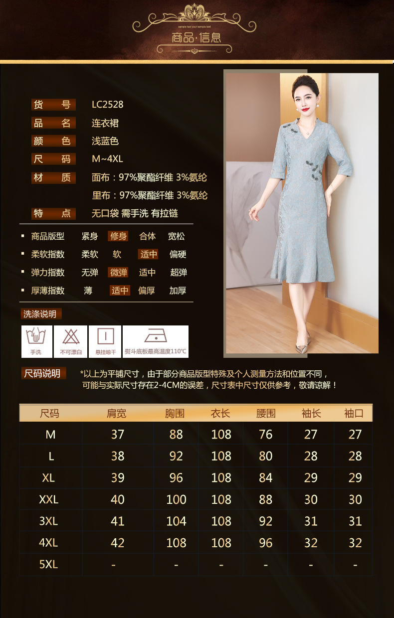 LC 2528中长款V领绣花修身时尚鱼尾裙