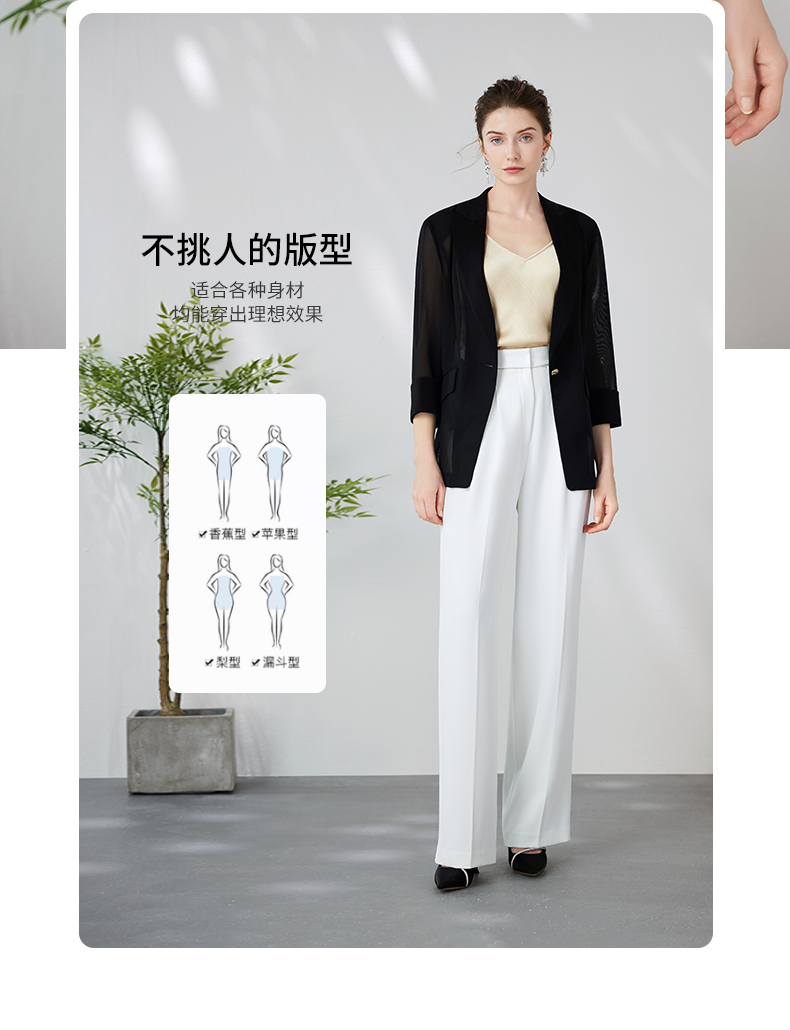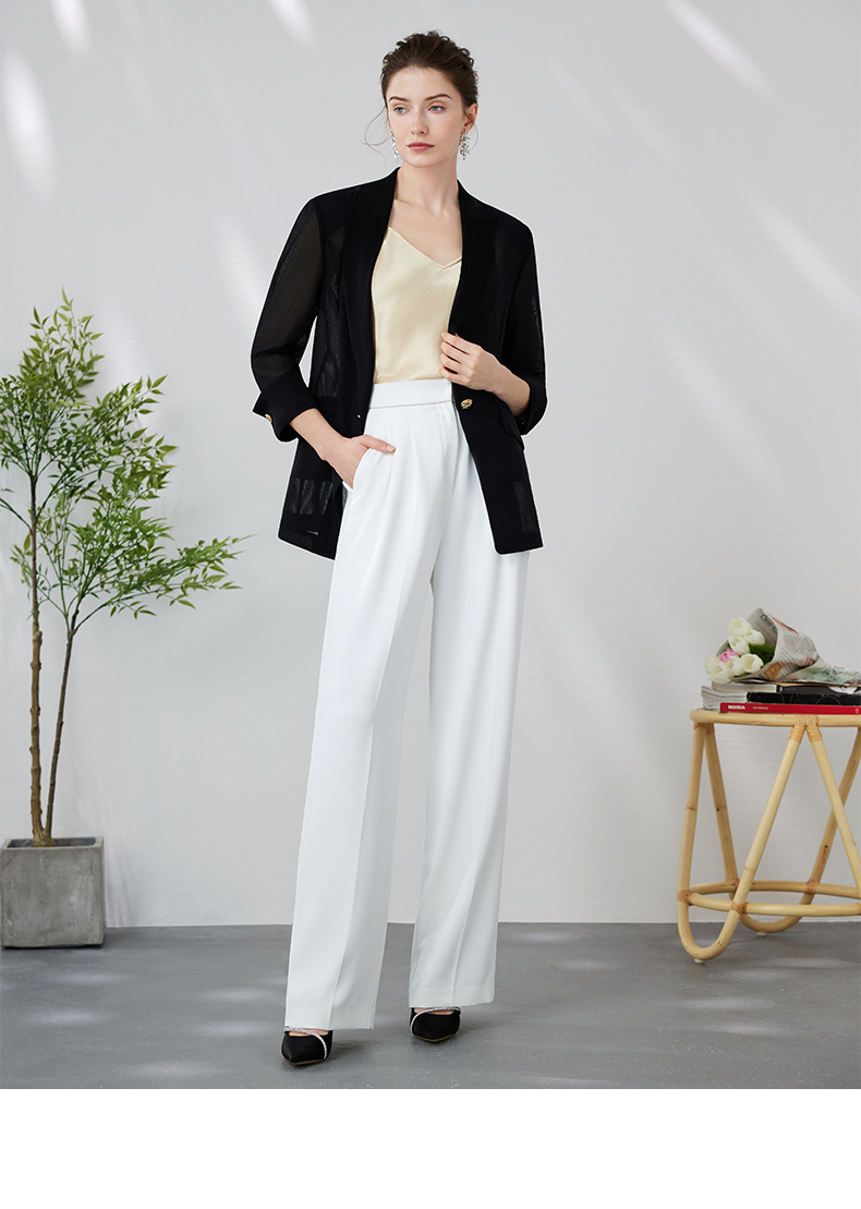 EITIE爱特爱品牌女装夏款时尚通勤职业条纹显腿长高腰阔腿裤6105810