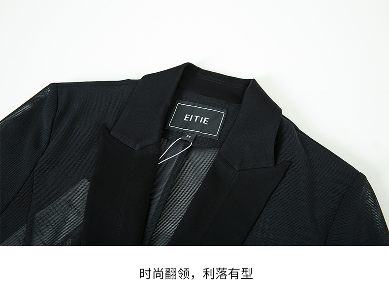 EITIE爱特爱网纱拼接半高领气质黑色针织衫灯笼袖修身秋新款C2201022