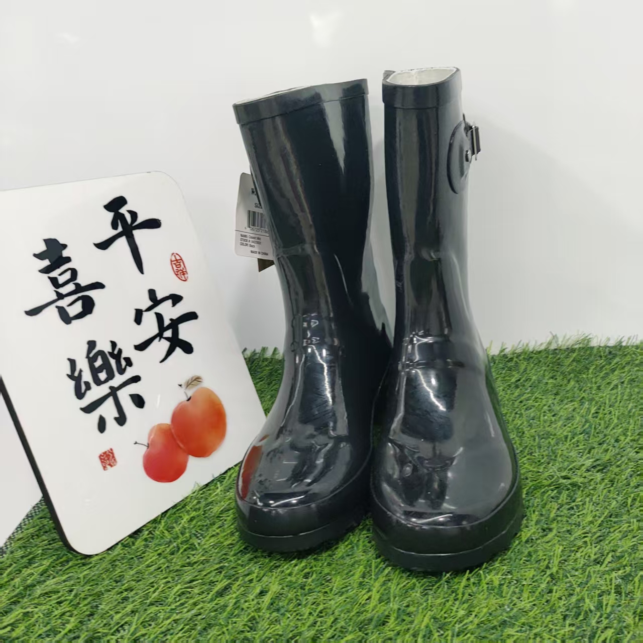 4号款新款夏季雨靴 又轻又软中筒黑色橡胶雨鞋瘦筒靴中靴黑色中筒靴