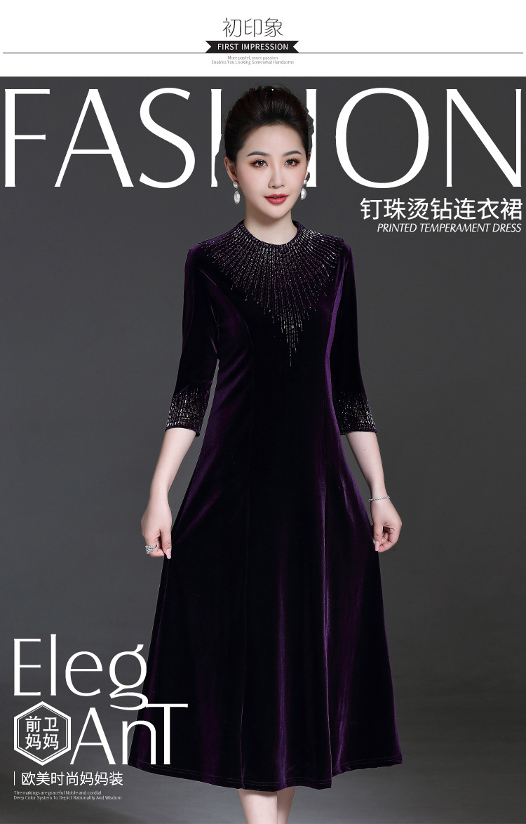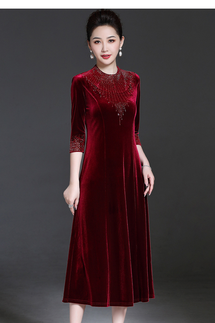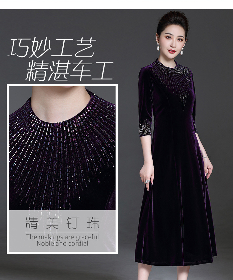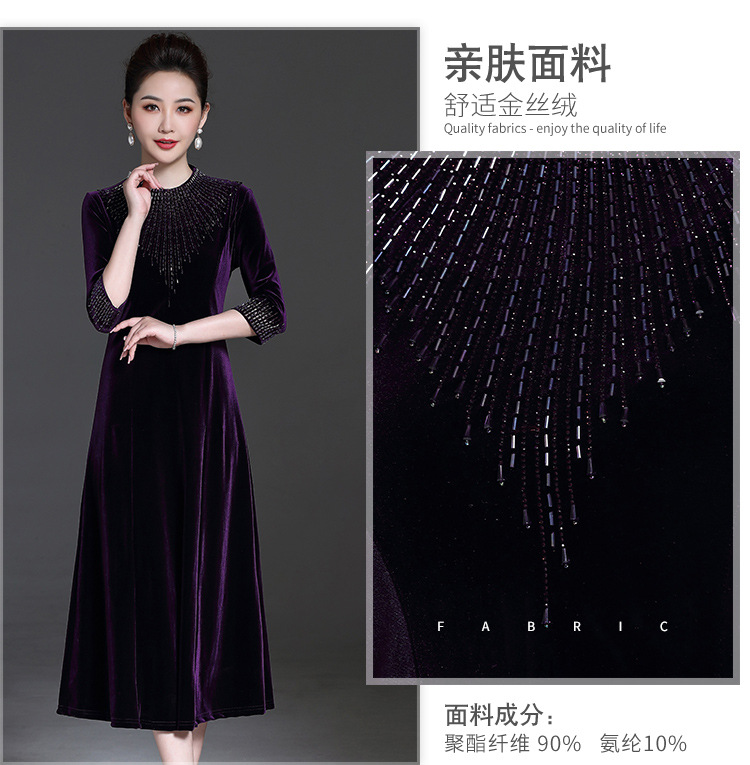 YZL-213新款金丝绒贵妇装旗袍连衣裙