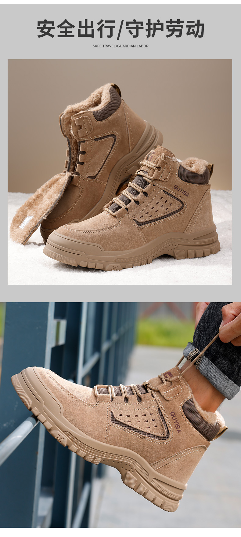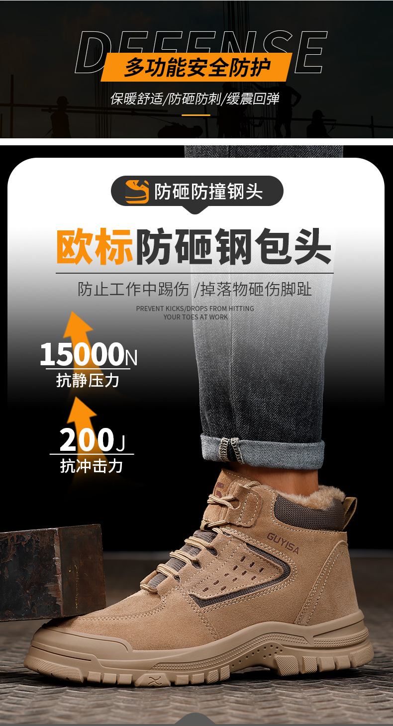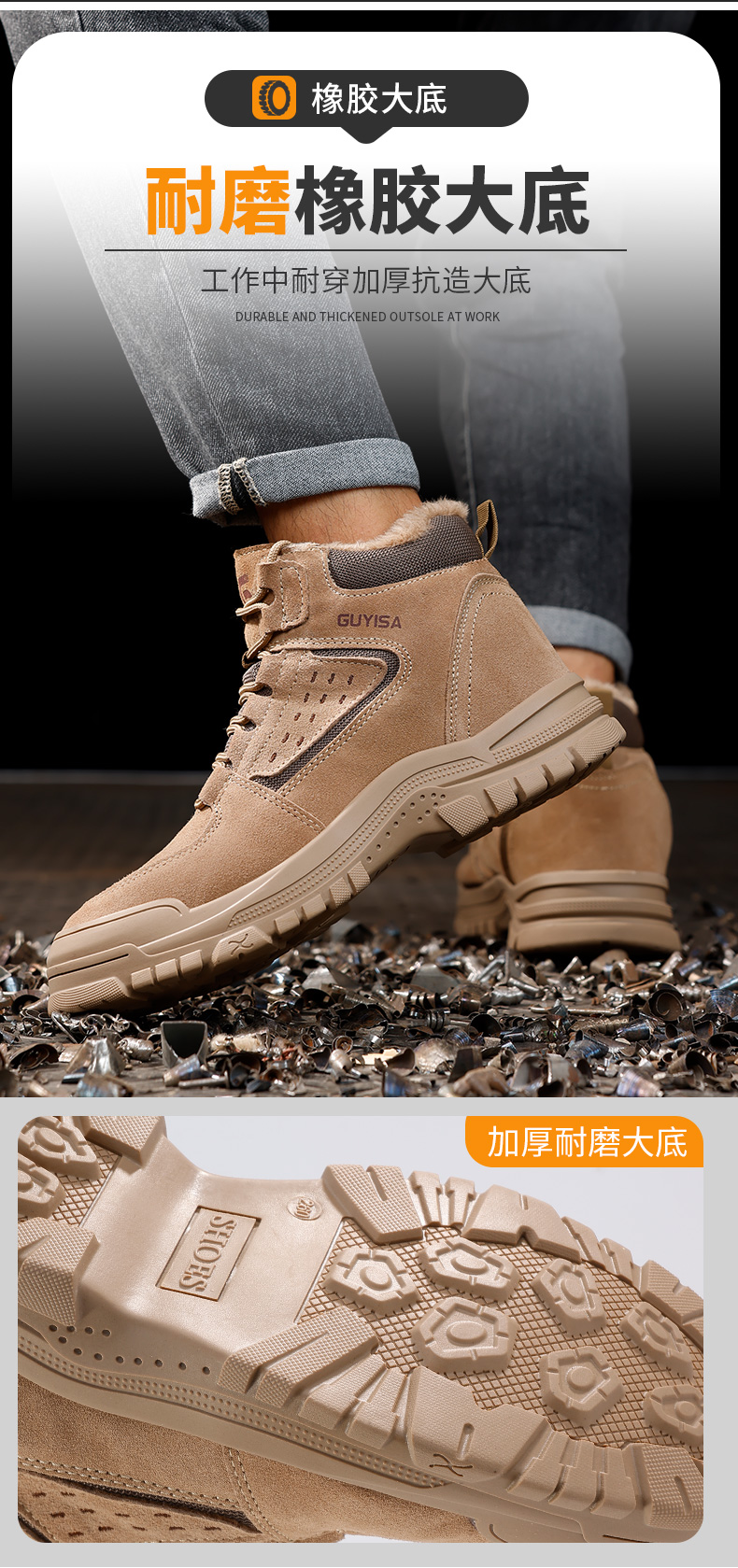 劳保鞋男防砸防刺高帮橡胶底加绒冬季款防寒保暖钢包头安全鞋