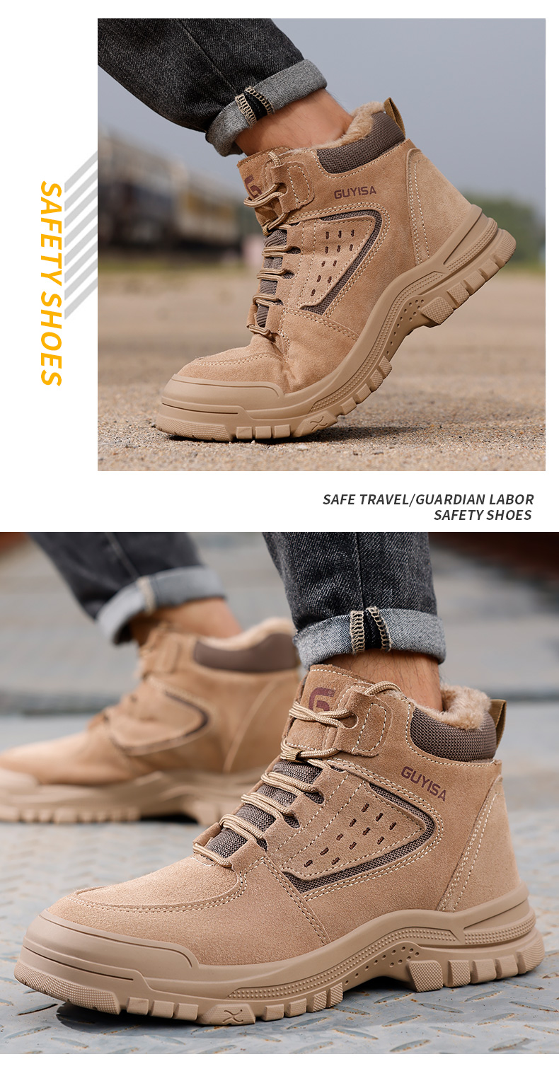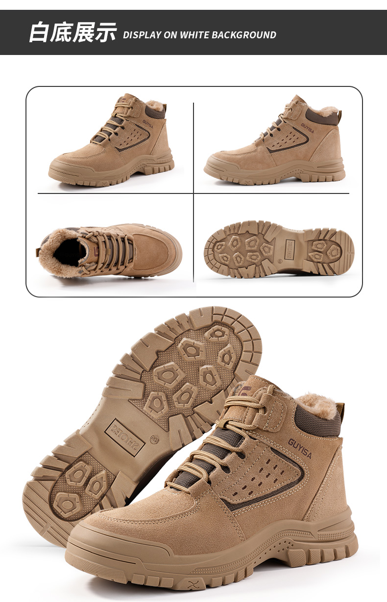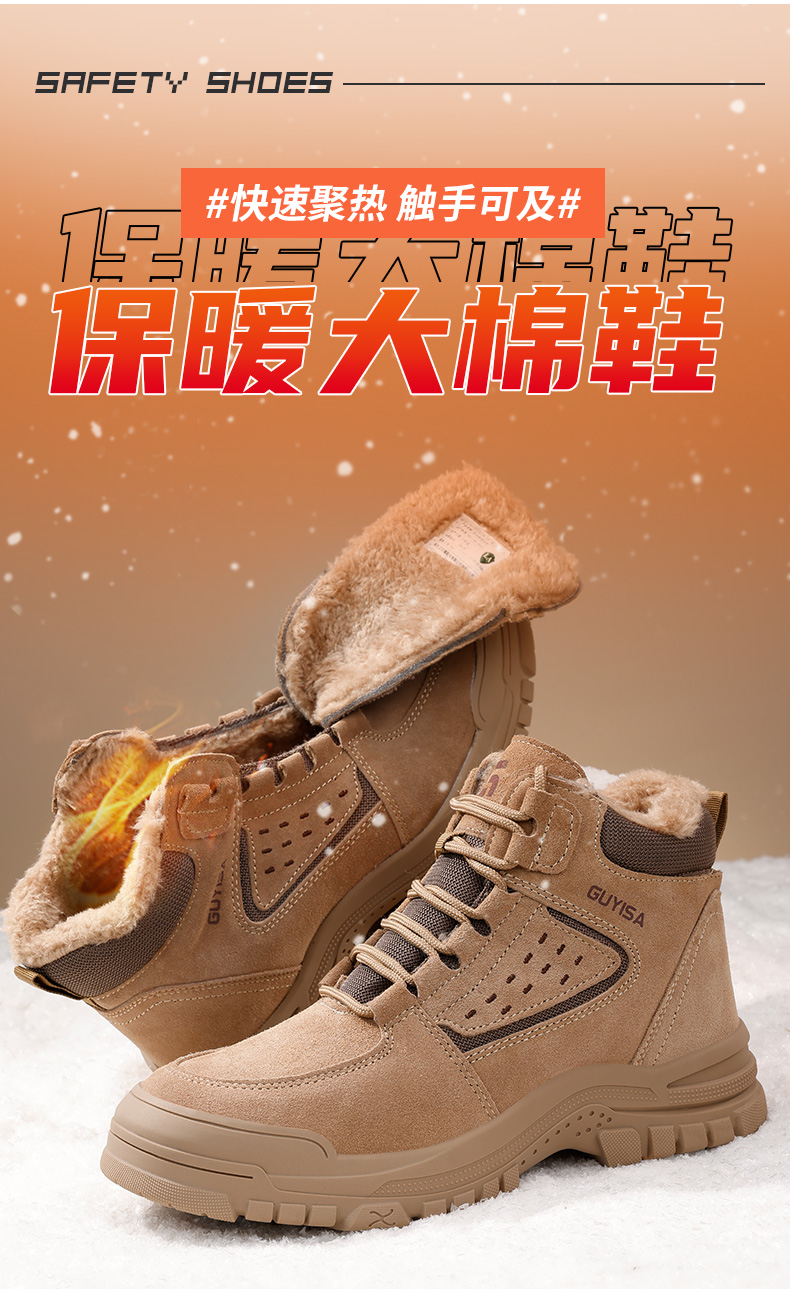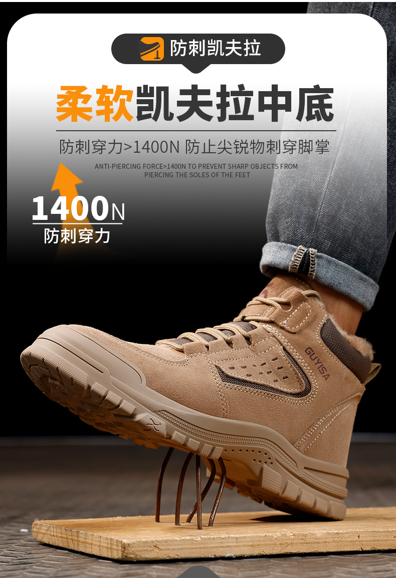 劳保鞋男防砸防刺高帮橡胶底加绒冬季款防寒保暖钢包头安全鞋