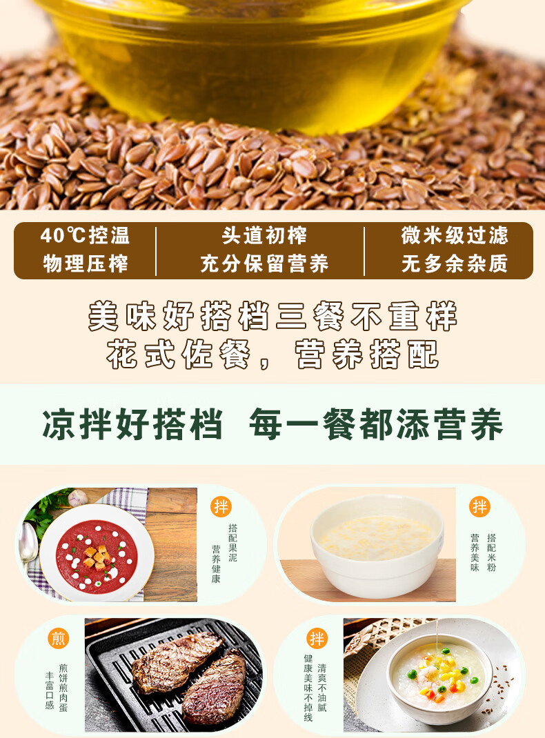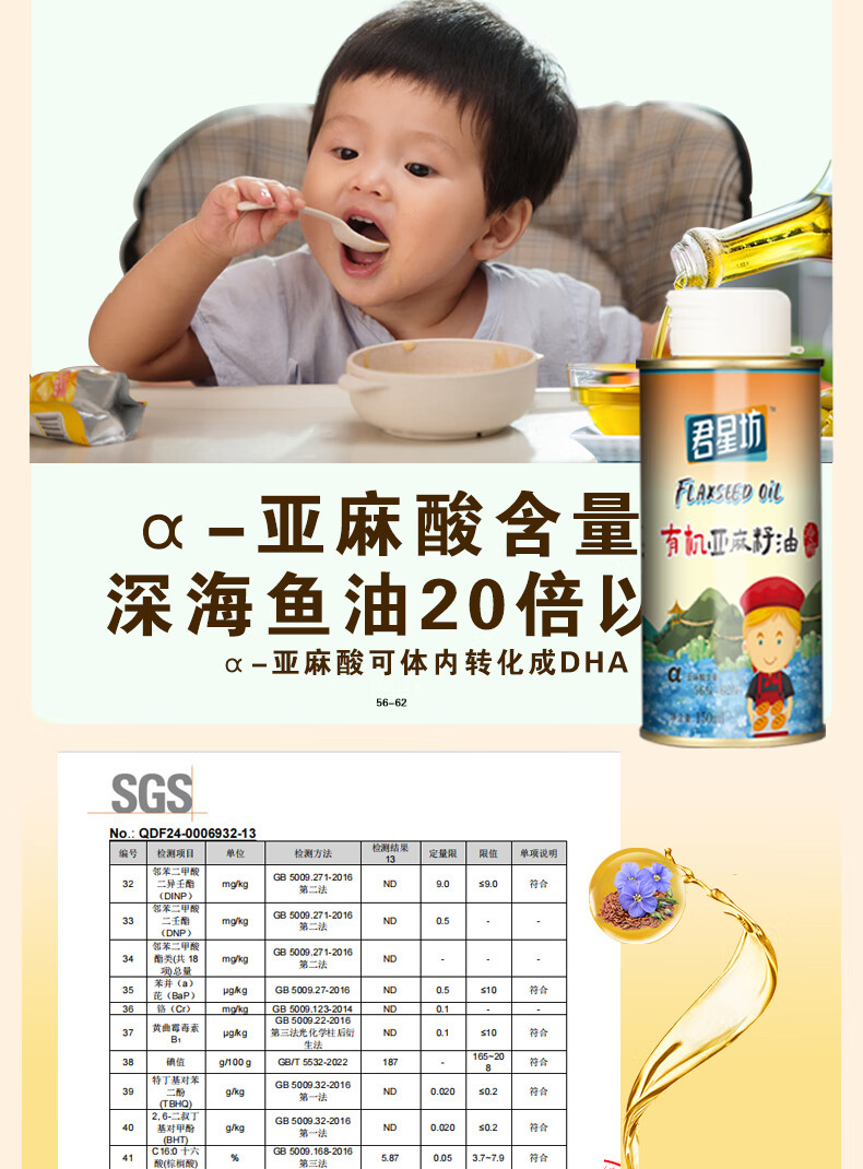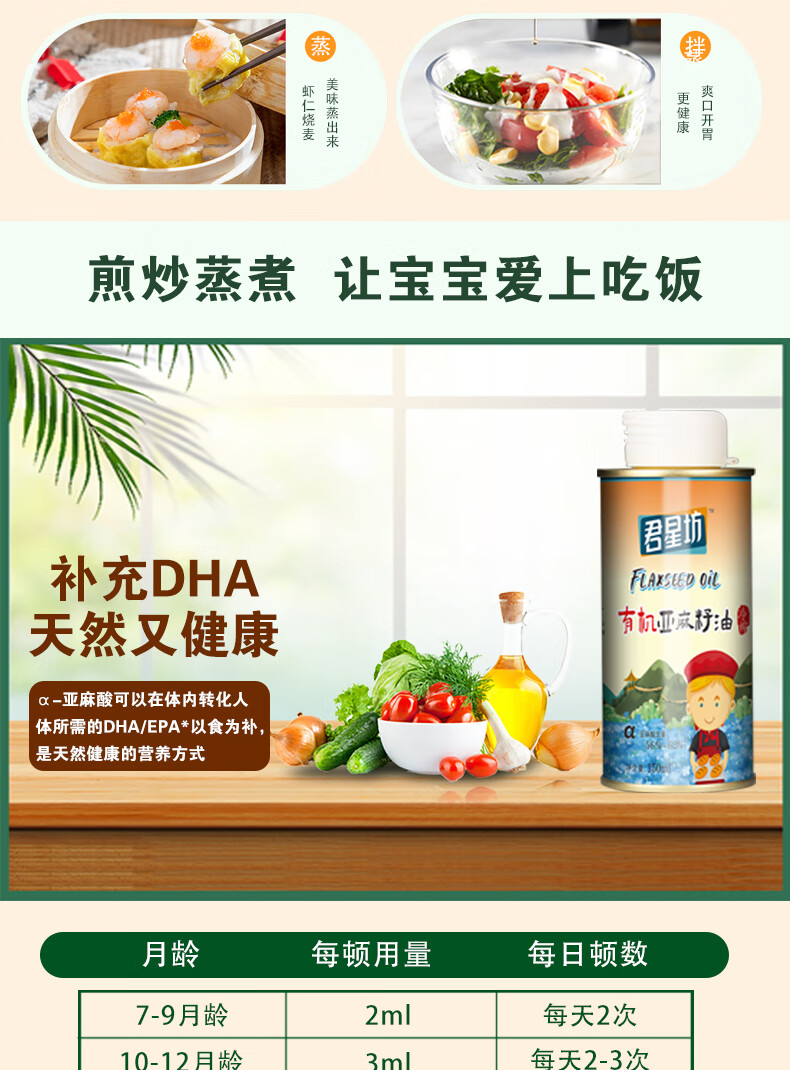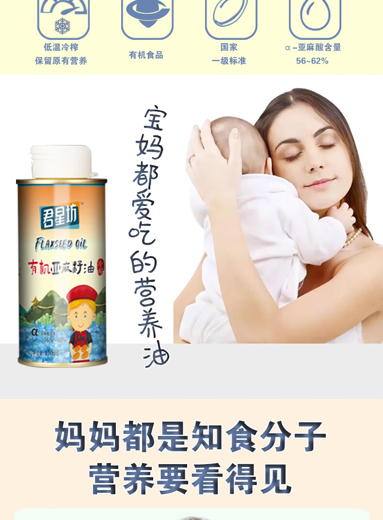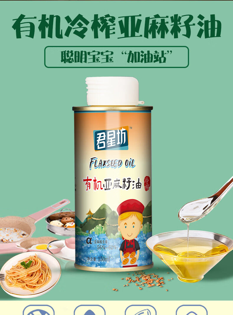 杞冠严选 | 君星坊 有机冷榨亚麻籽油(婴童系列) 150ml/瓶 头道初榨充分保留营养 适用于7月龄以上宝宝
