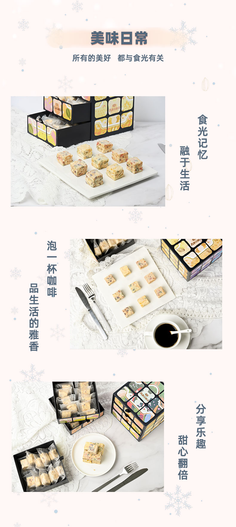 【限时爆品返场!】AKOKO甜心魔方雪花酥,一口散发浓郁奶香,酥软有嚼劲,甜而不腻,礼盒装360克(12g*30)