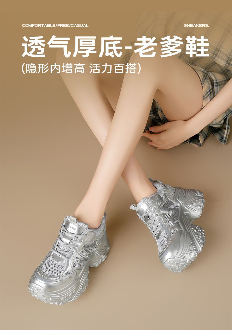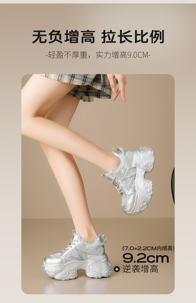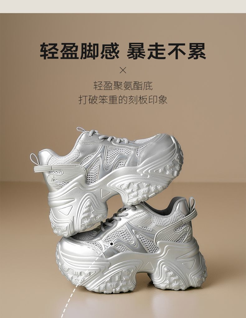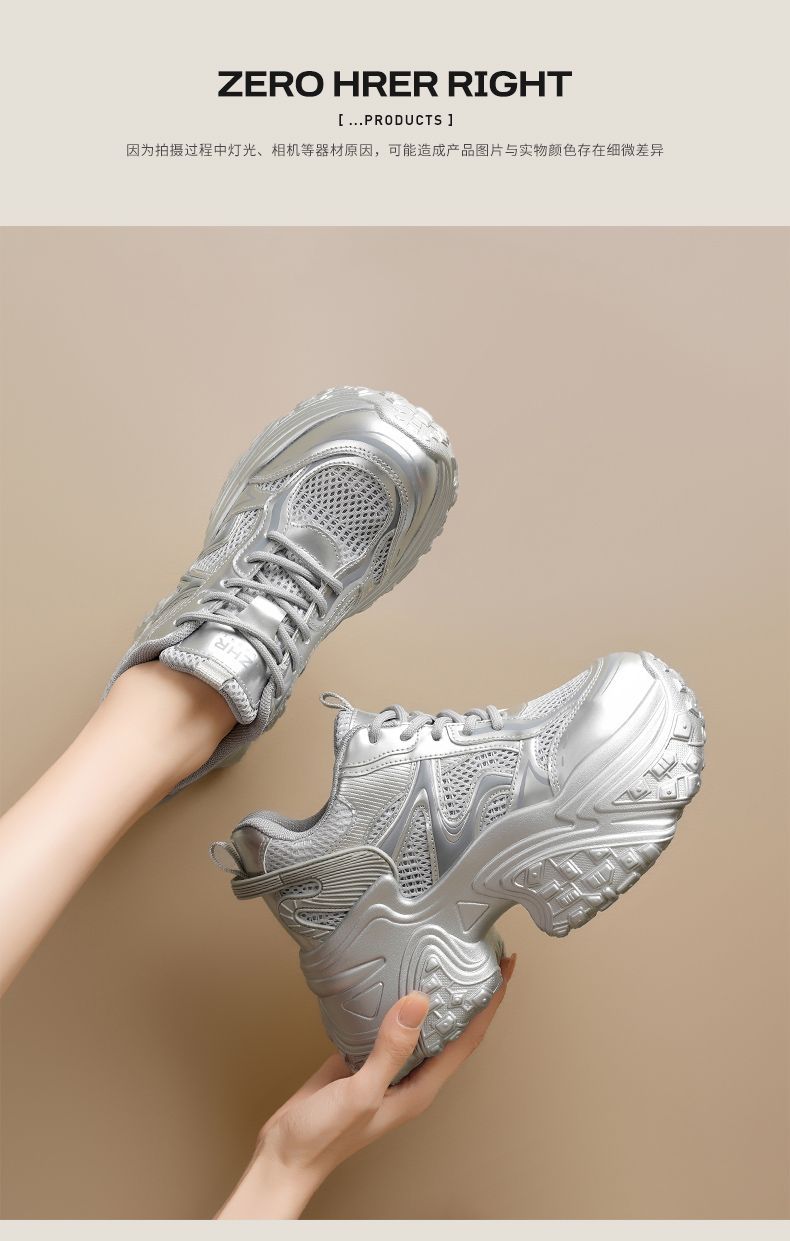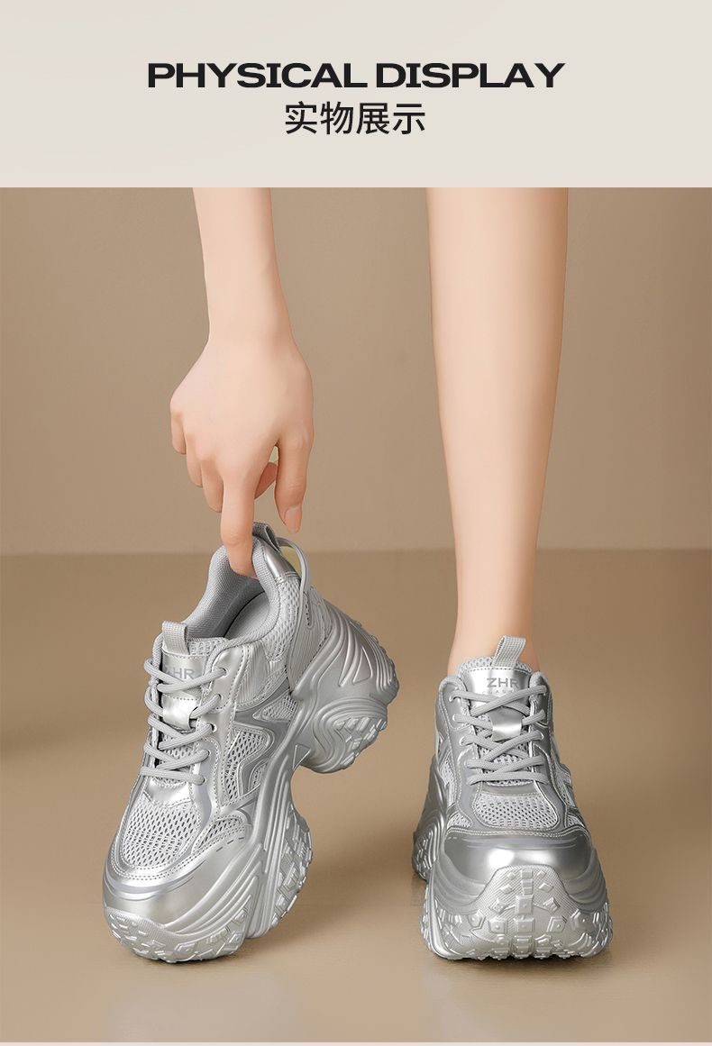ZHR则则9CM内增高透气网面银色老爹鞋女厚底小个子运动休闲鞋夏季