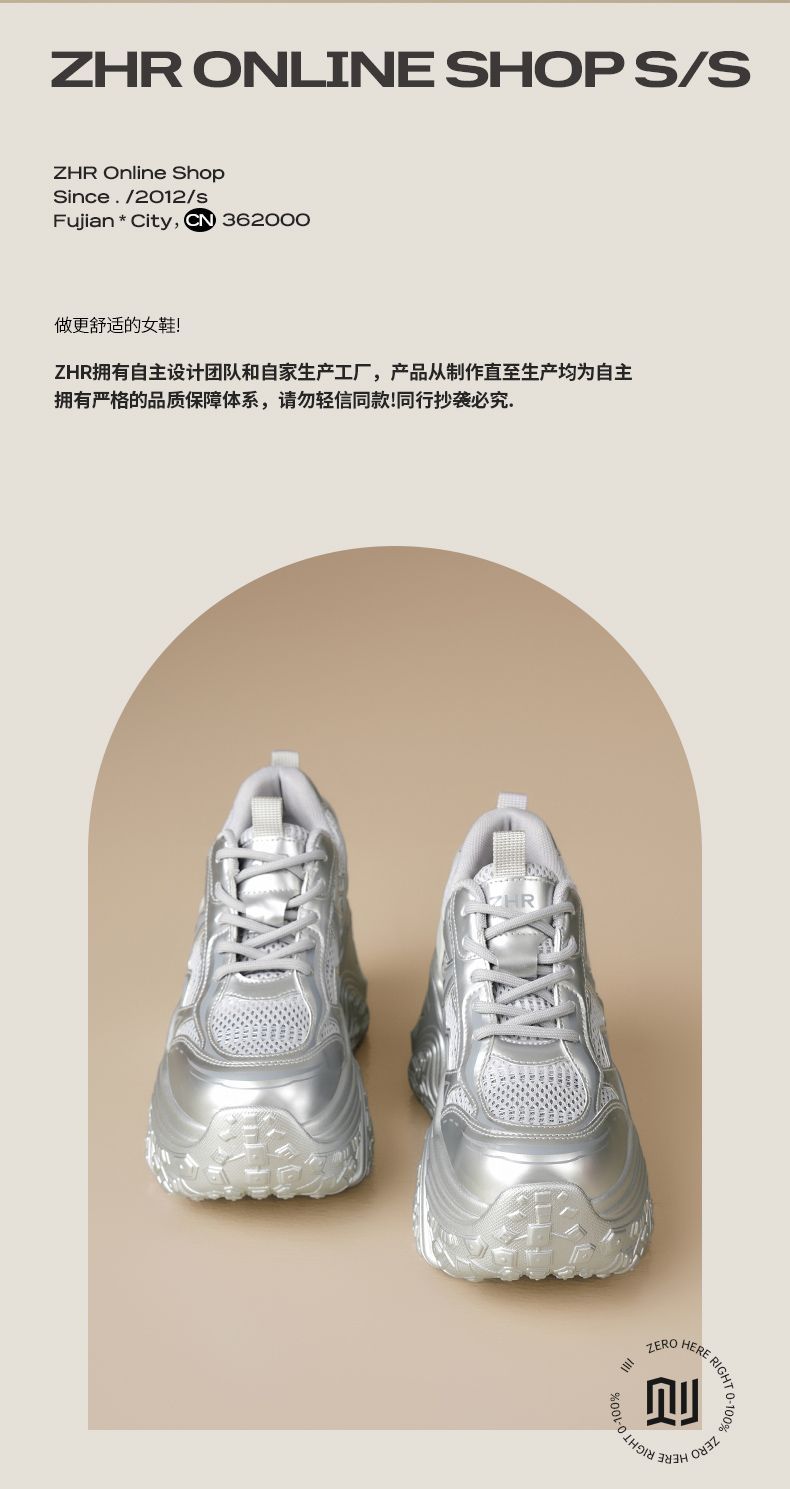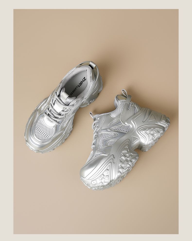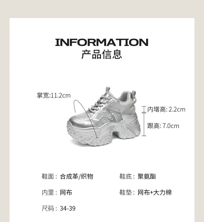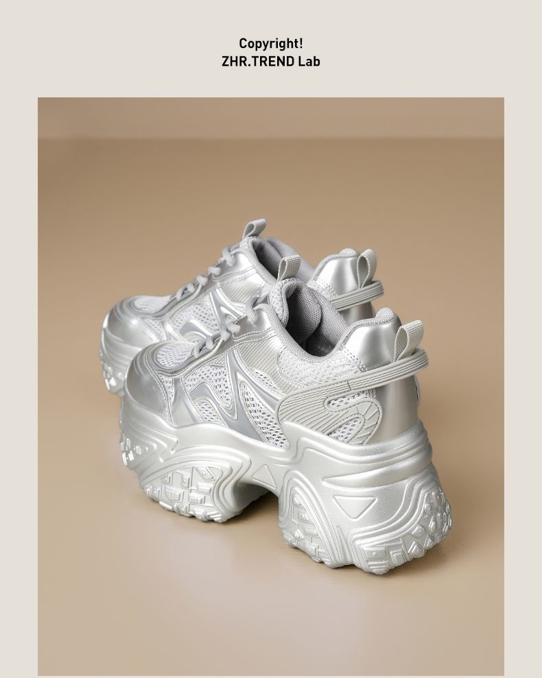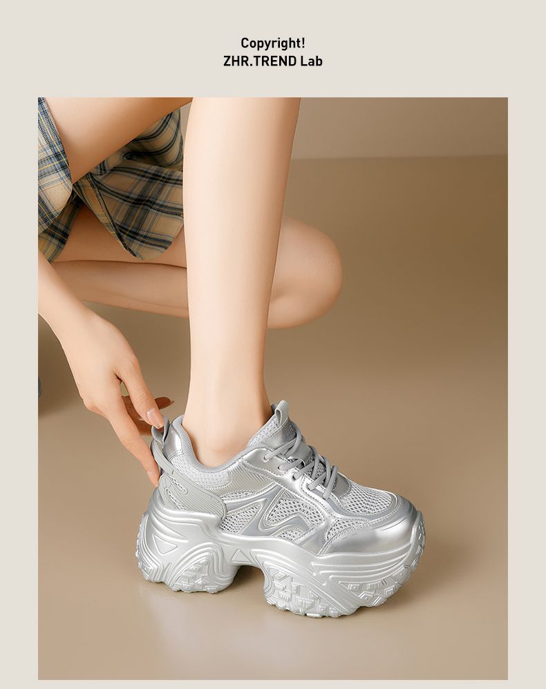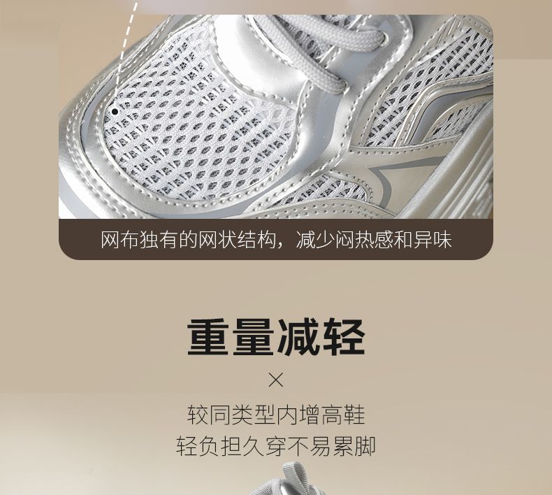 ZHR则则9CM内增高透气网面银色老爹鞋女厚底小个子运动休闲鞋夏季