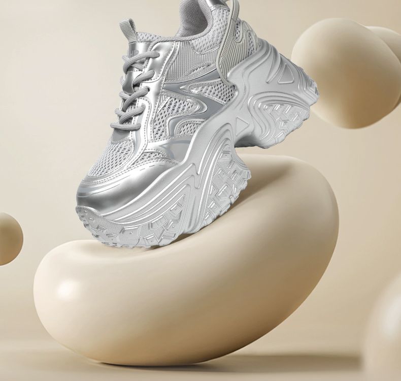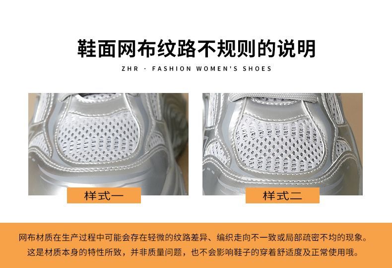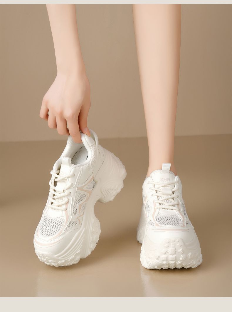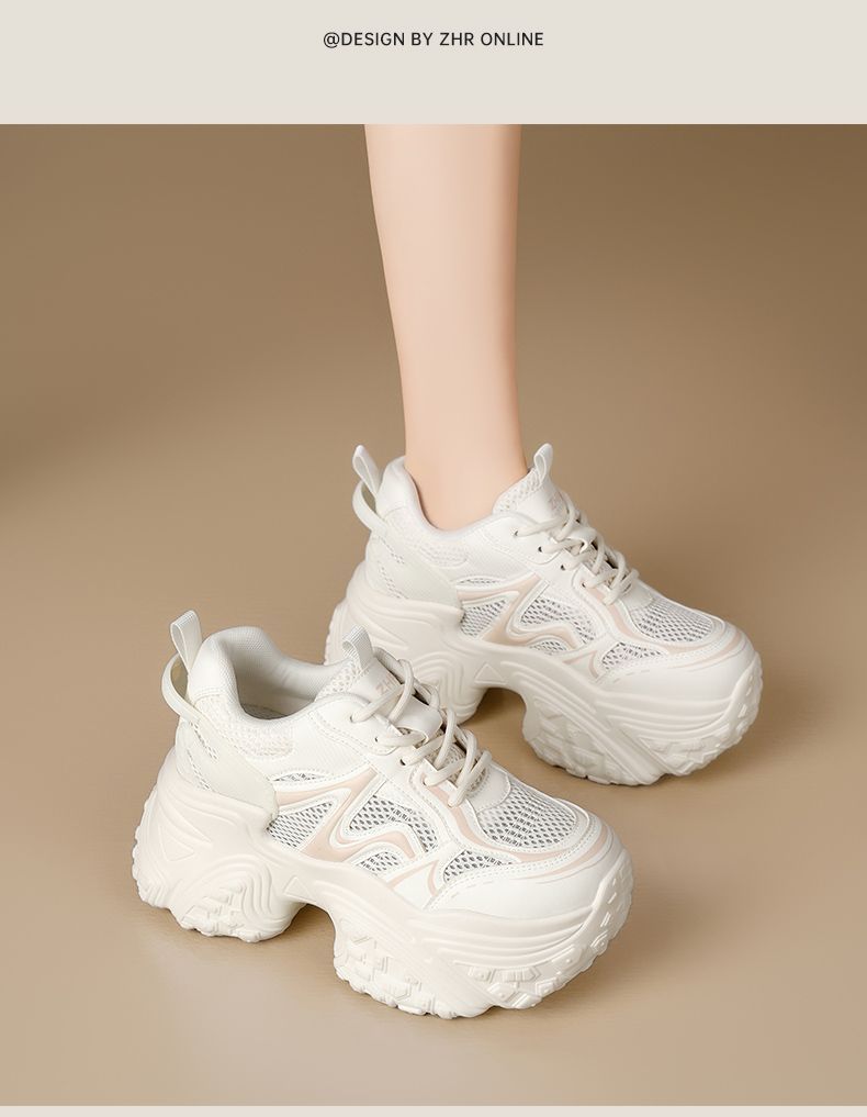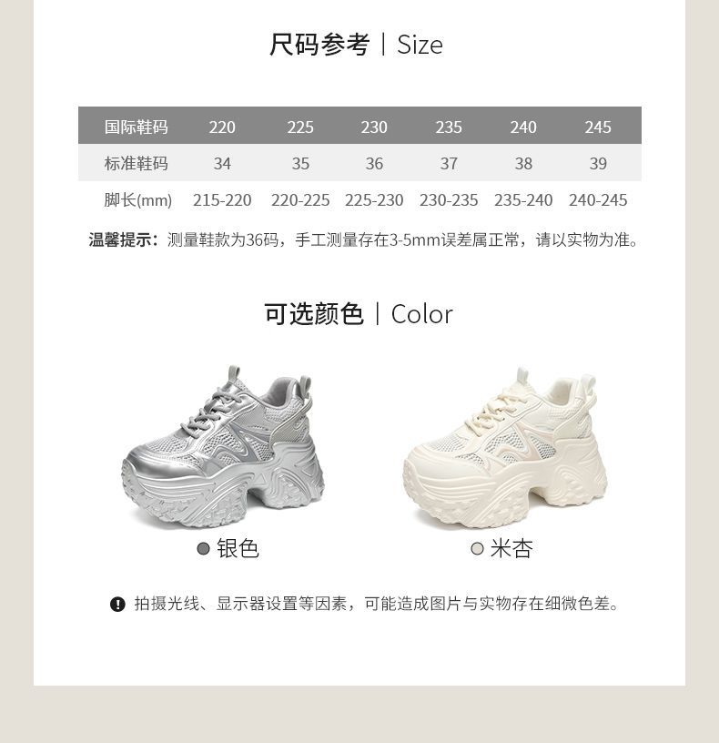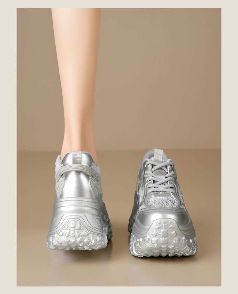 ZHR则则9CM内增高透气网面银色老爹鞋女厚底小个子运动休闲鞋夏季