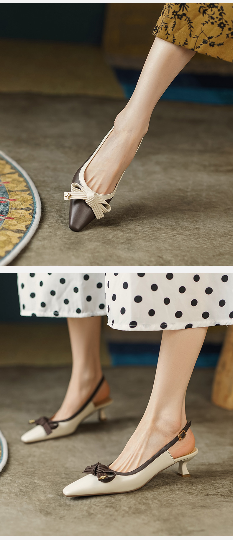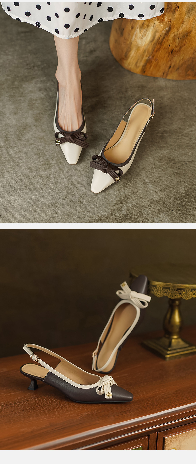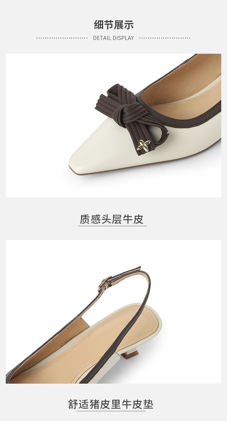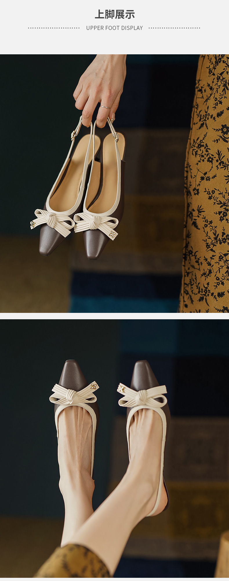 法式复古,舒适真皮撞色蝴蝶结后空凉鞋LCC-C8947