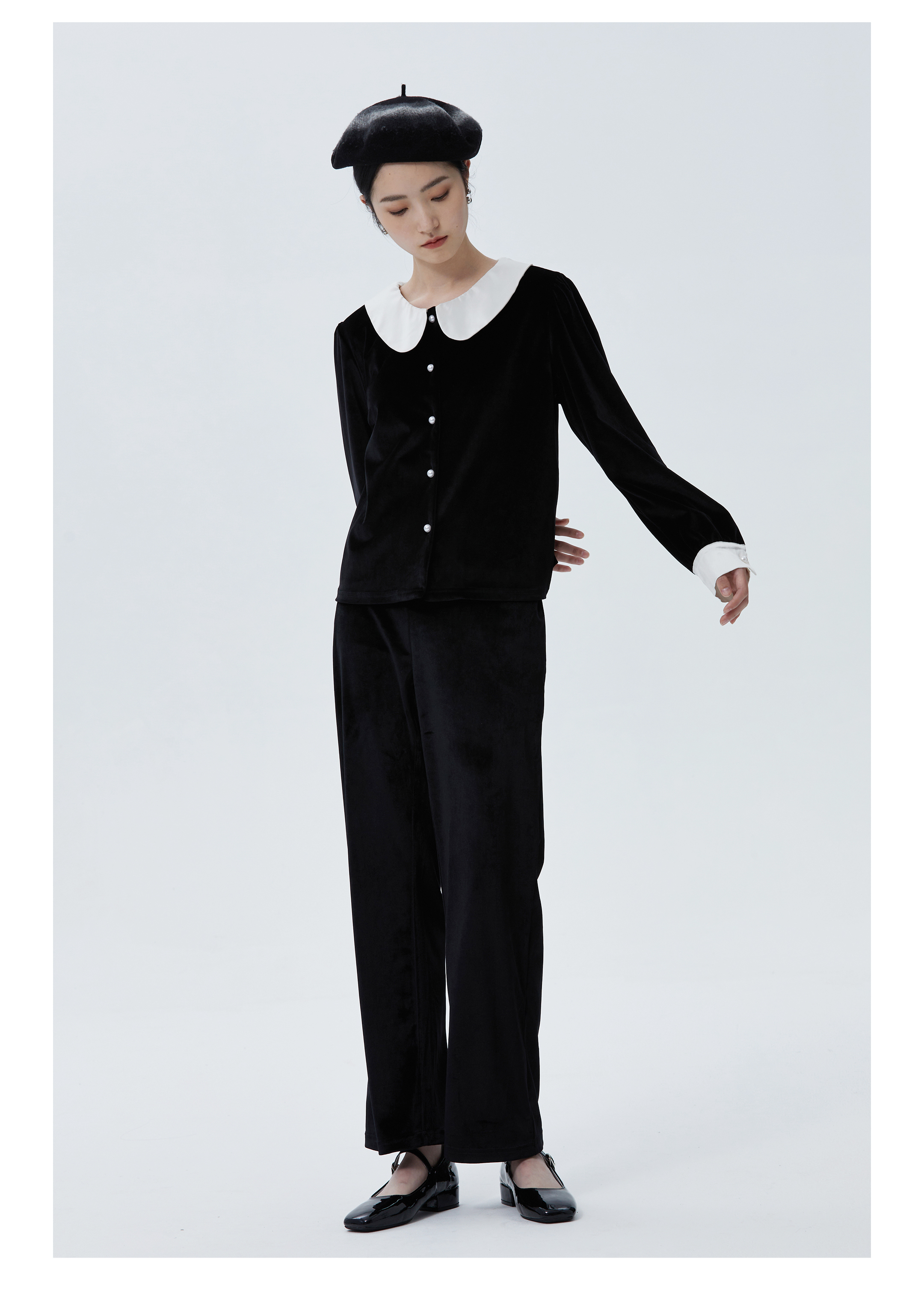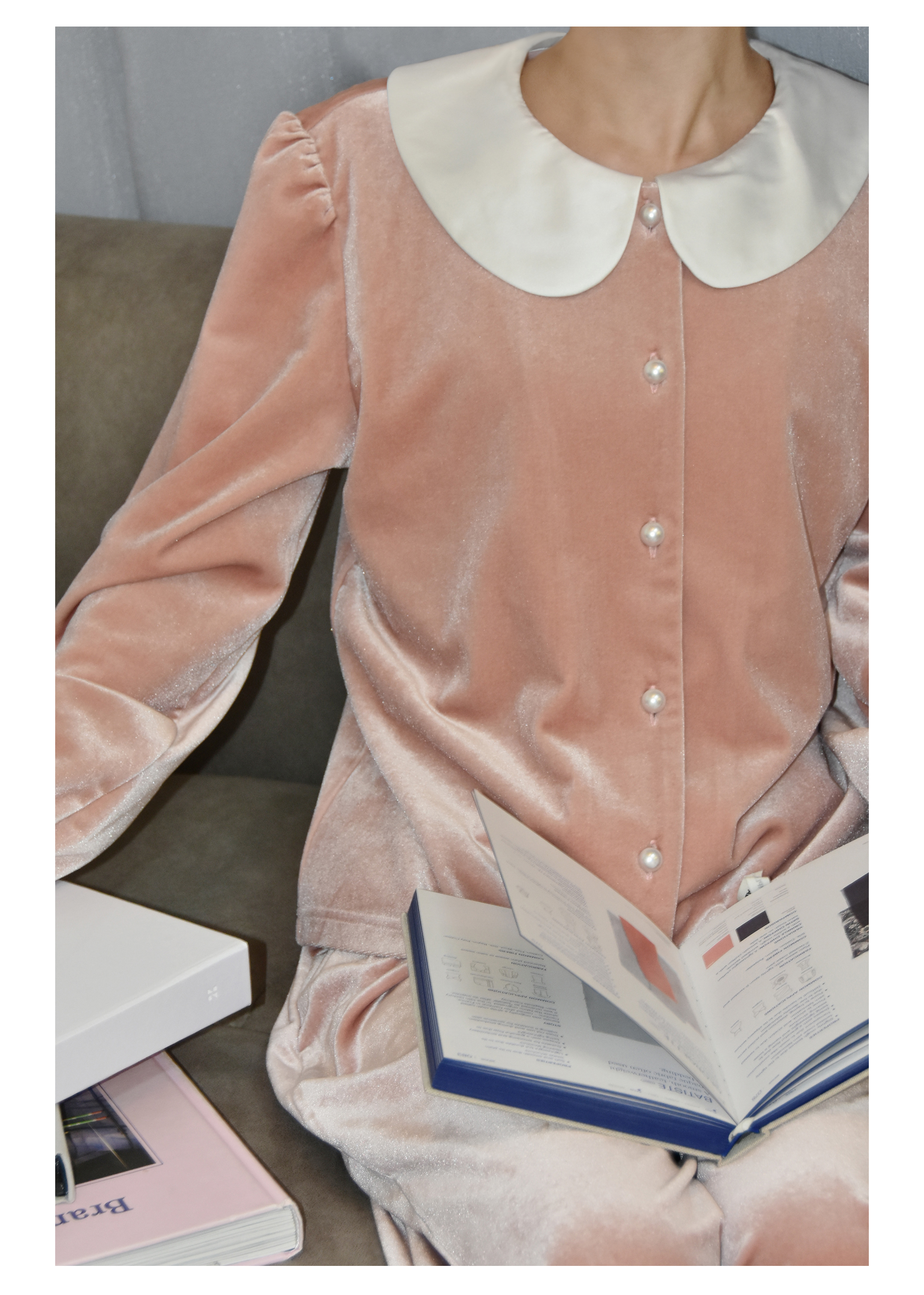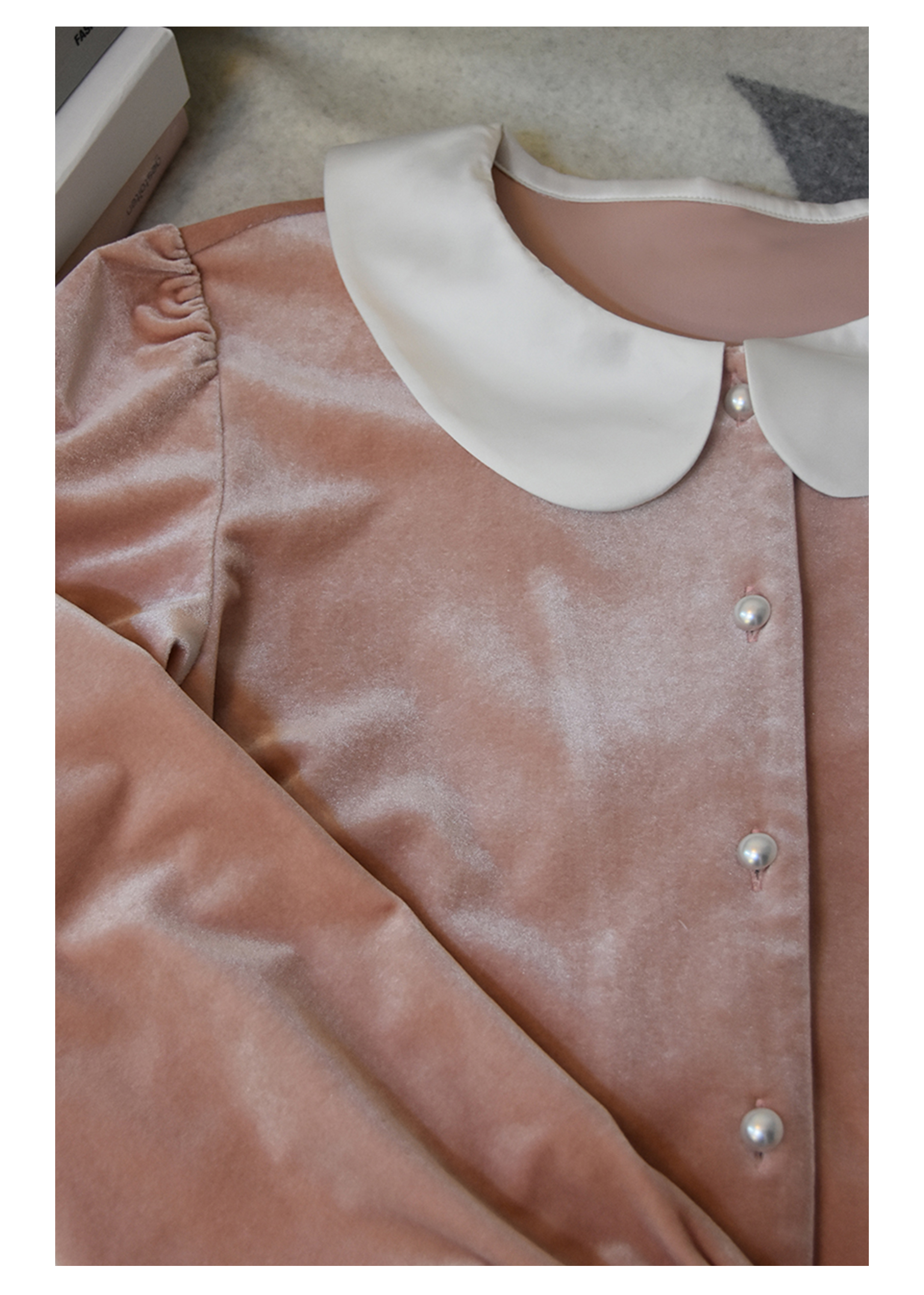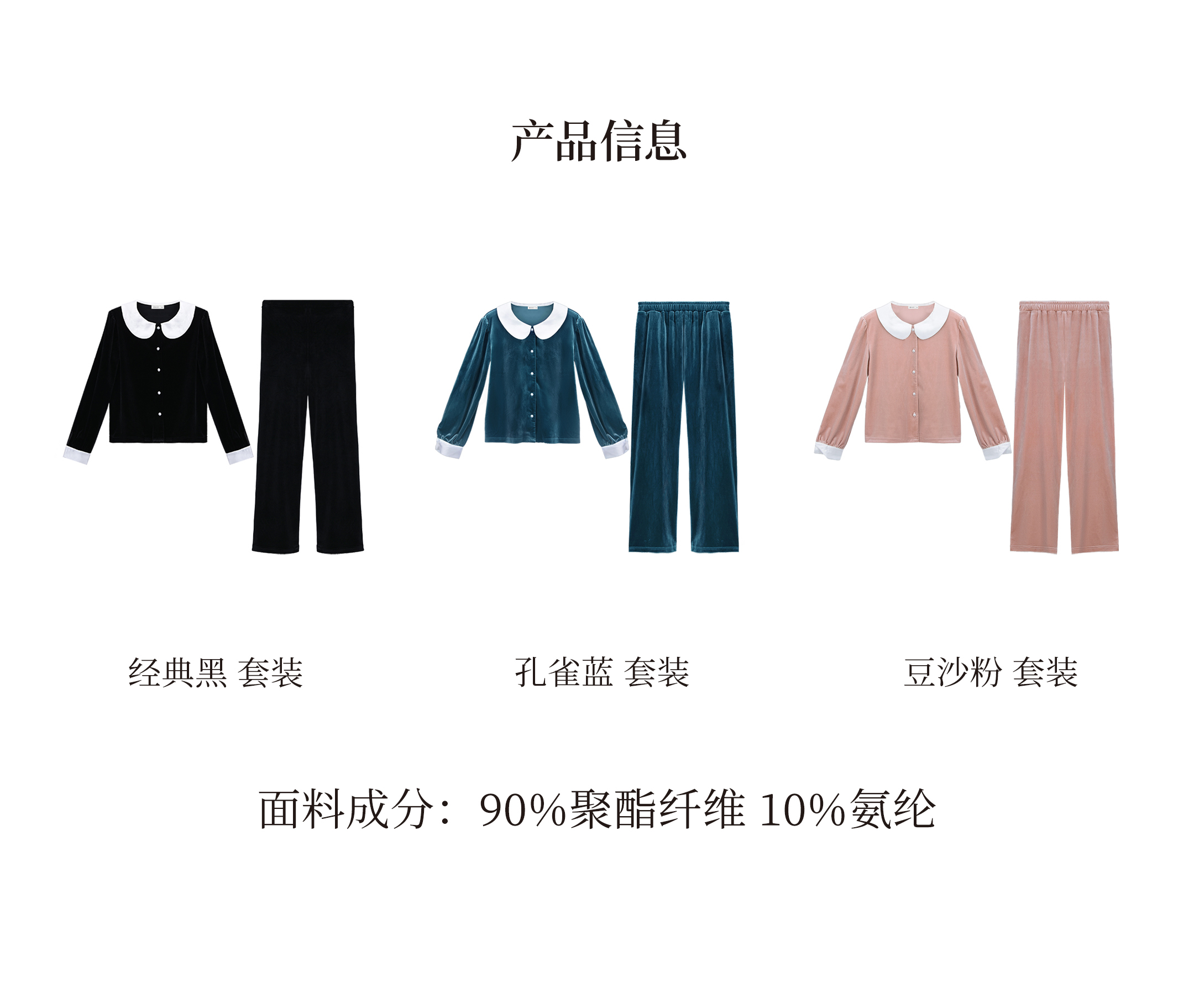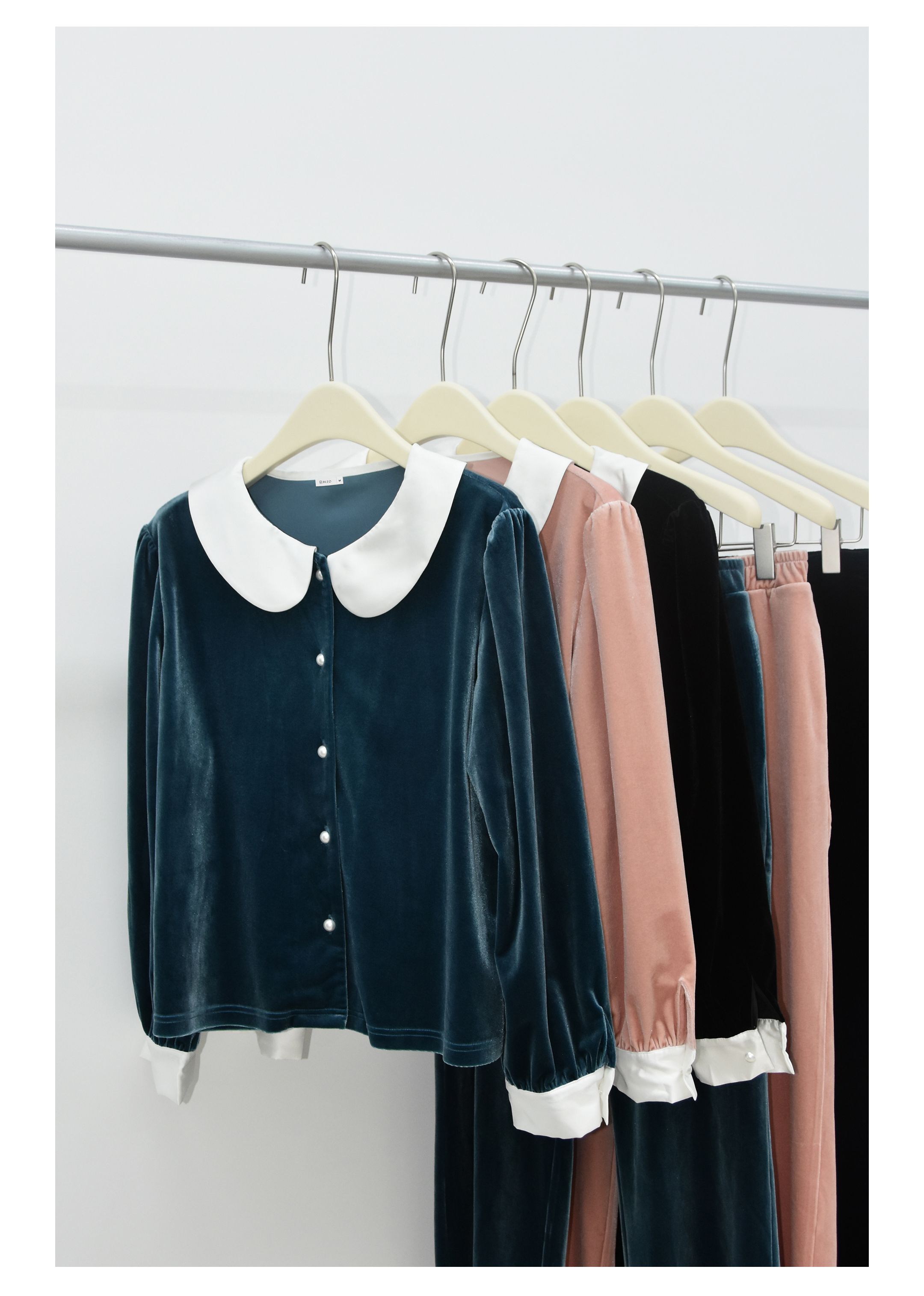 独特别致 BLEO 丝绒娃娃领珍珠纽扣家居服套装