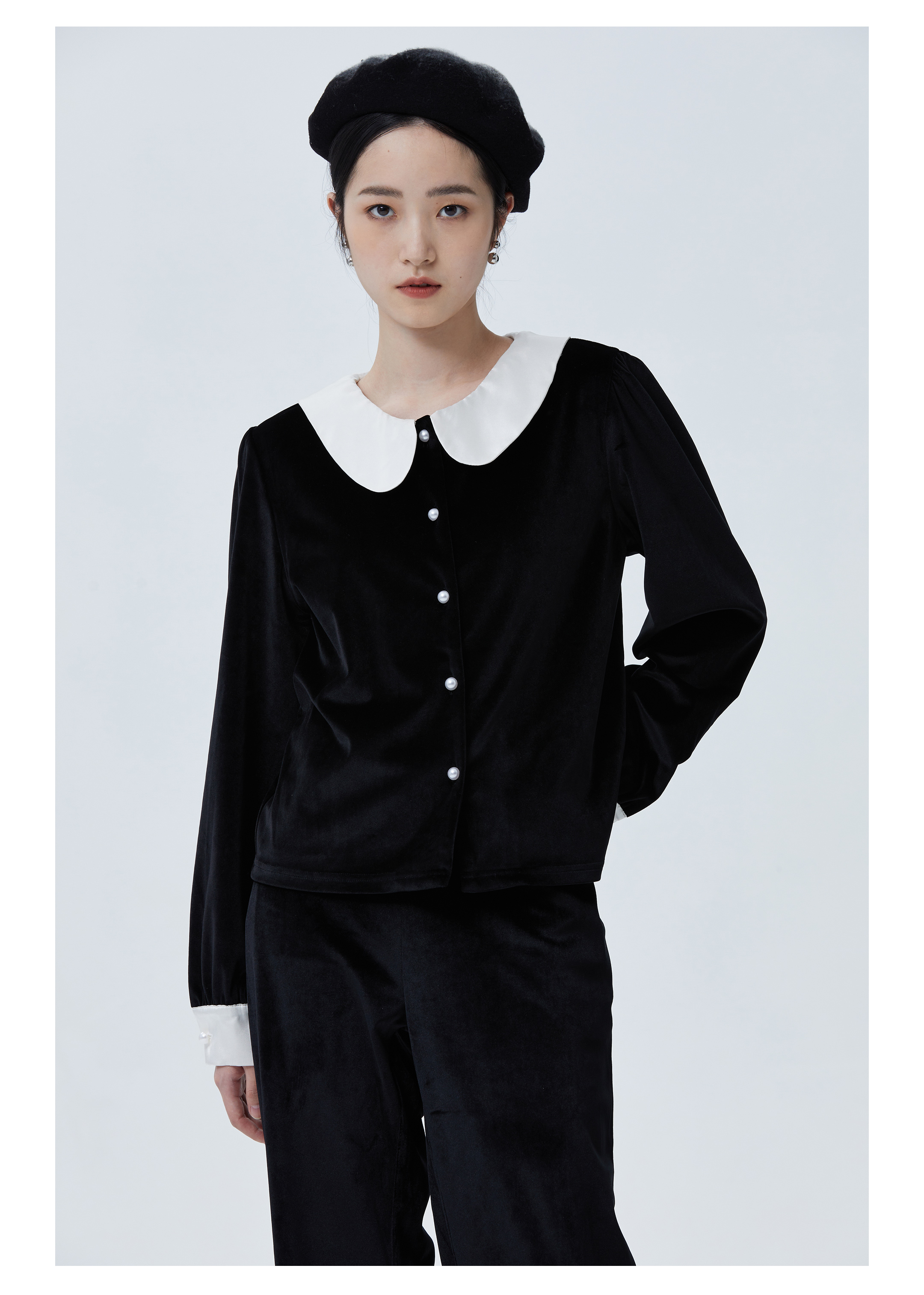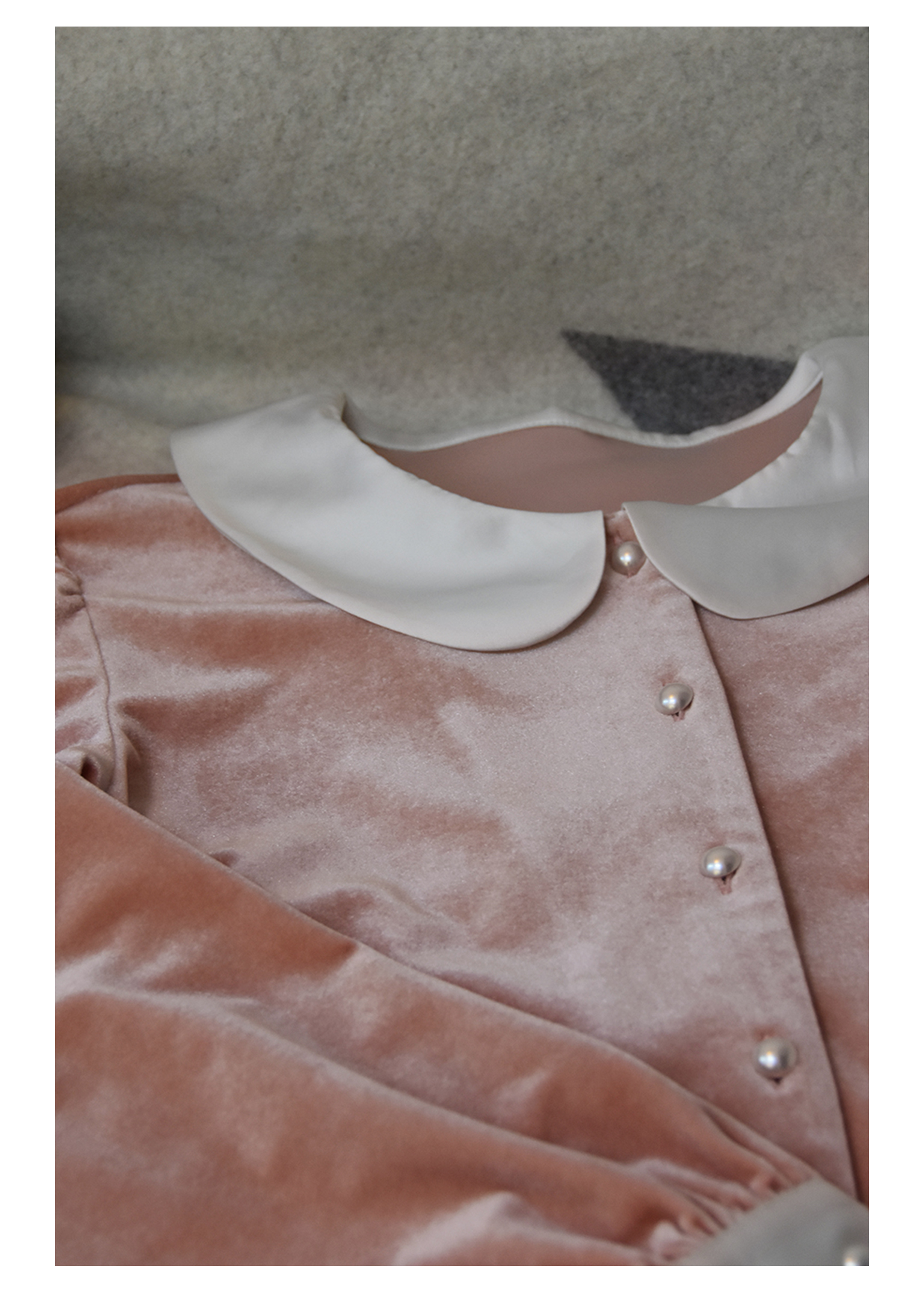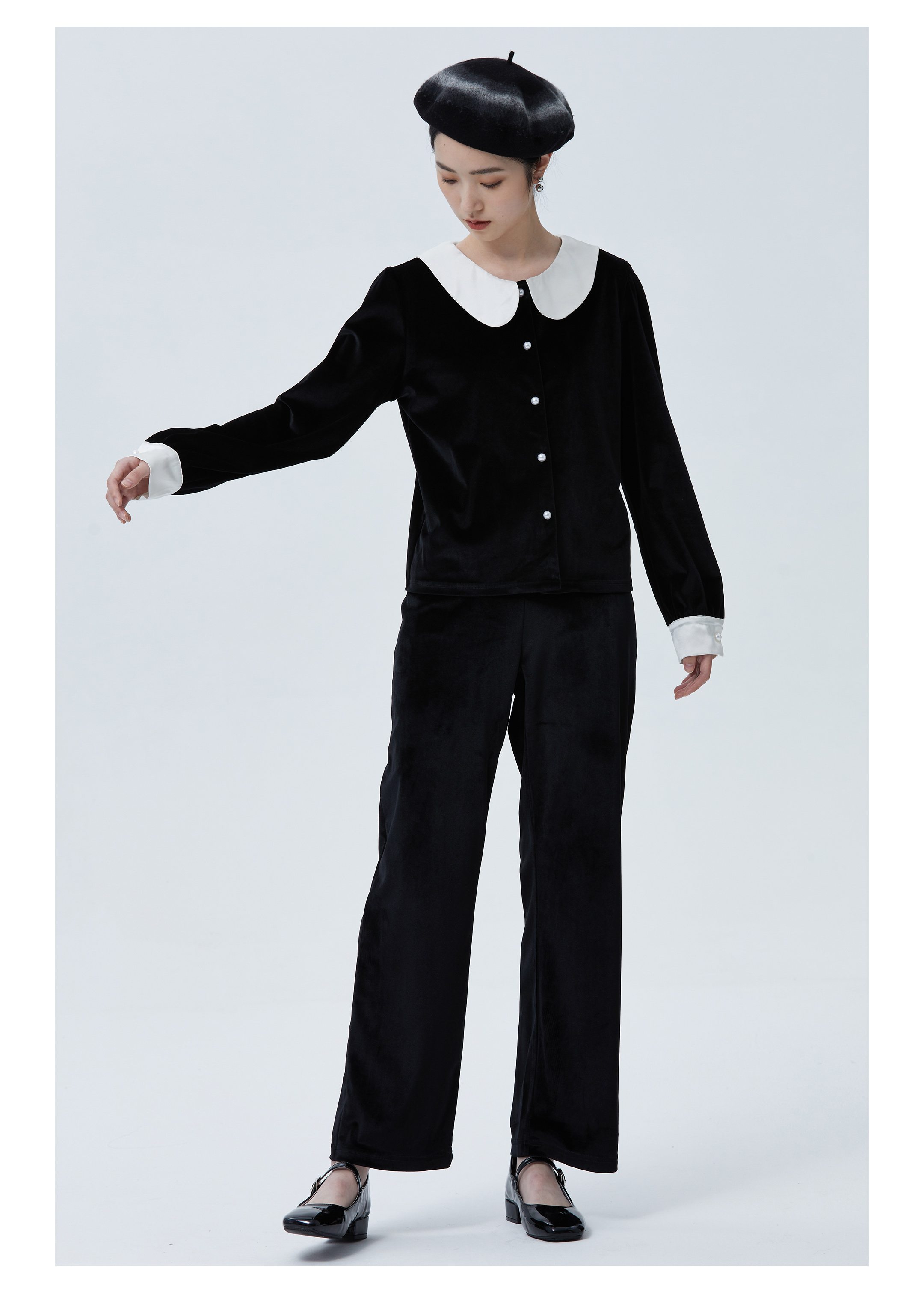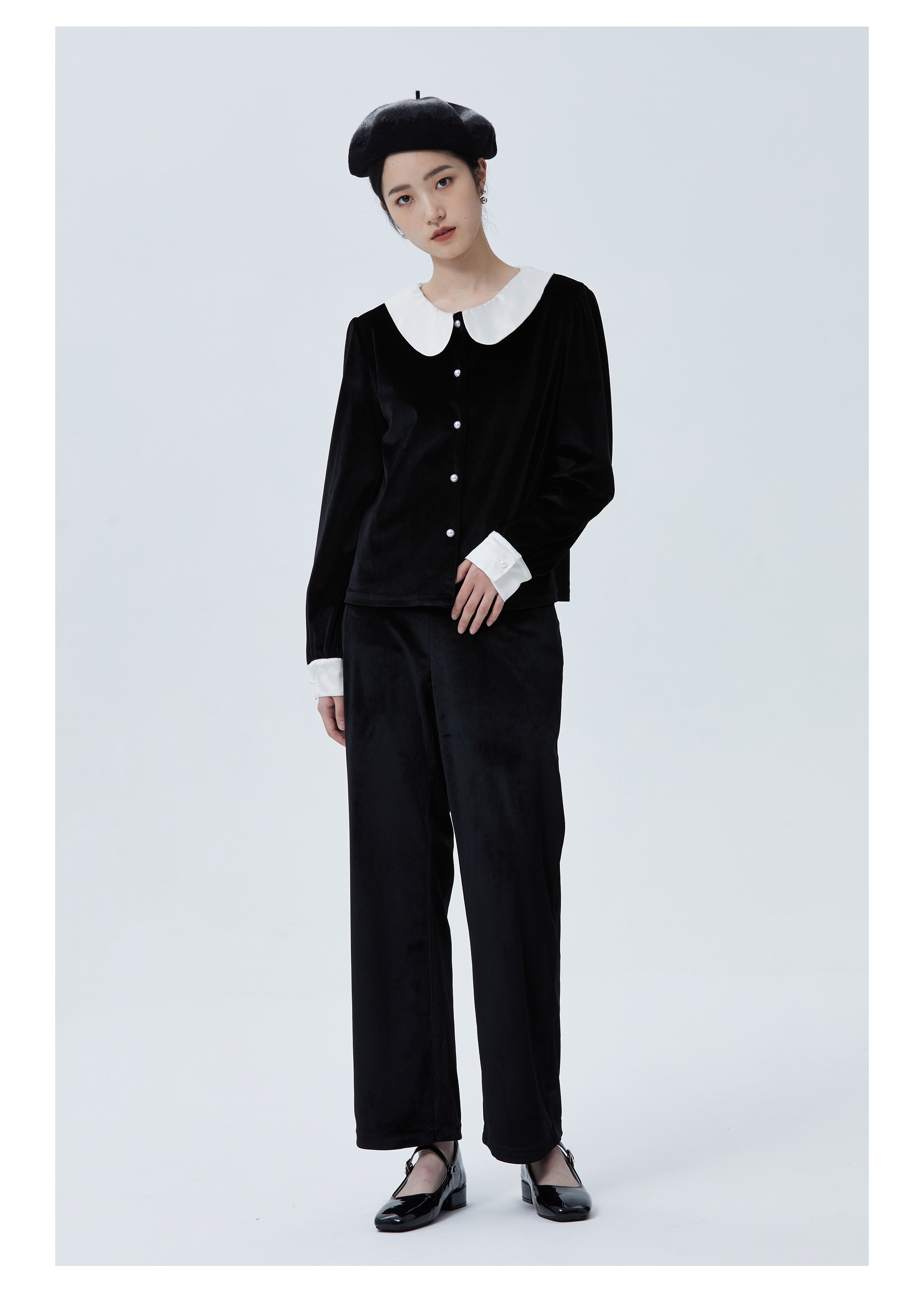 独特别致 BLEO 丝绒娃娃领珍珠纽扣家居服套装