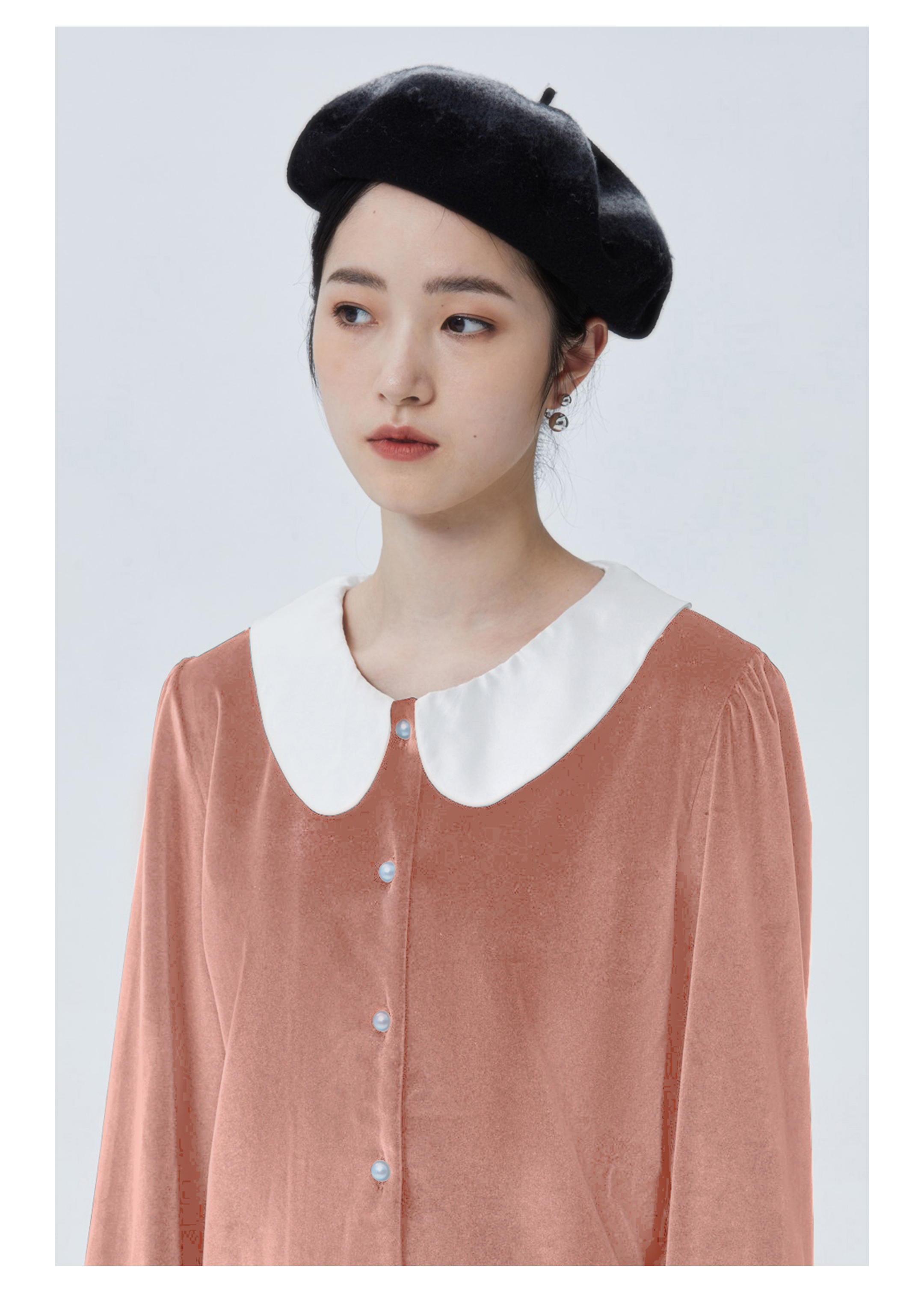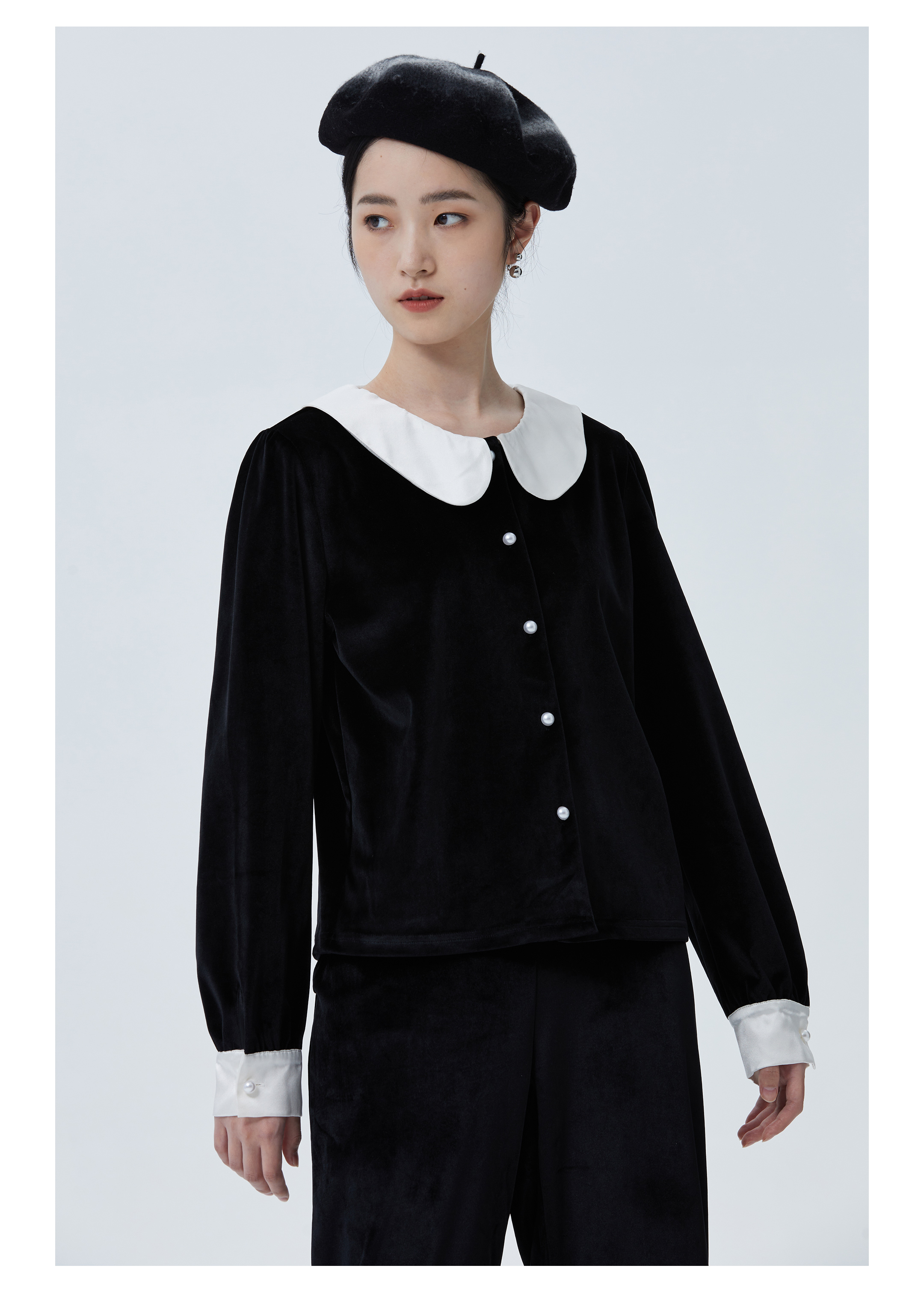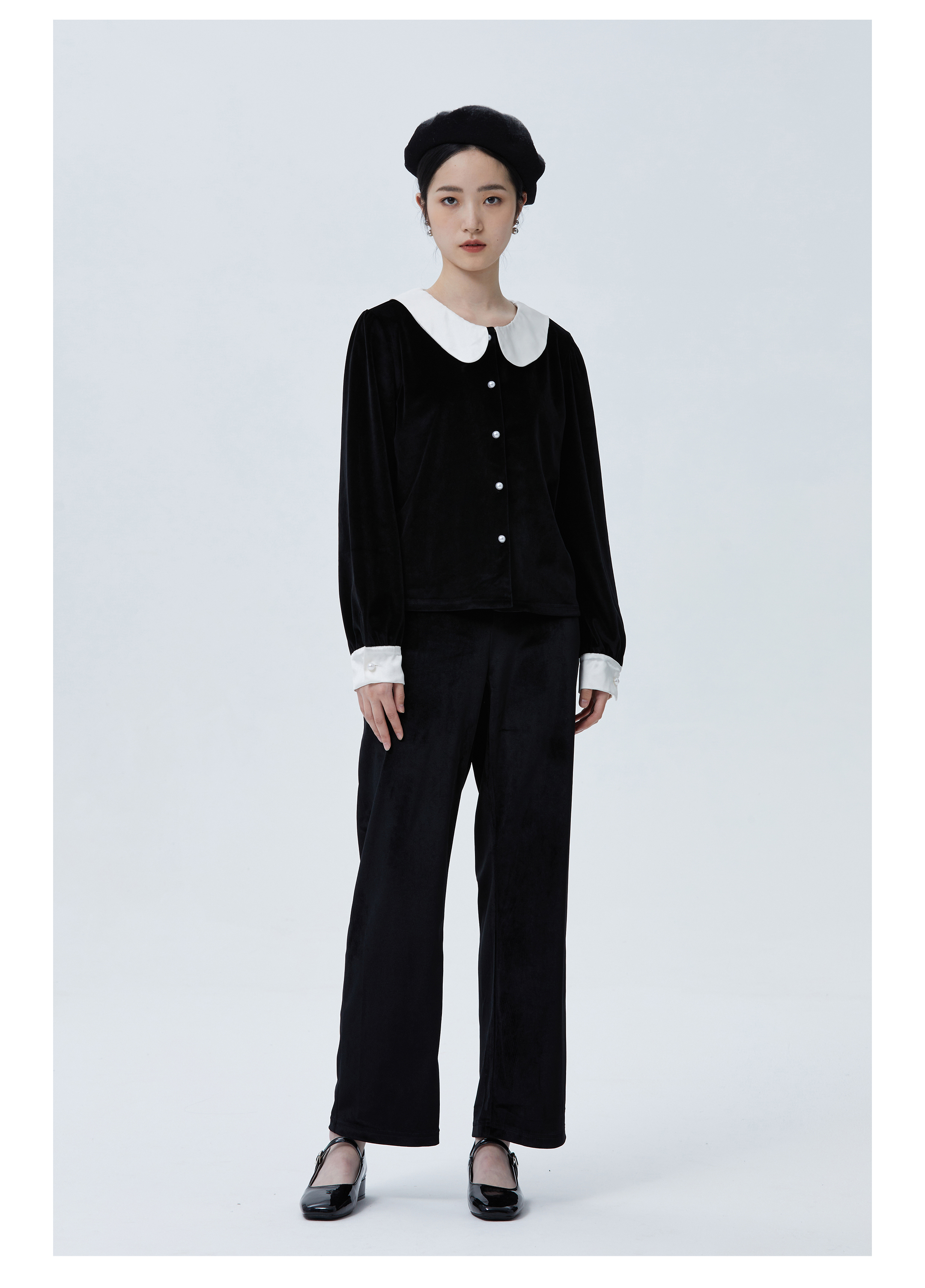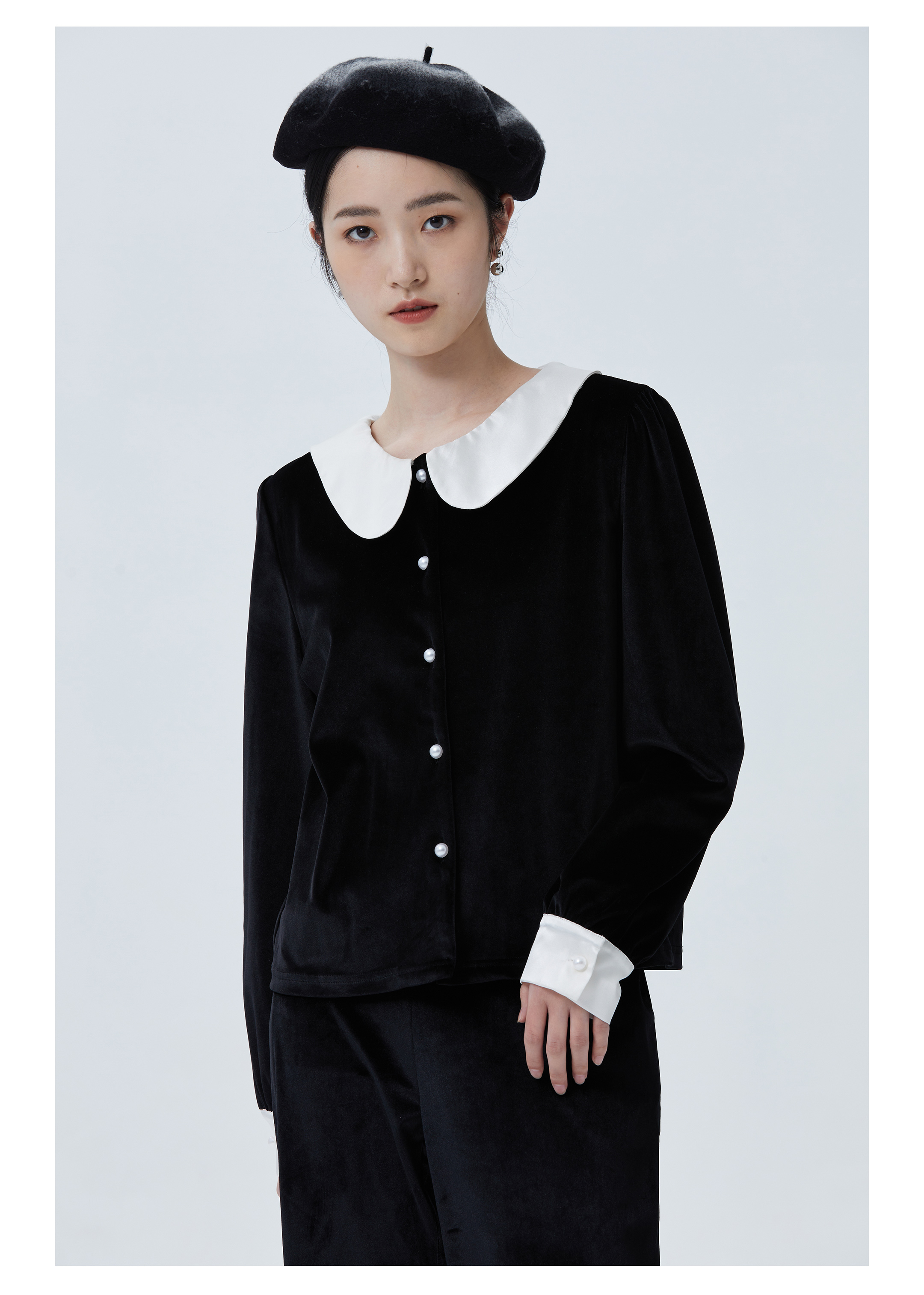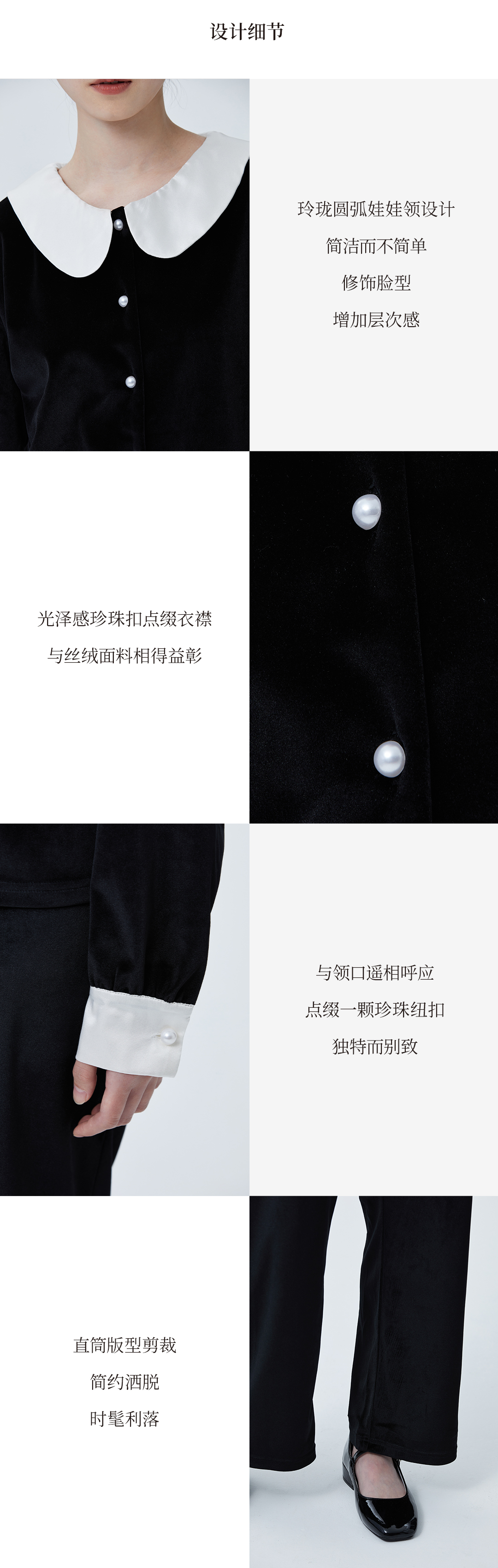 独特别致 BLEO 丝绒娃娃领珍珠纽扣家居服套装