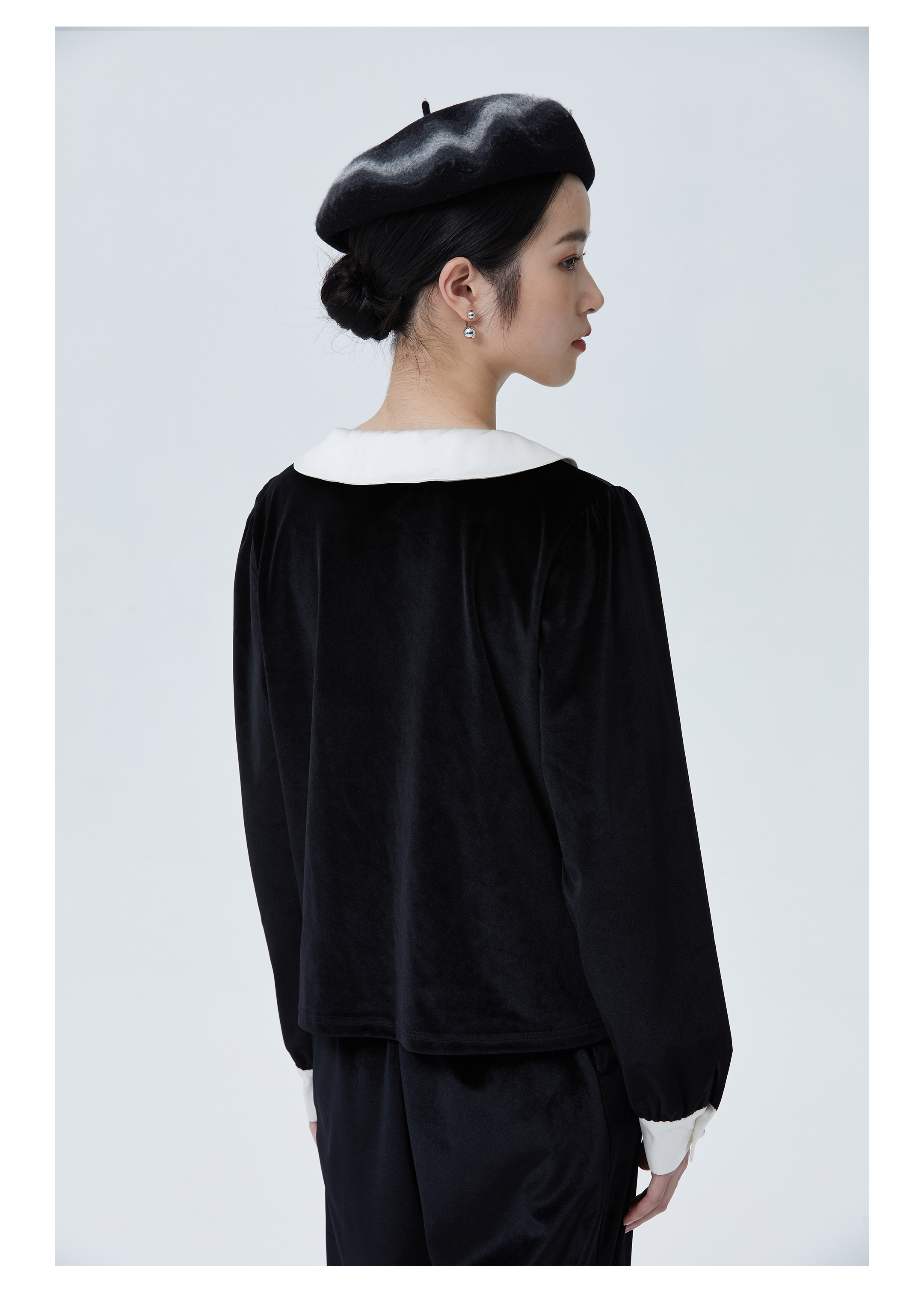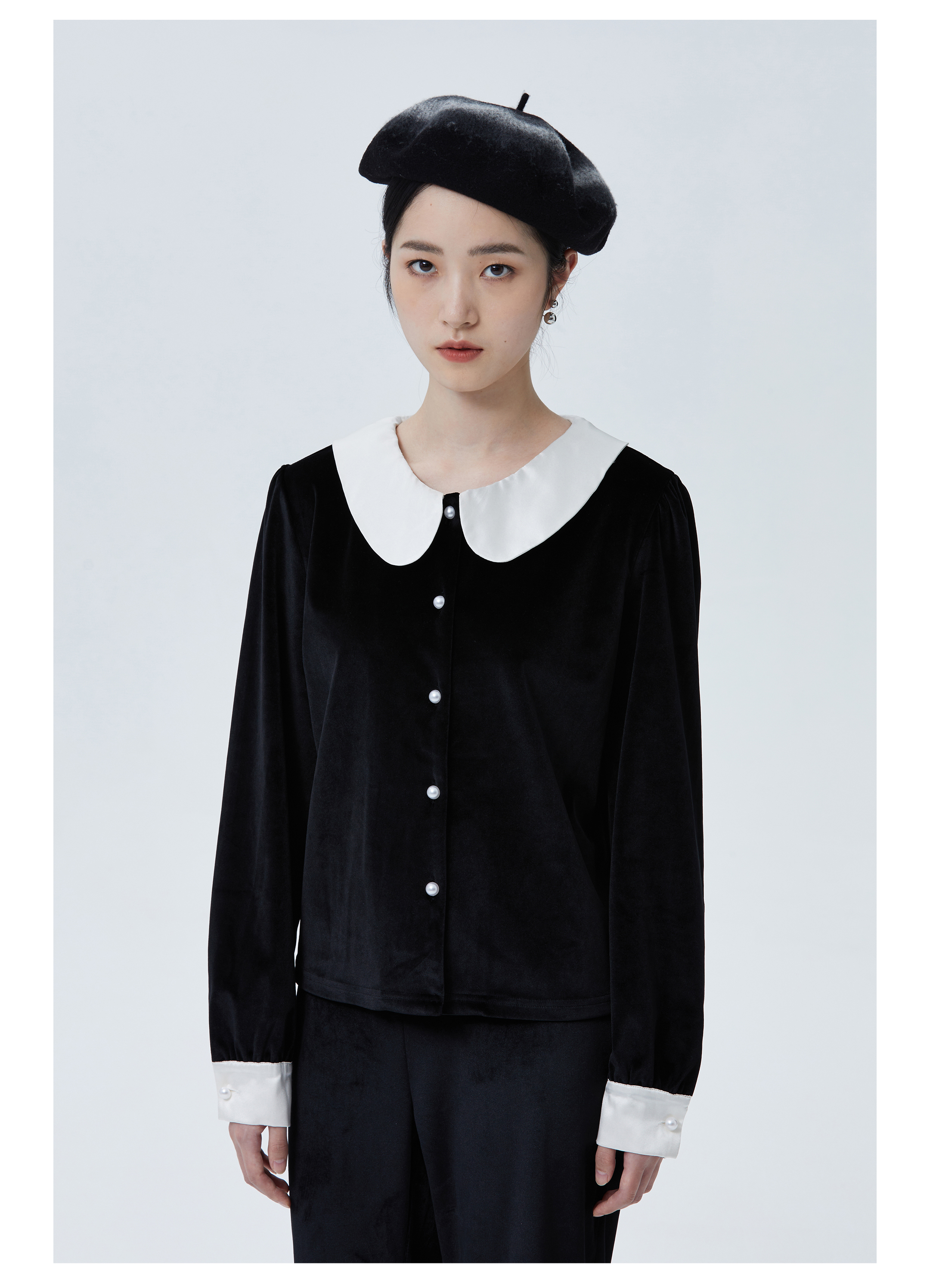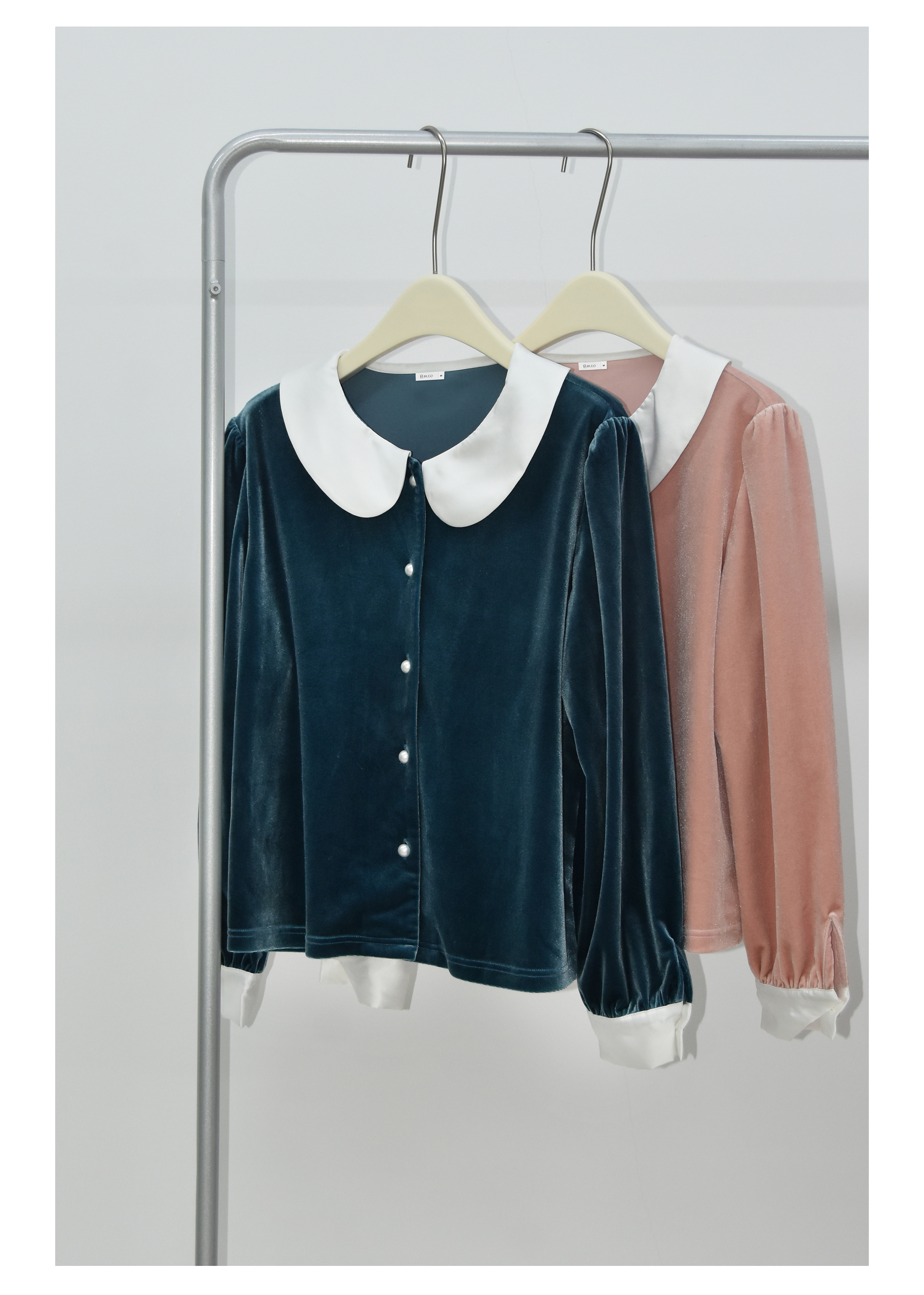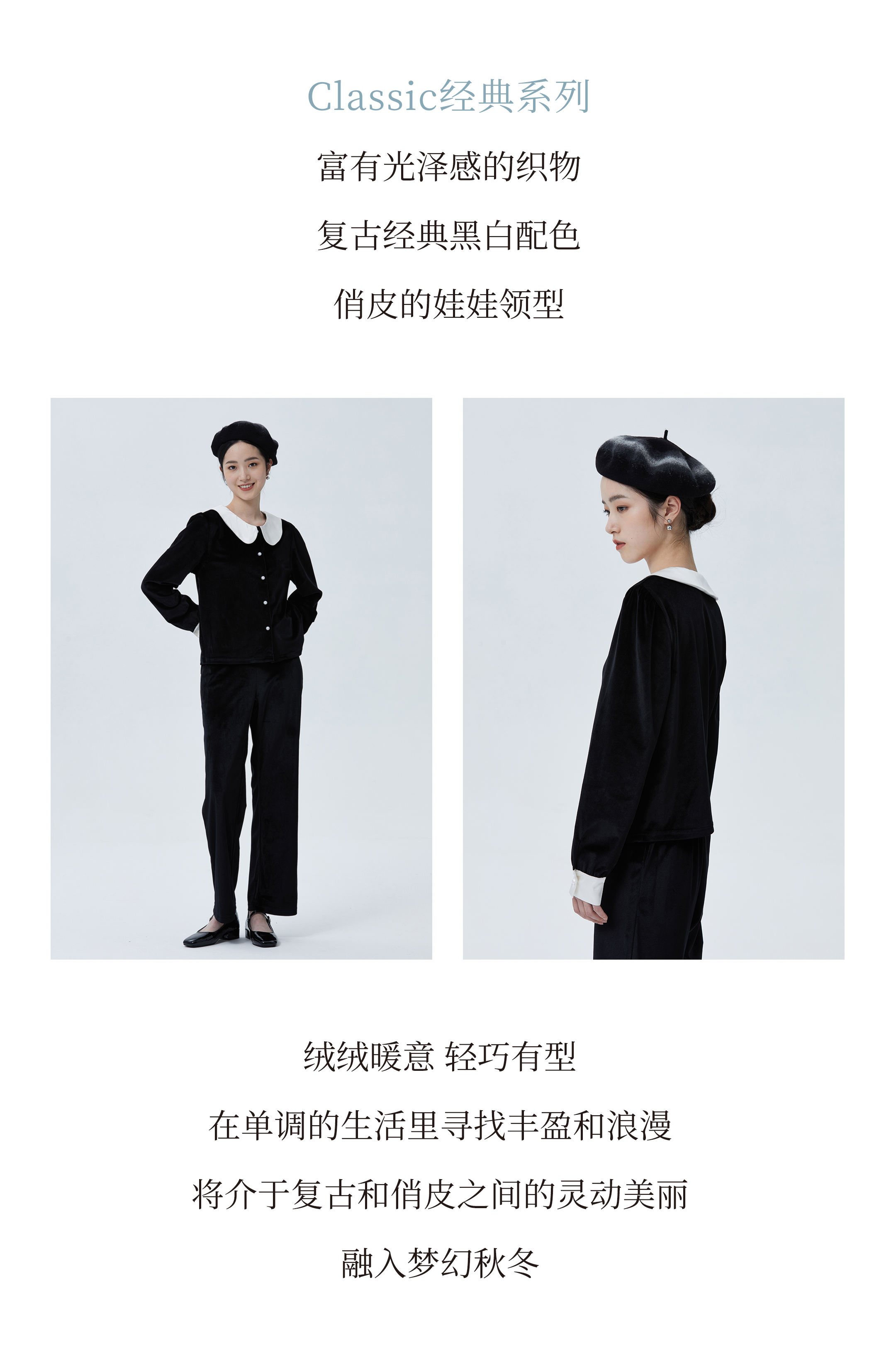 独特别致 BLEO 丝绒娃娃领珍珠纽扣家居服套装