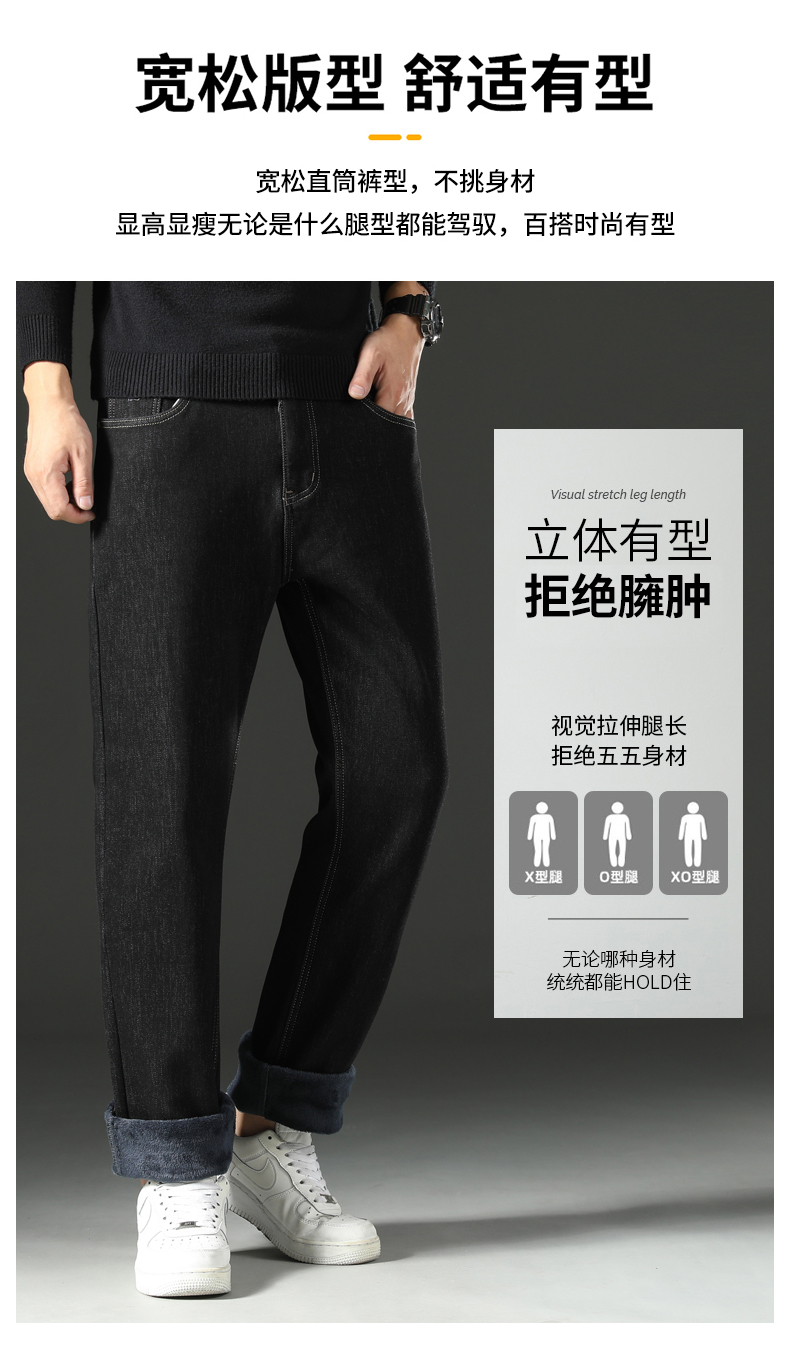 特大码【新款DMR】大依优型大码加绒牛仔裤直筒长裤男舒适弹力休闲商务简约百搭加肥加大男装裤子
