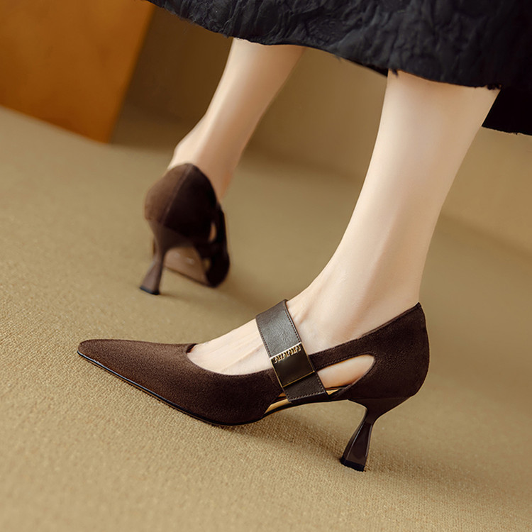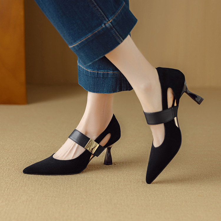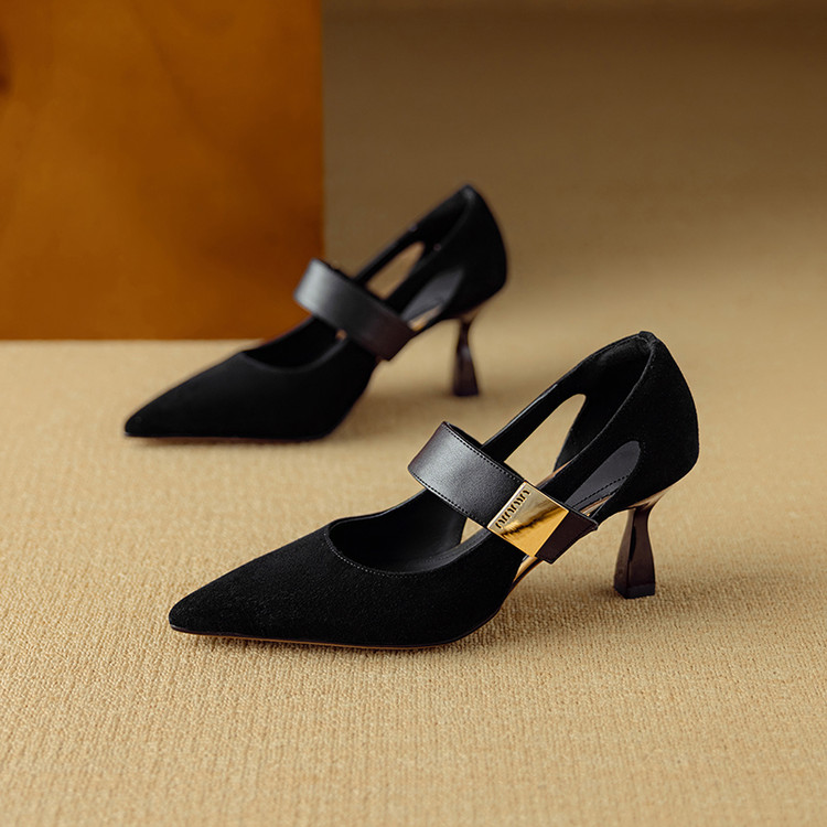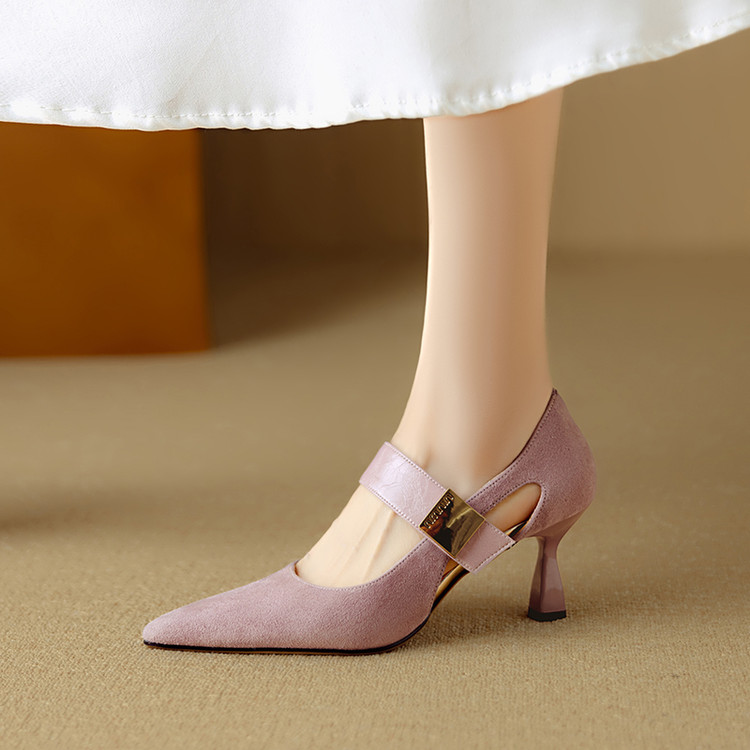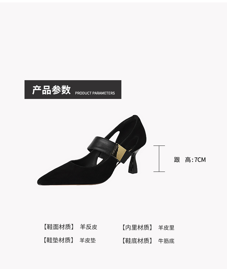 【货号】M6277【面料】羊反皮【内里】羊皮里【垫脚】羊皮垫【鞋底】牛筋底【跟高】7cm【颜色】黑色、棕色、香芋紫【尺码】34-40(大小定制不退换)