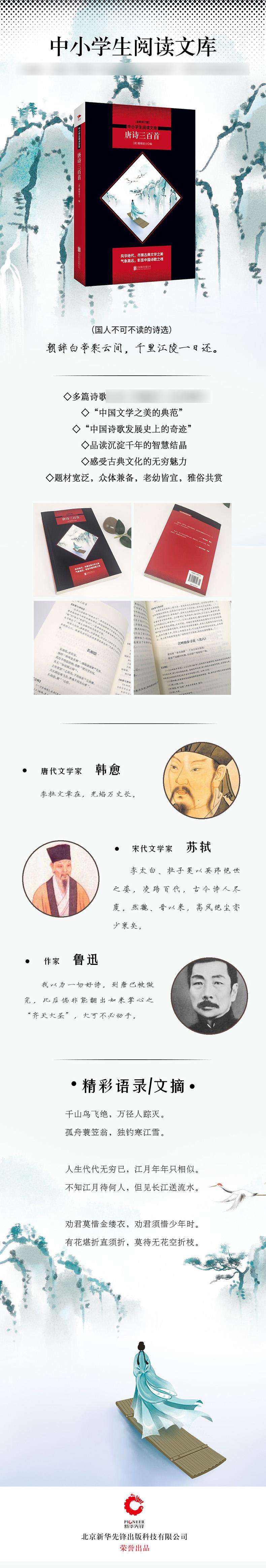 "风华绝代,尽展古典文学之美 气象高远,彰显中国诗歌之魂 ★多次入选“统编本”语文教材 ★“中国文学之美的典范” ★“中国诗歌发展目前的奇迹” ★品读沉淀千年的智慧结晶 ★感受古典文化的无穷魅力 ★题材宽泛,众体兼备,老幼皆宜,雅俗共赏 “朝辞白帝彩云间,千里江陵一日还。”"