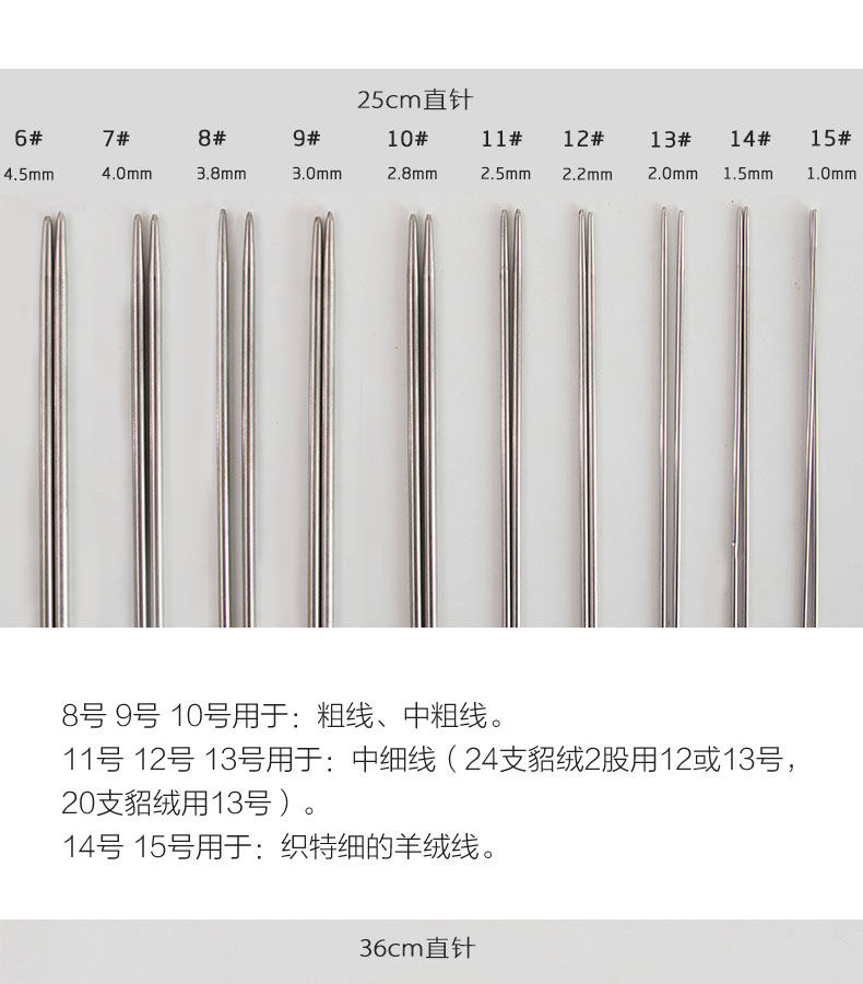 如意鸟 不锈钢毛衣针 长直针 编织工具 36cm 25cm