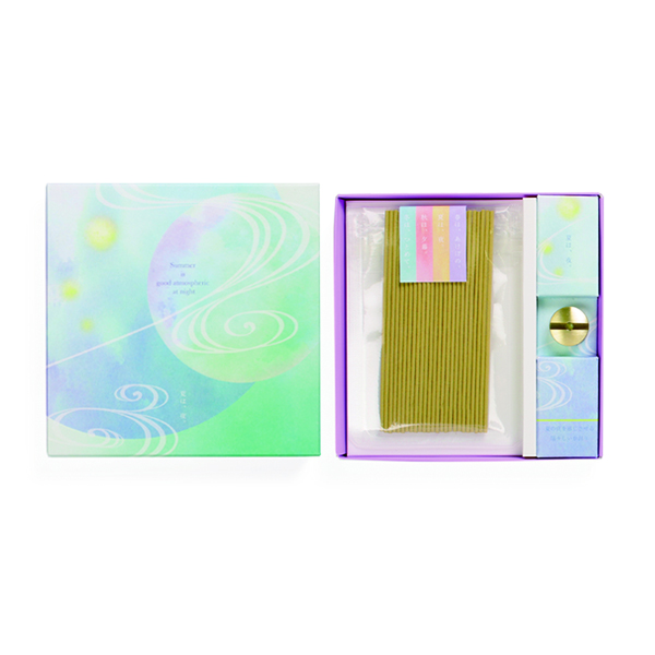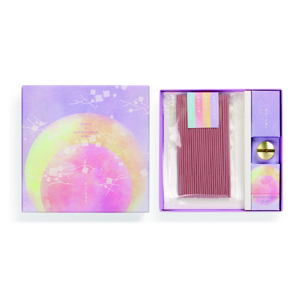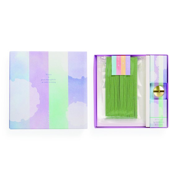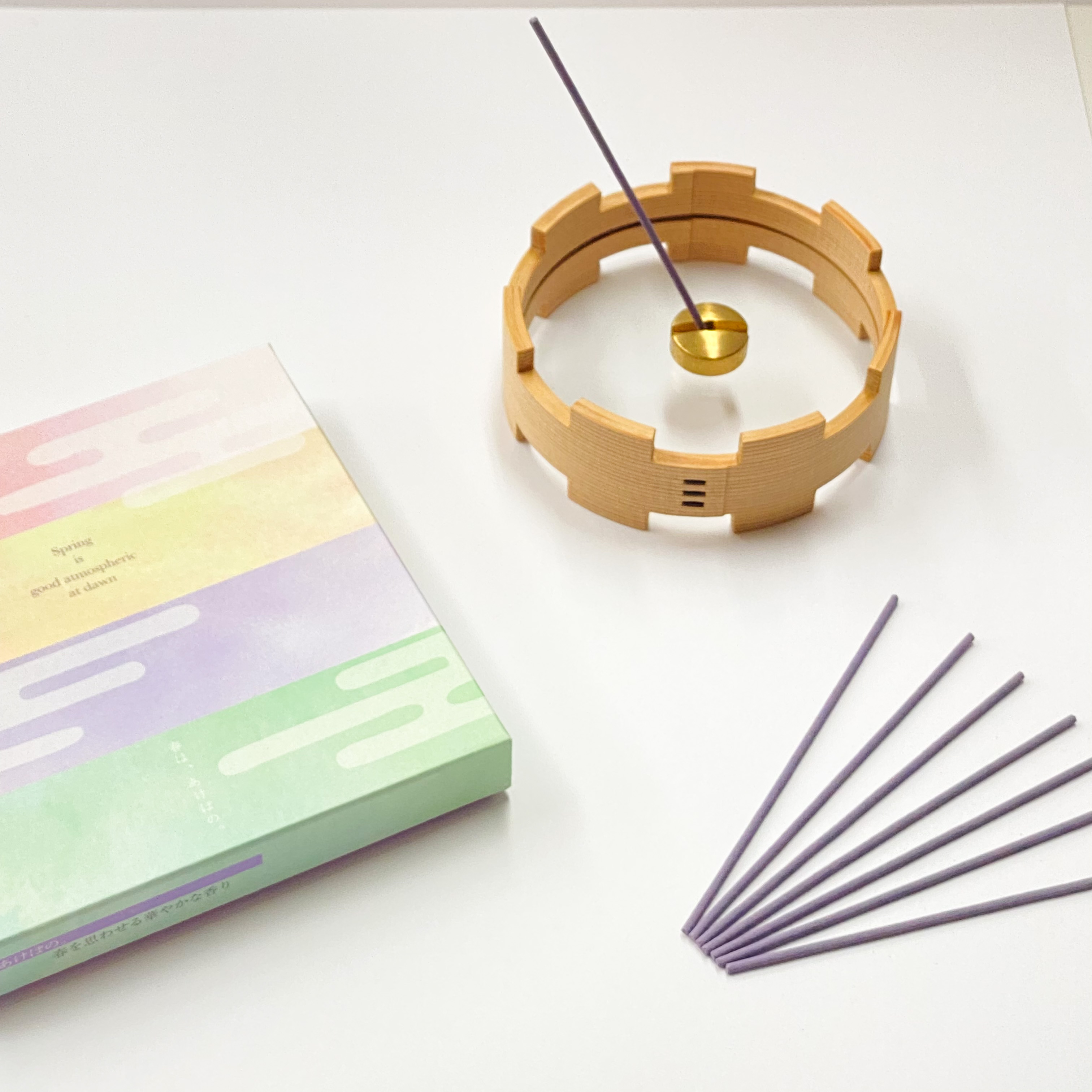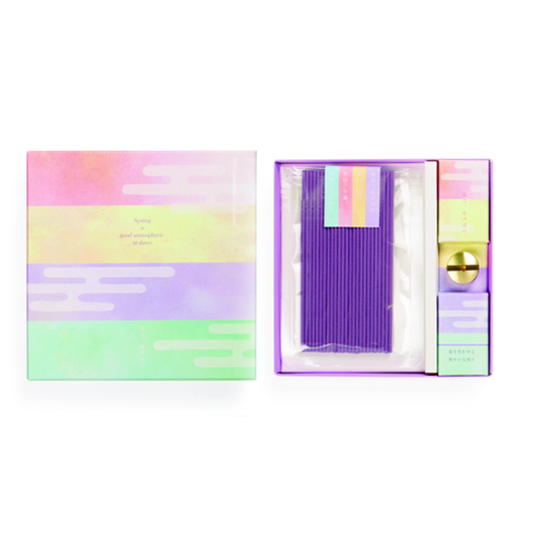 以清少纳言的平安时代文学代表作随笔《枕草子》为灵感设计的纤细线香与香立套装。