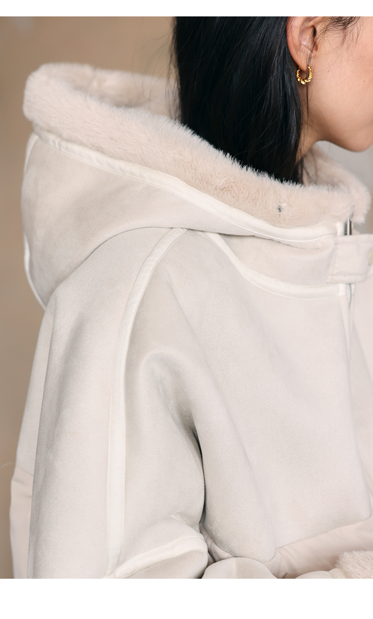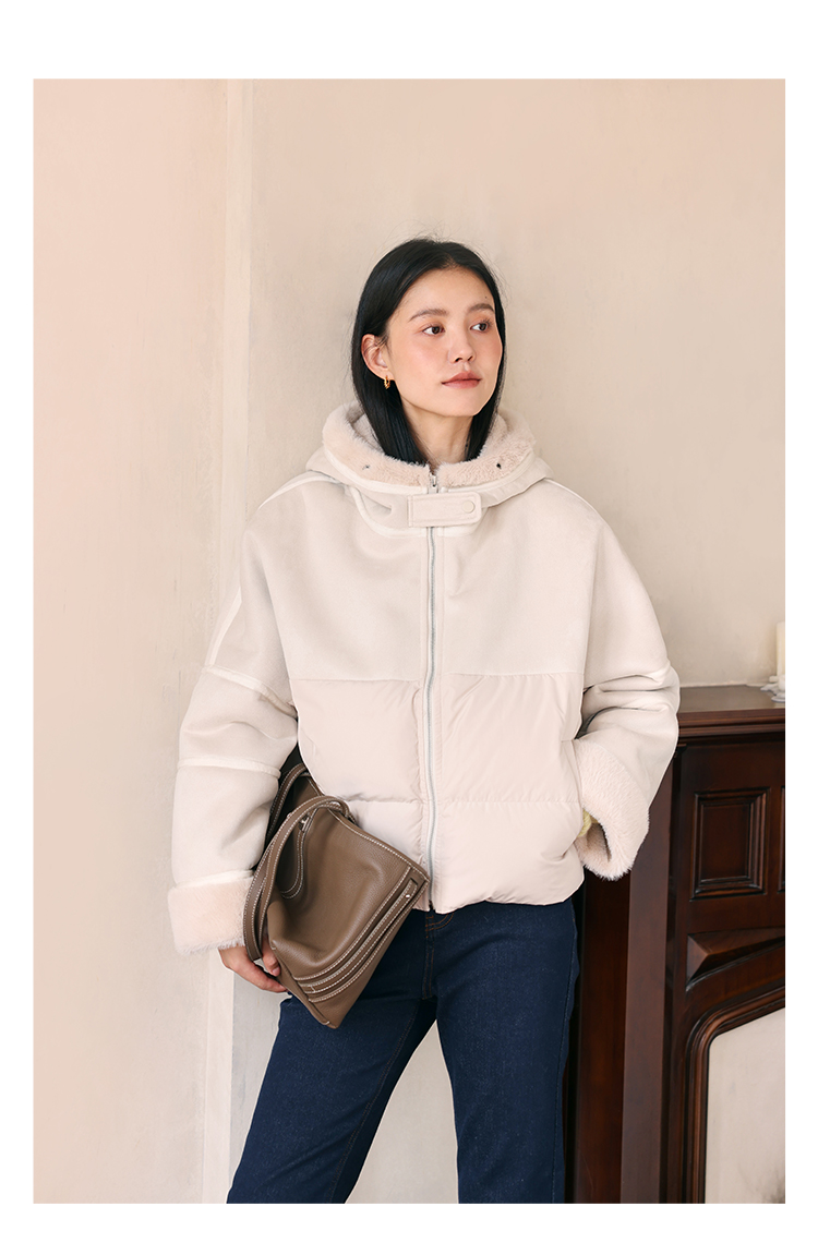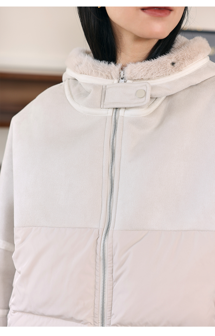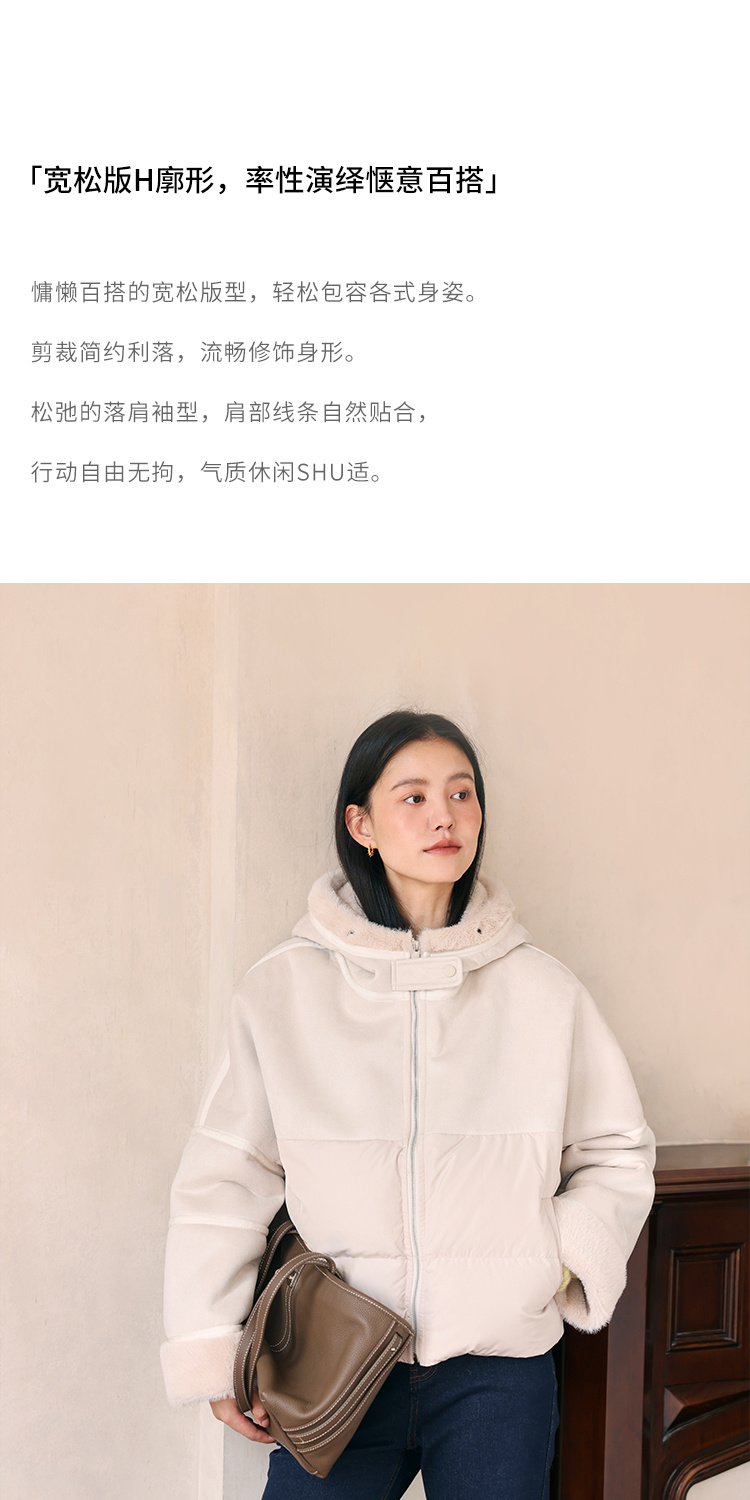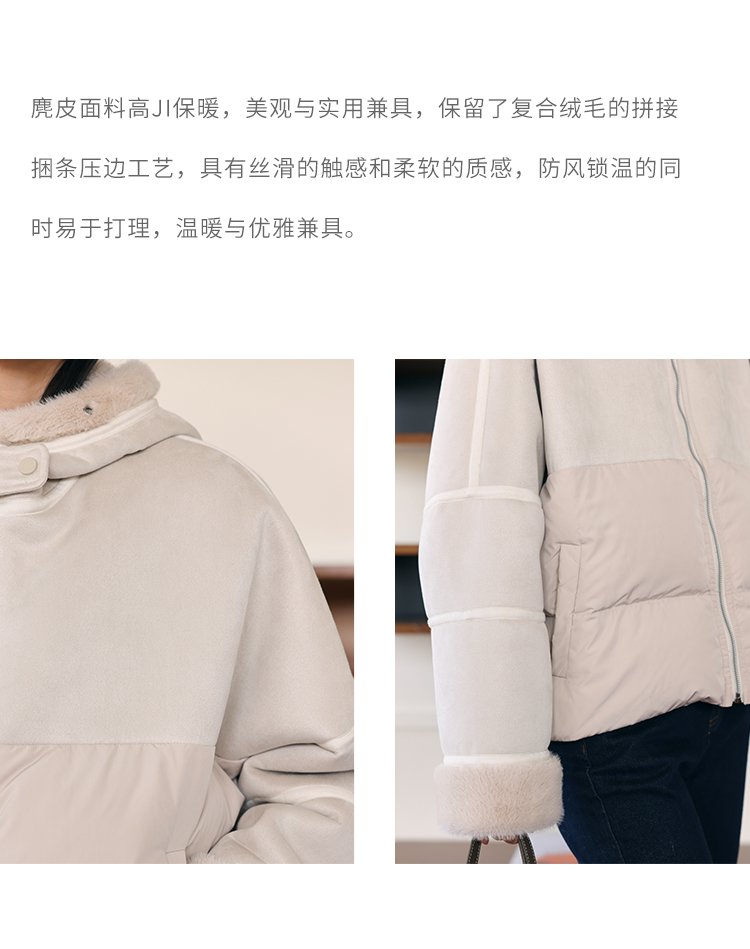 HeyDress麂皮羽绒服女冬季宽松加绒抗寒保暖外套别致连帽设计上衣