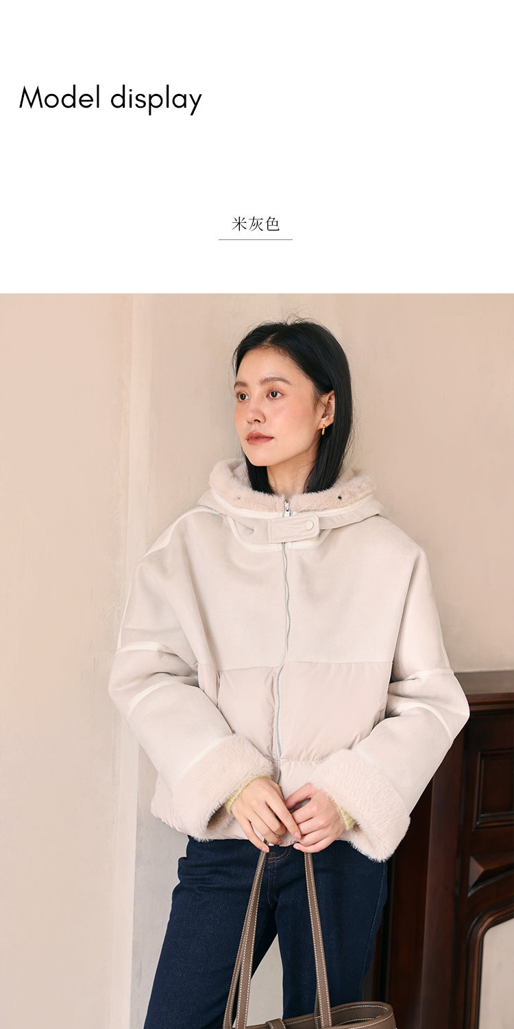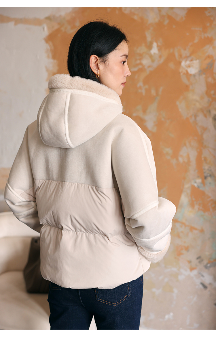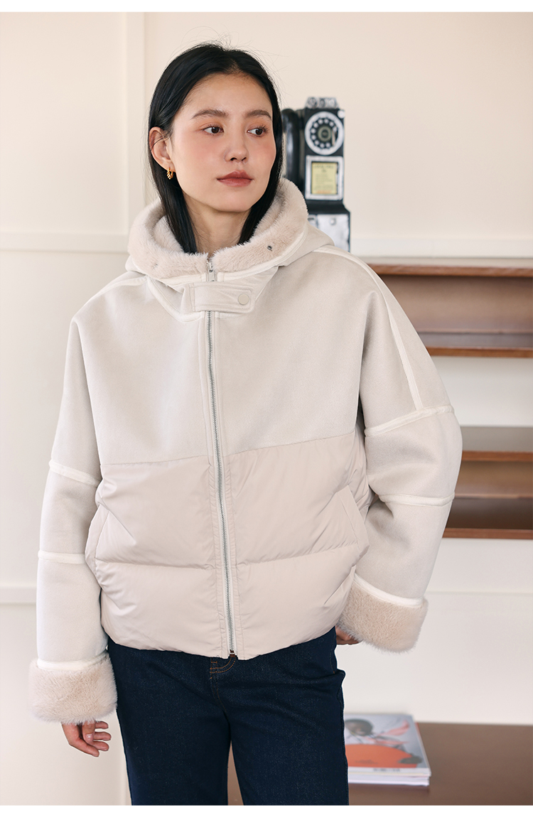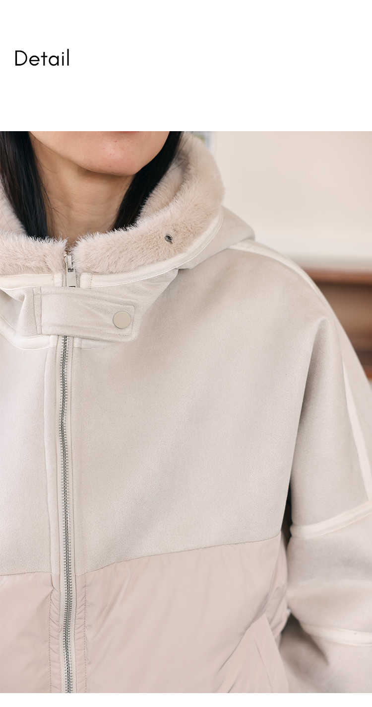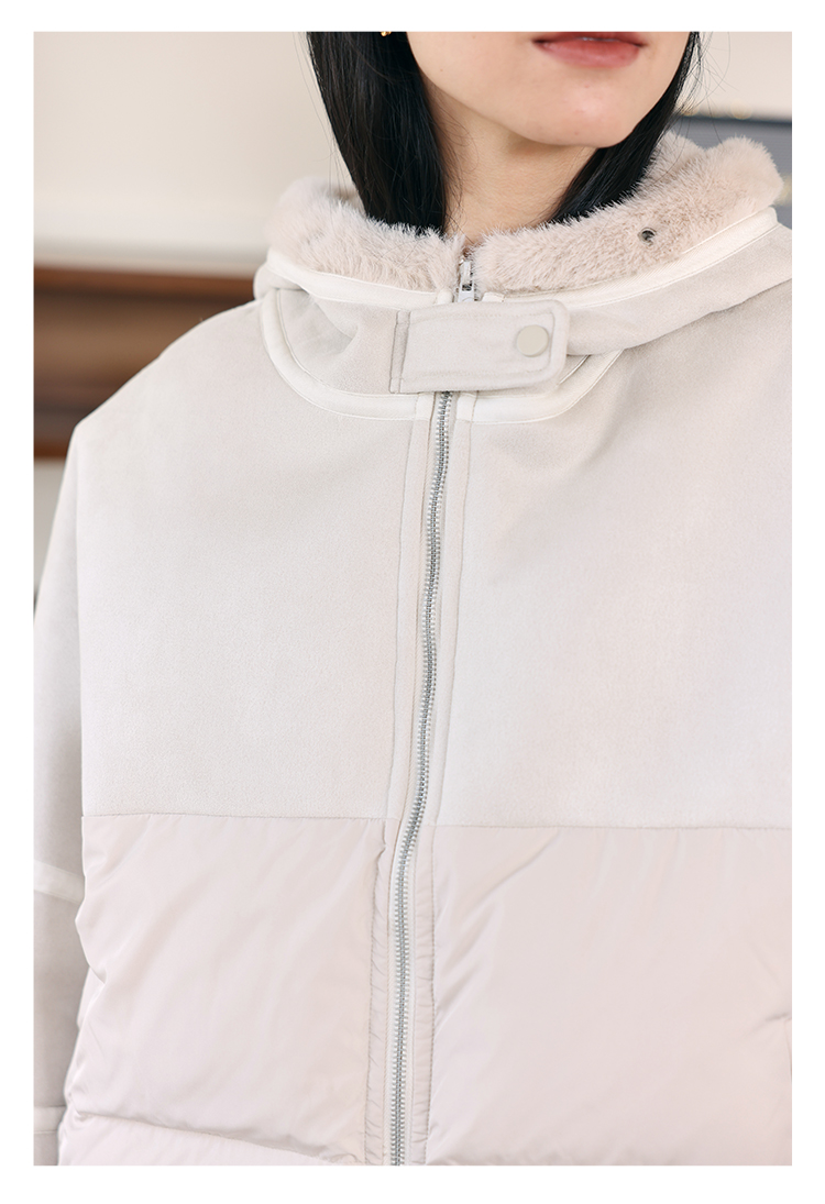HeyDress麂皮羽绒服女冬季宽松加绒抗寒保暖外套别致连帽设计上衣