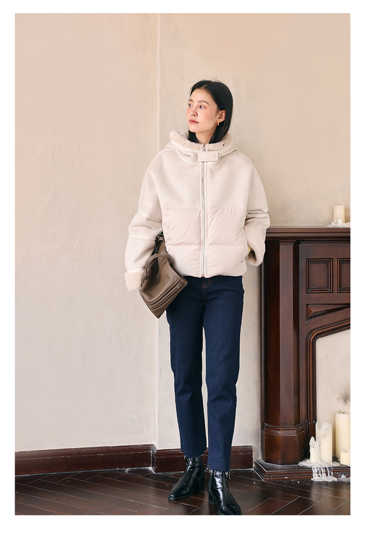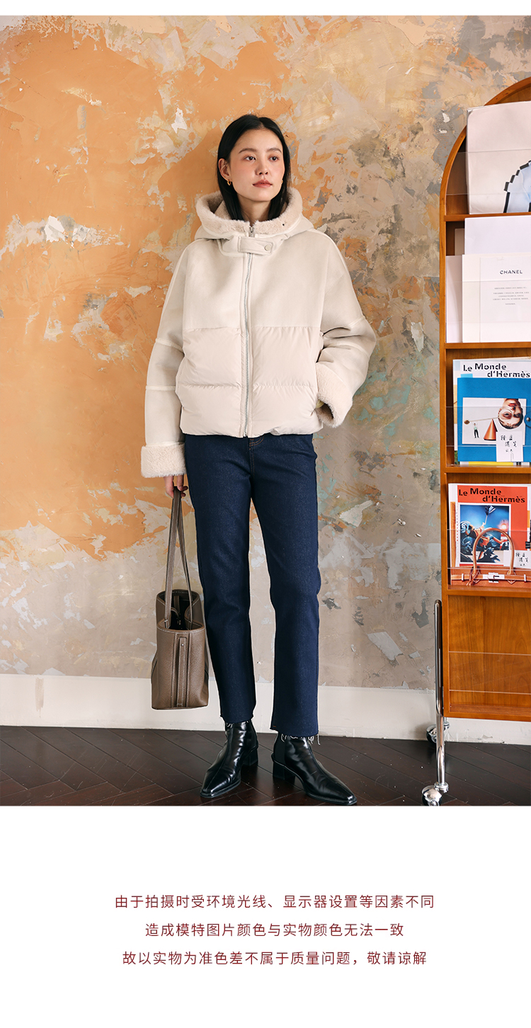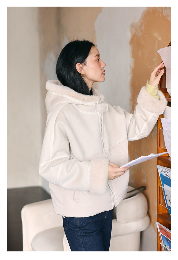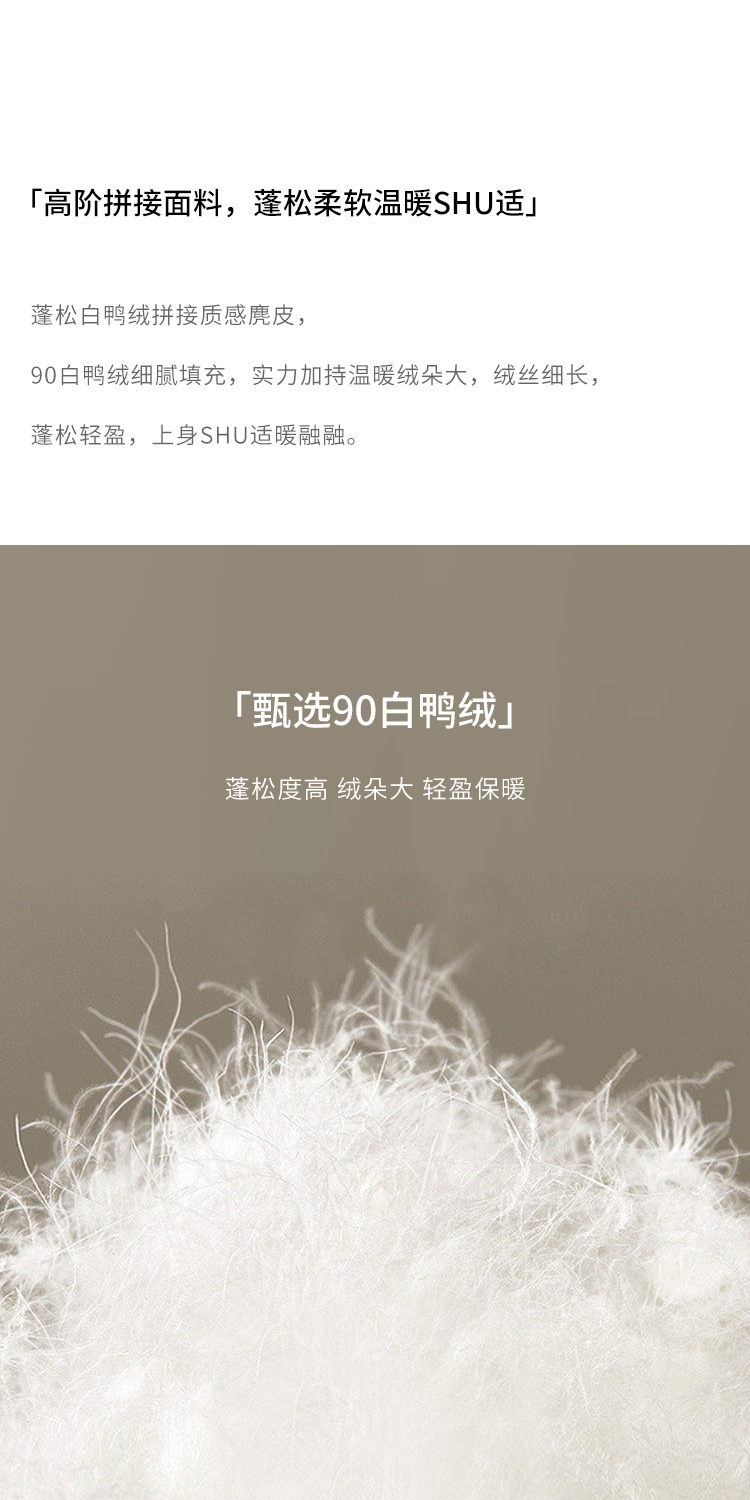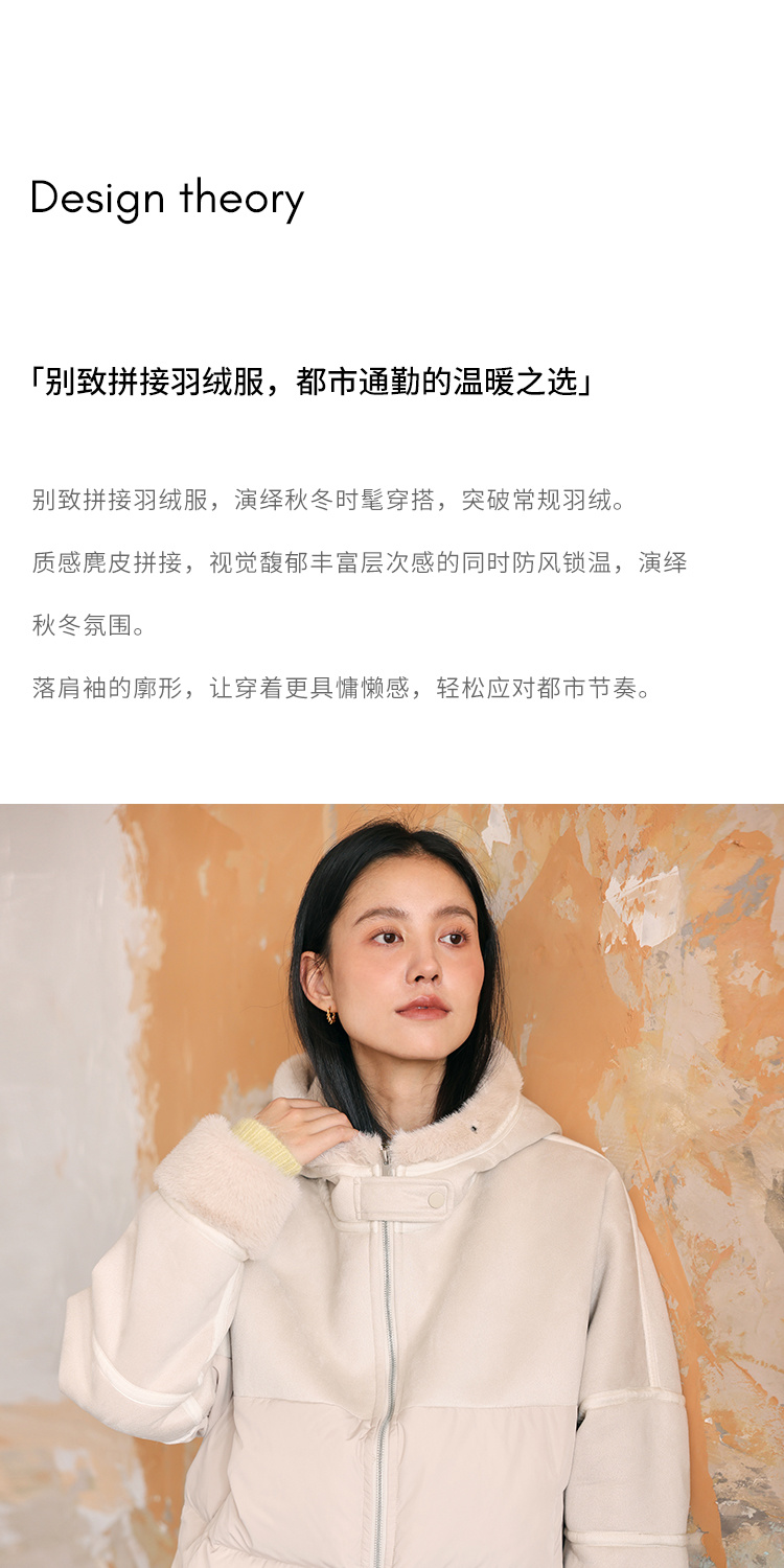 HeyDress麂皮羽绒服女冬季宽松加绒抗寒保暖外套别致连帽设计上衣