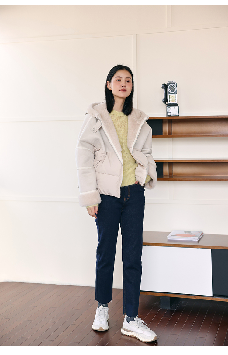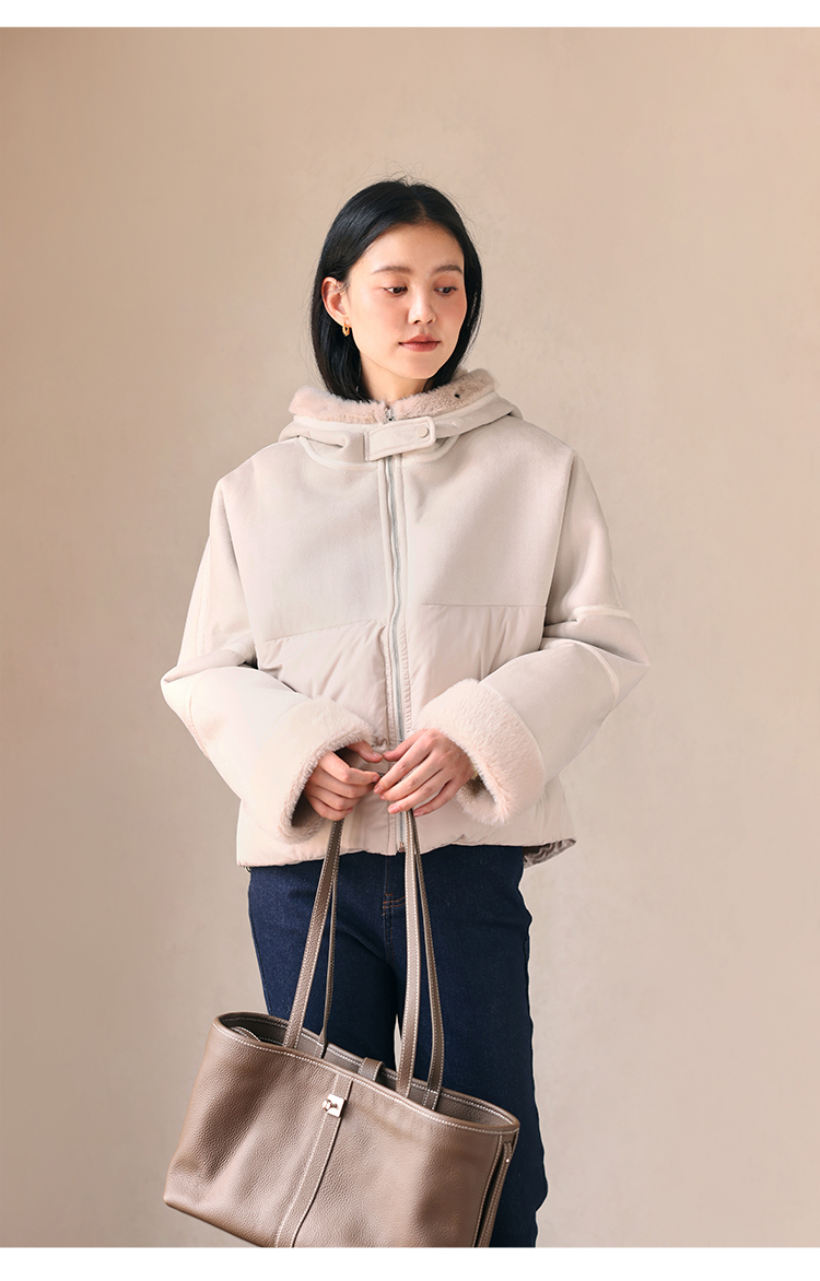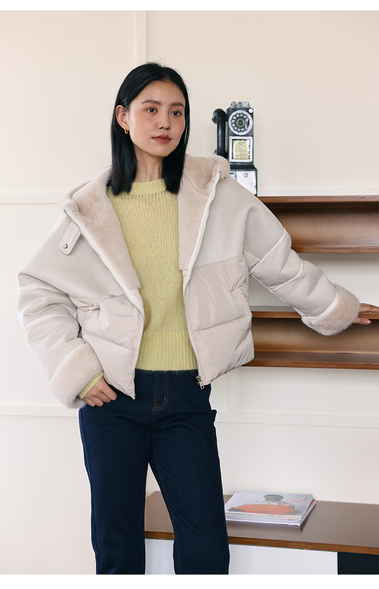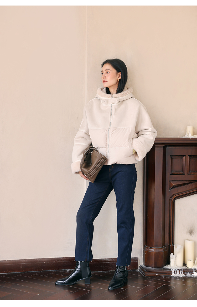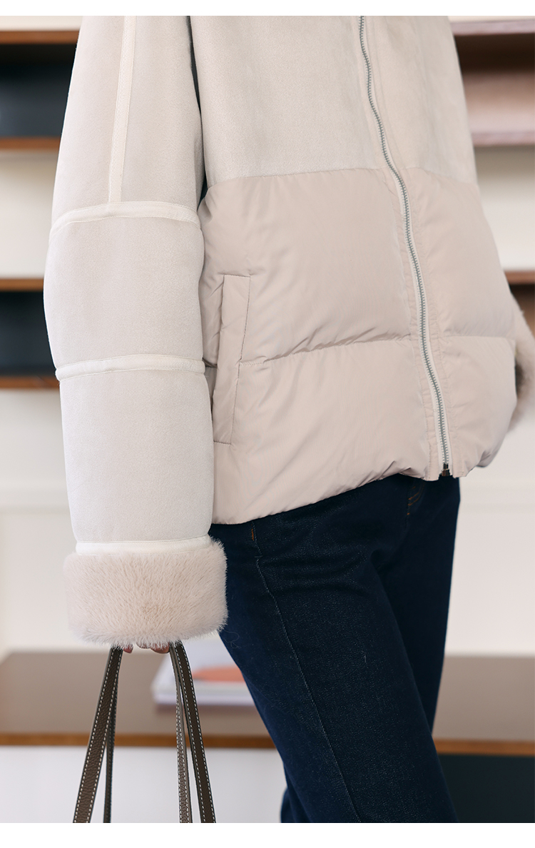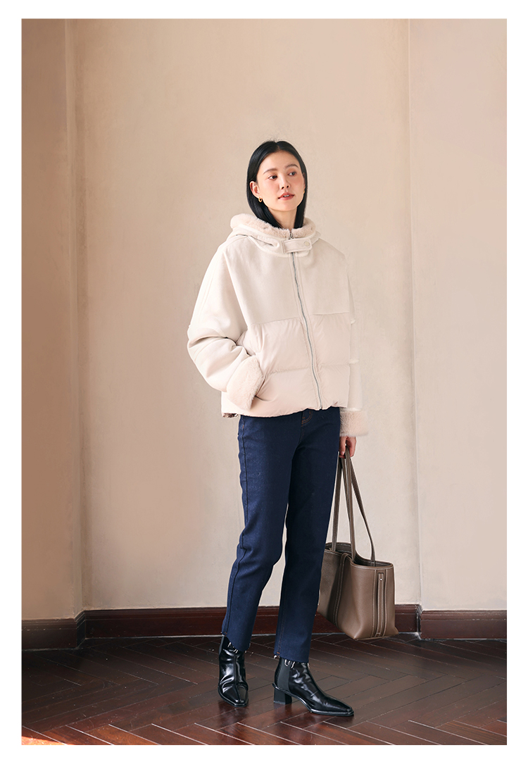 HeyDress麂皮羽绒服女冬季宽松加绒抗寒保暖外套别致连帽设计上衣