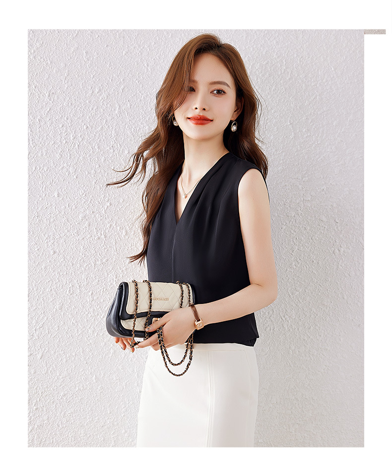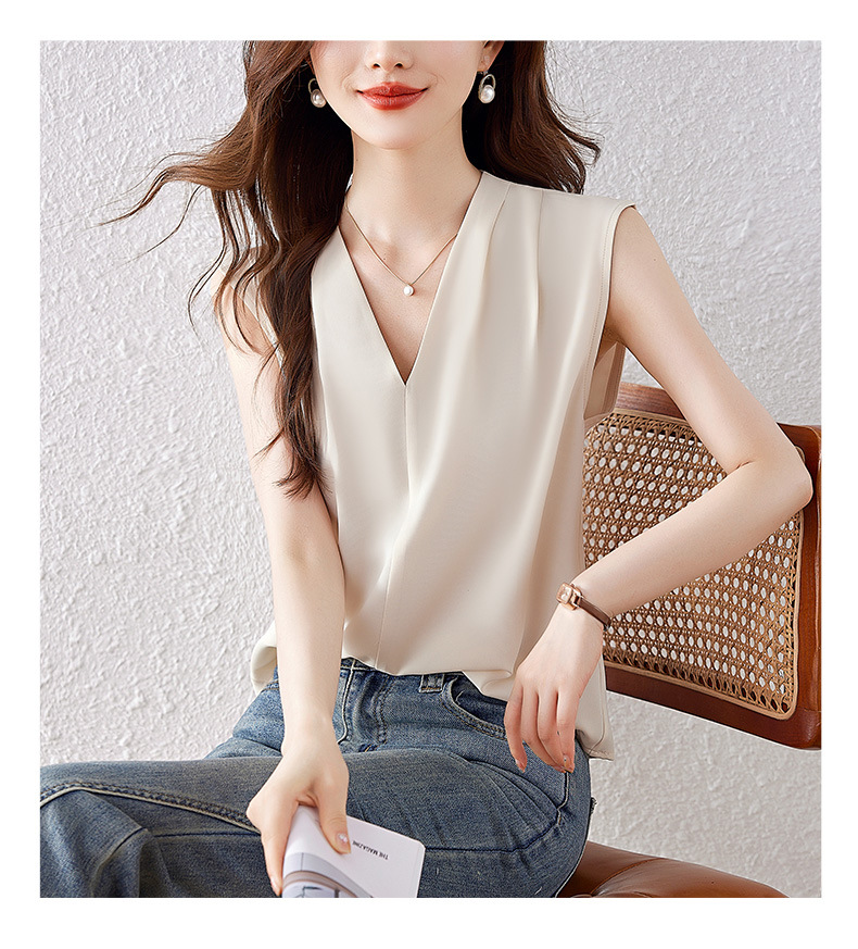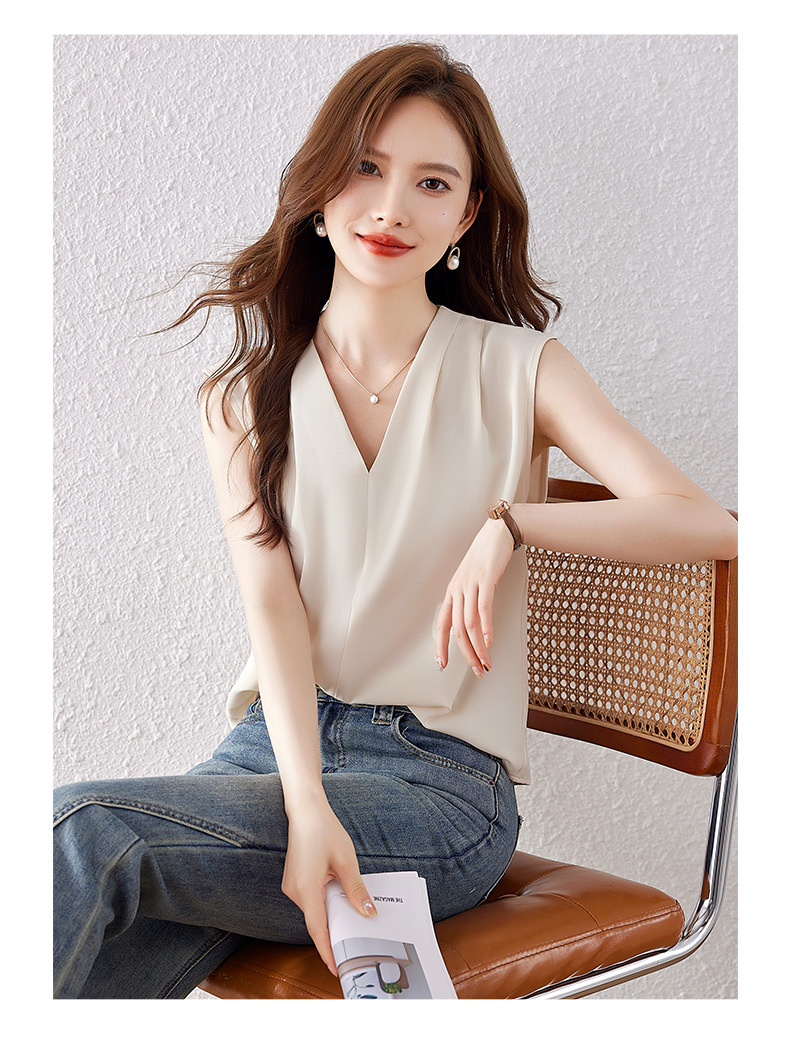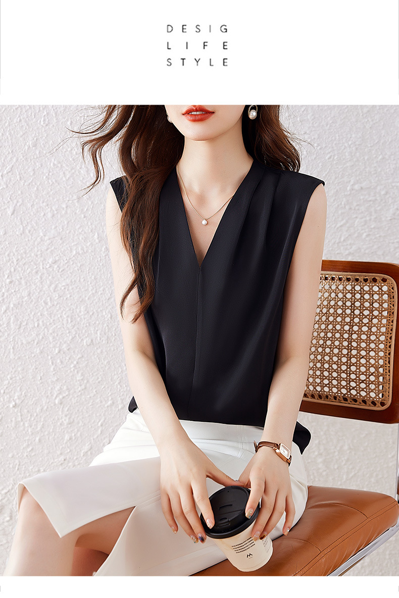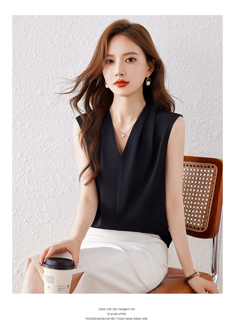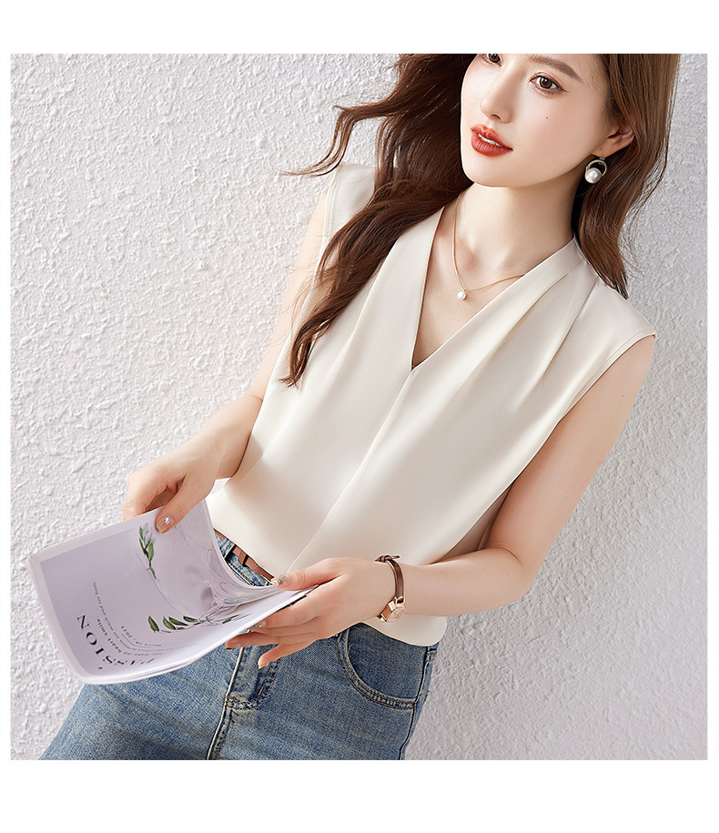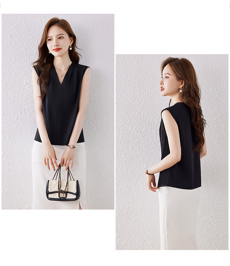 雀说小心机设计层次感衬衫上衣时尚气质V领宽松减龄背心AL7781