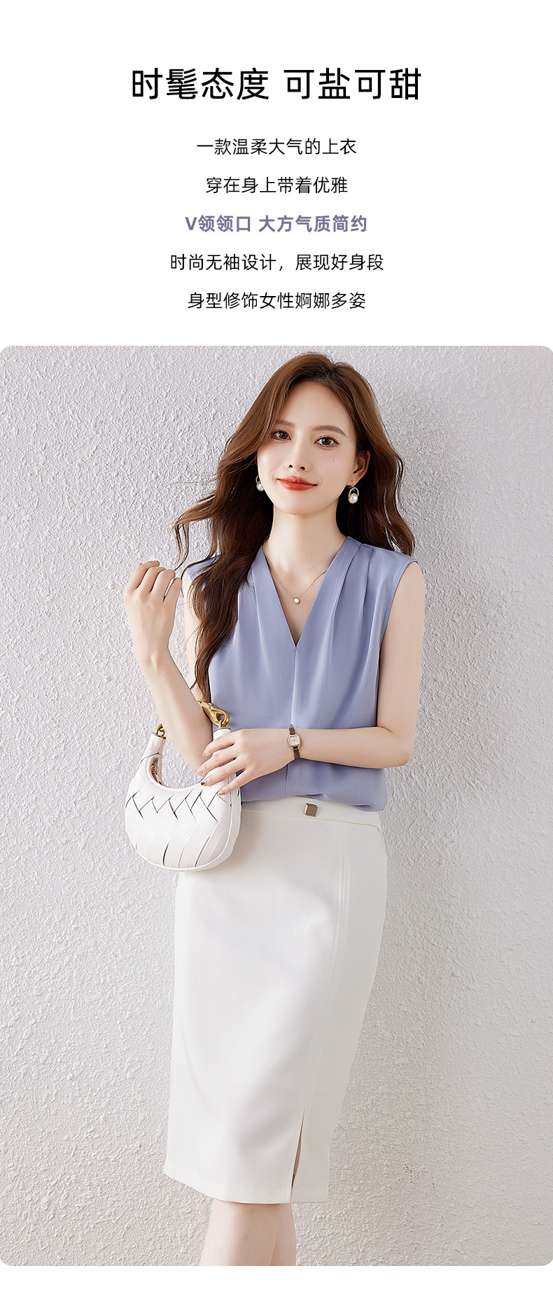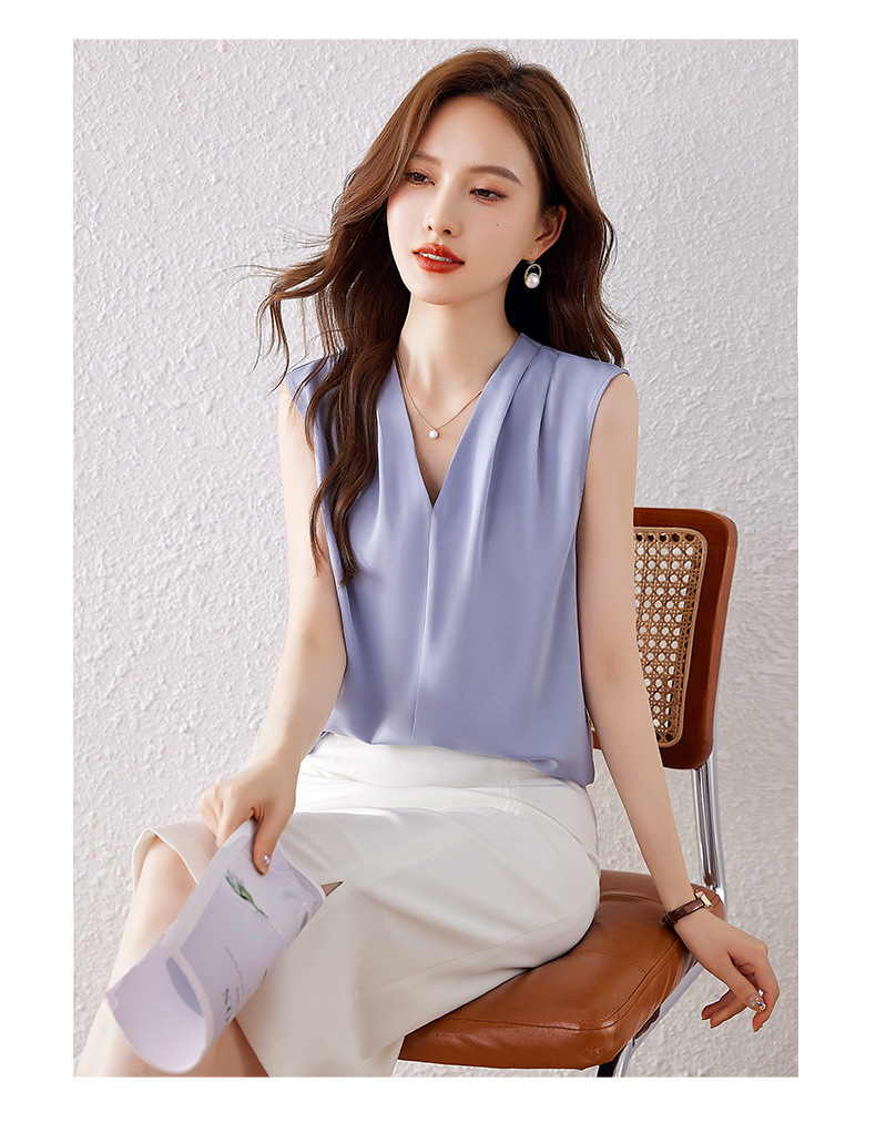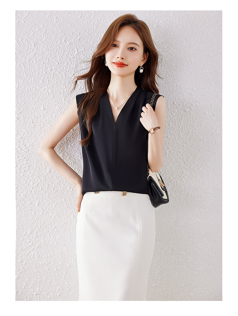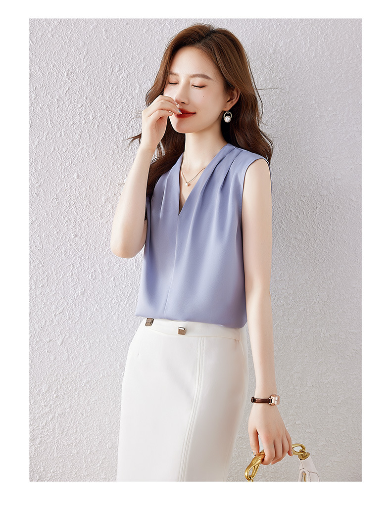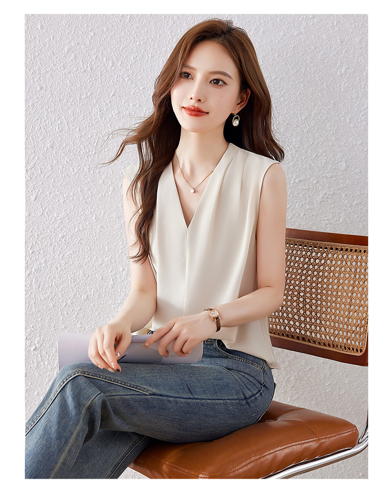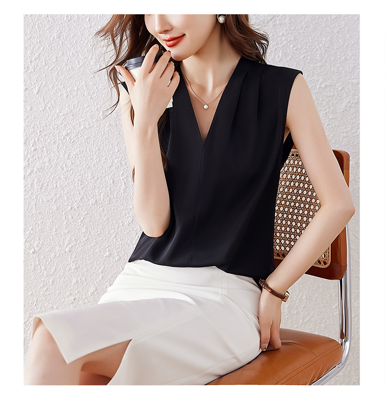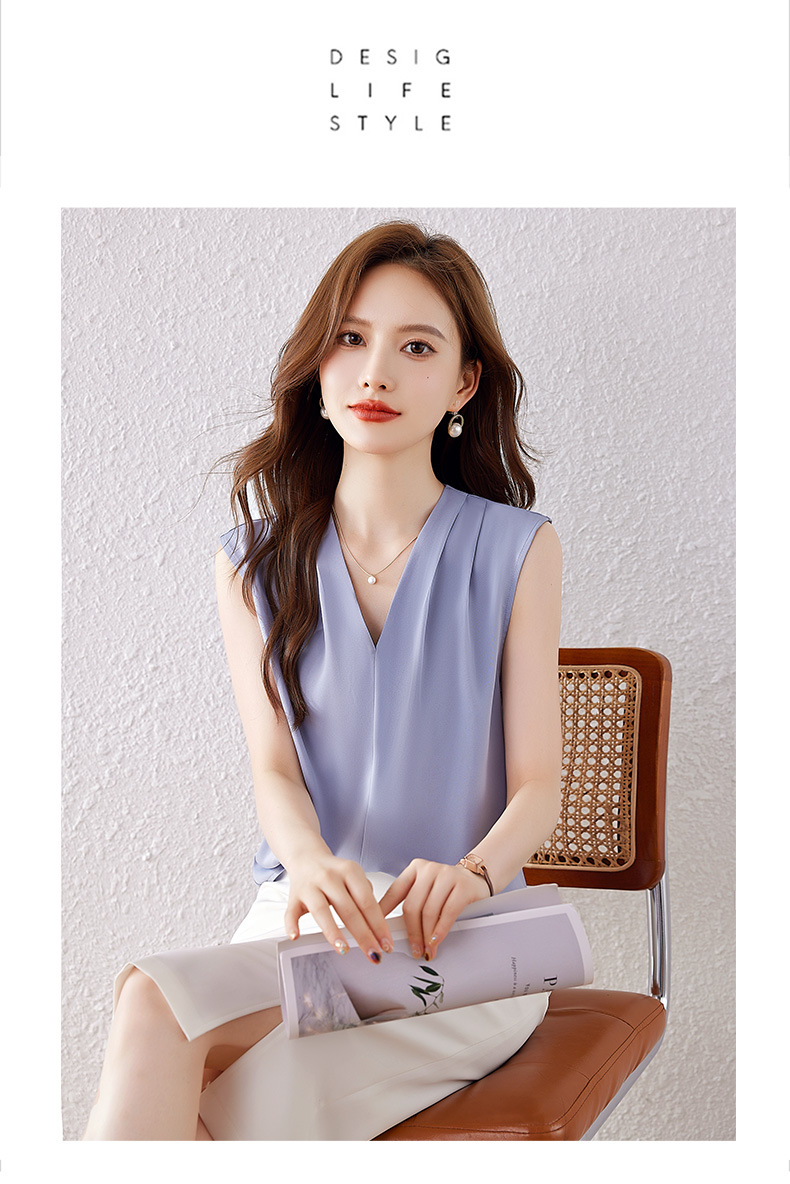 雀说小心机设计层次感衬衫上衣时尚气质V领宽松减龄背心AL7781