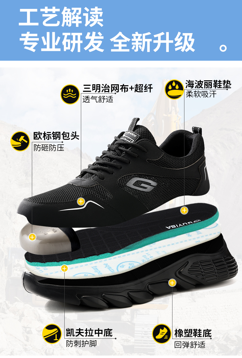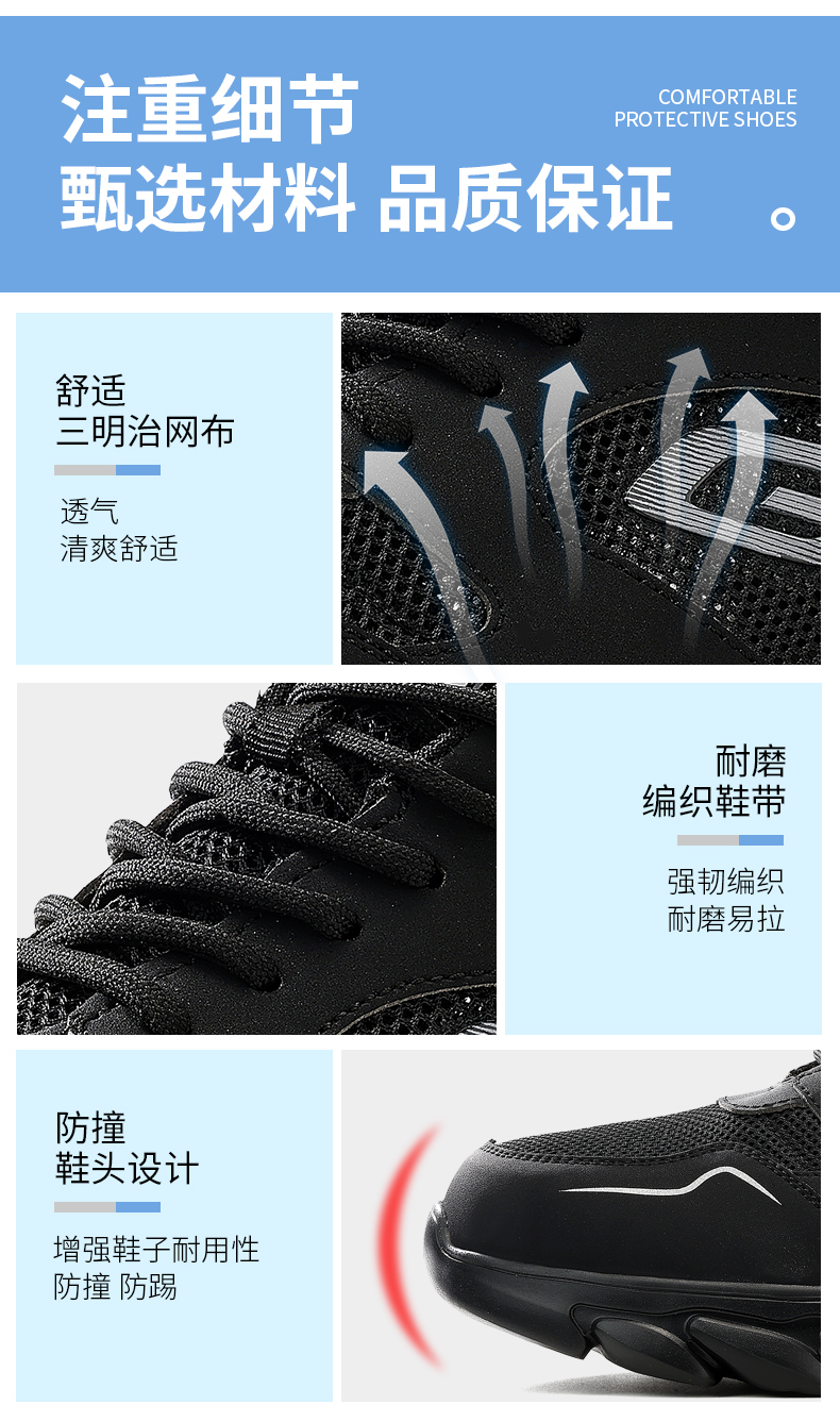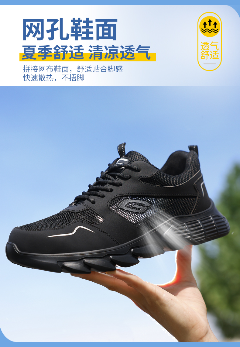 新款夏季款轻便劳保鞋男网布透气防砸防刺钢包头橡塑大底透气安全鞋工作鞋不捂脚