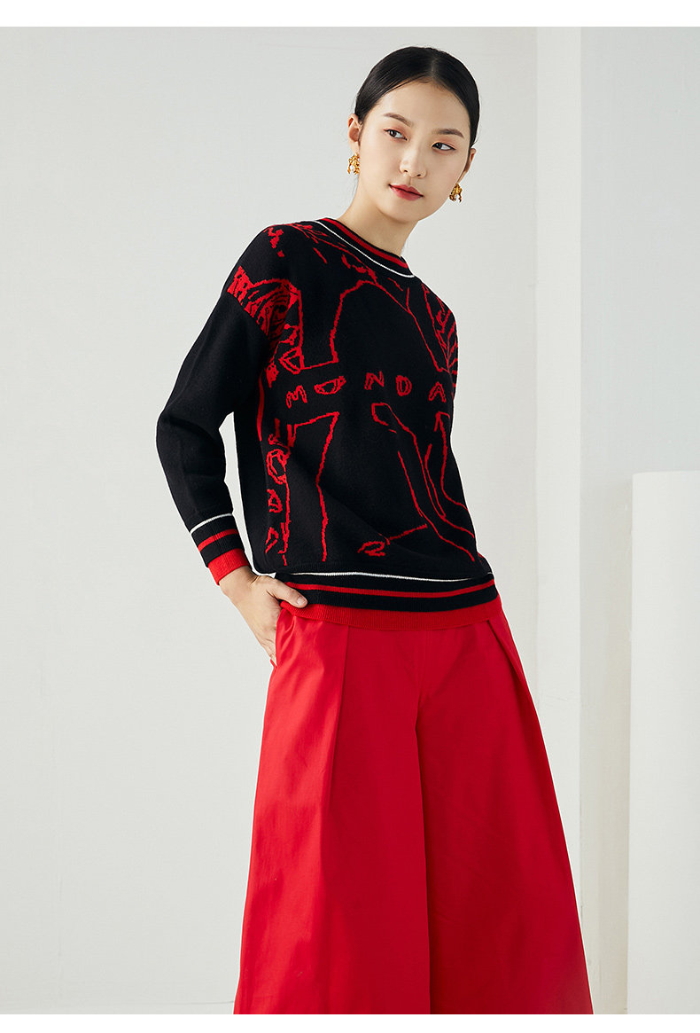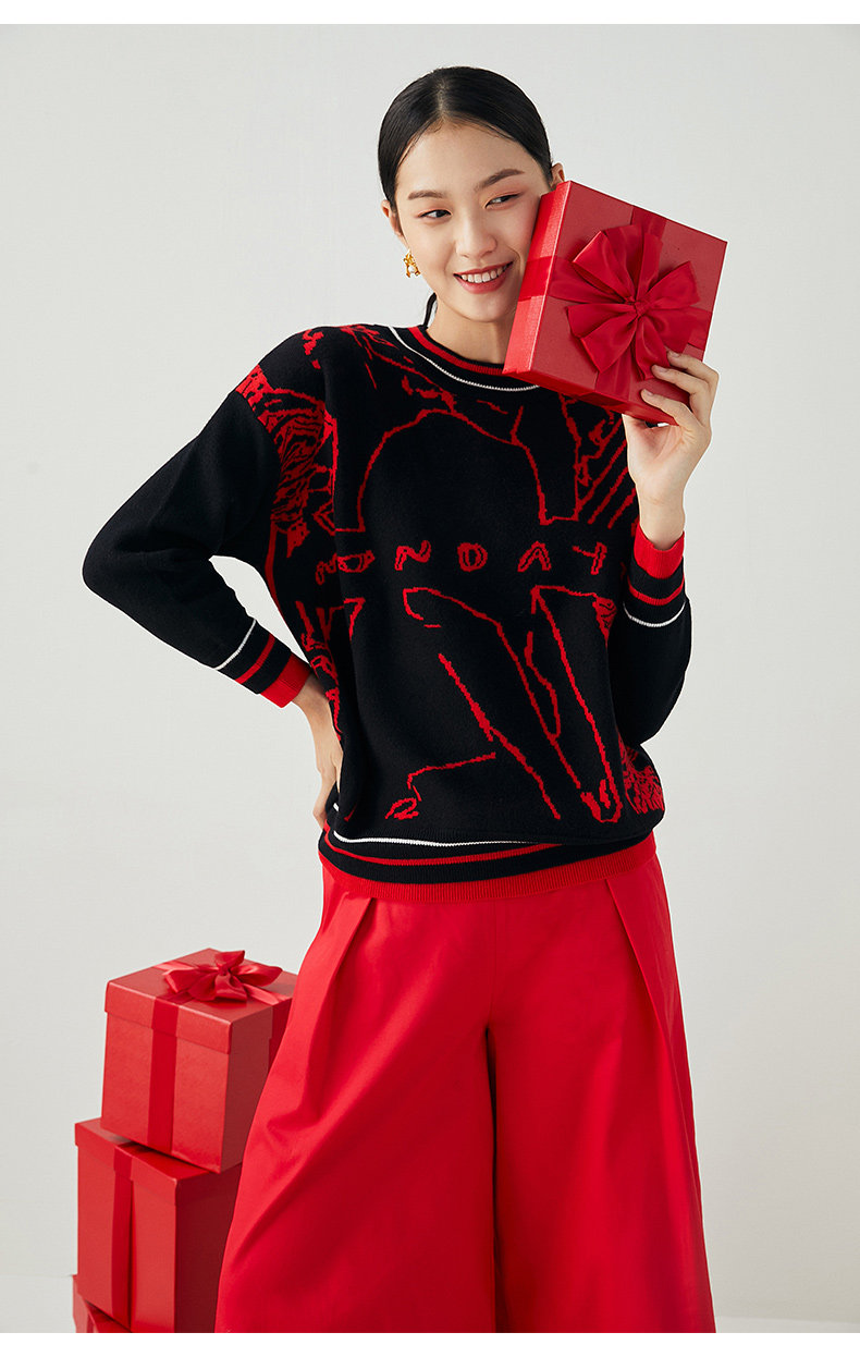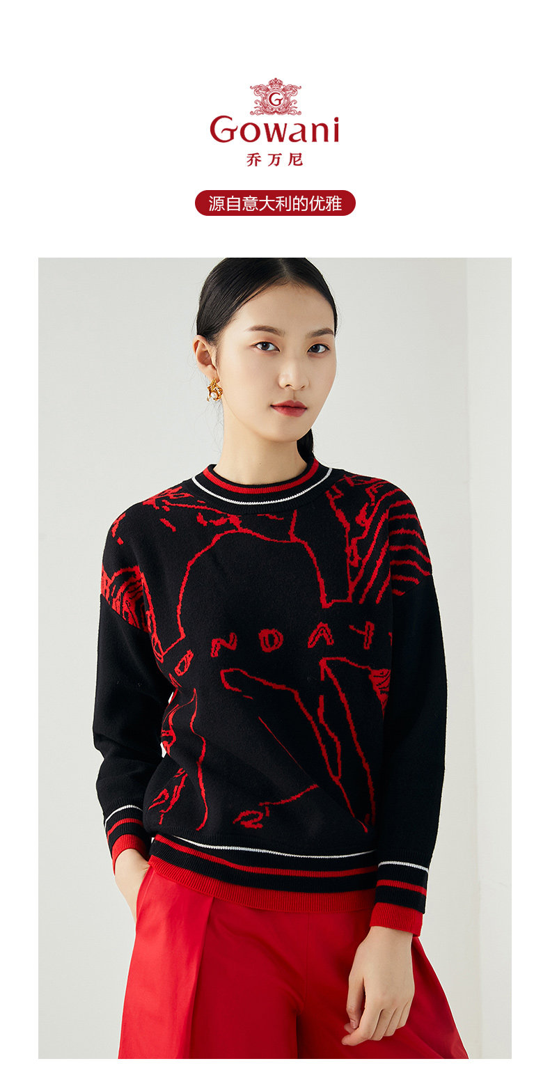 乔万尼秋冬新款纯羊毛时尚减龄休闲撞色设计感卫衣式连衣裙ES4M381