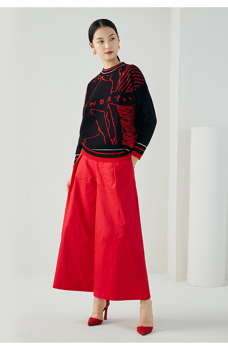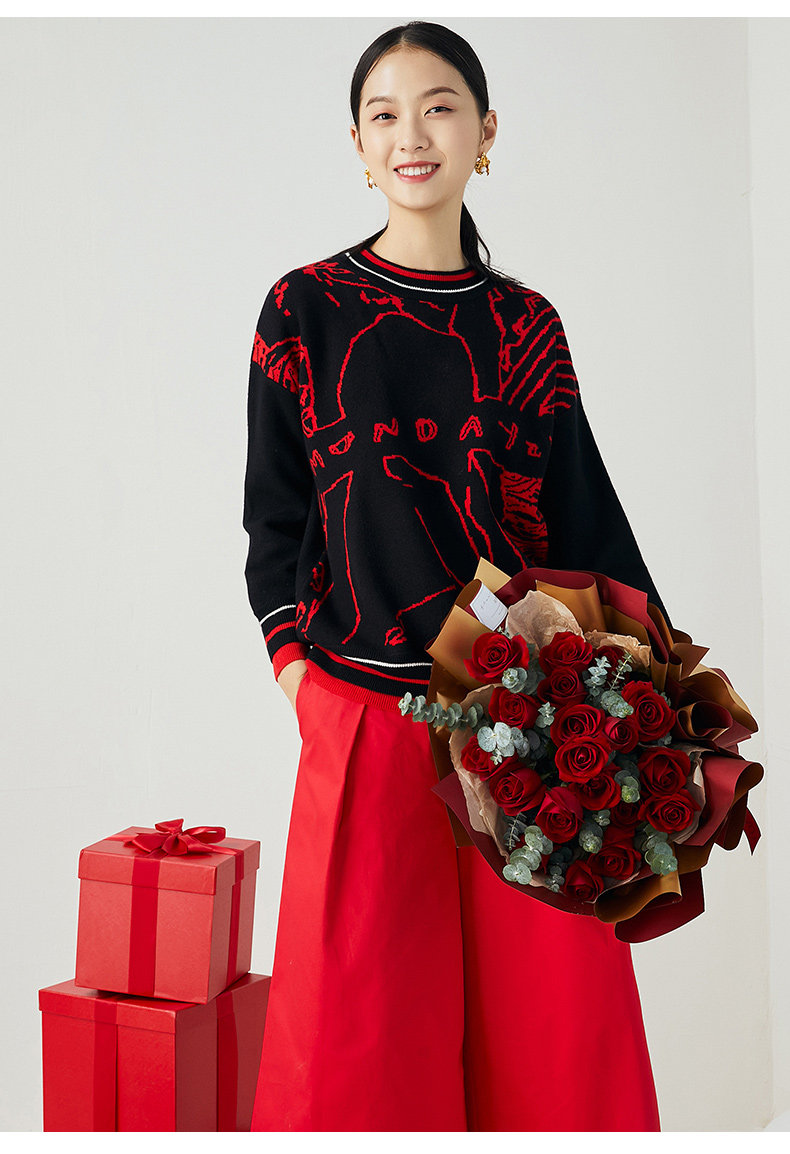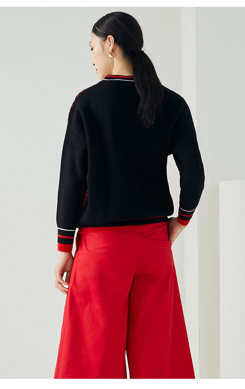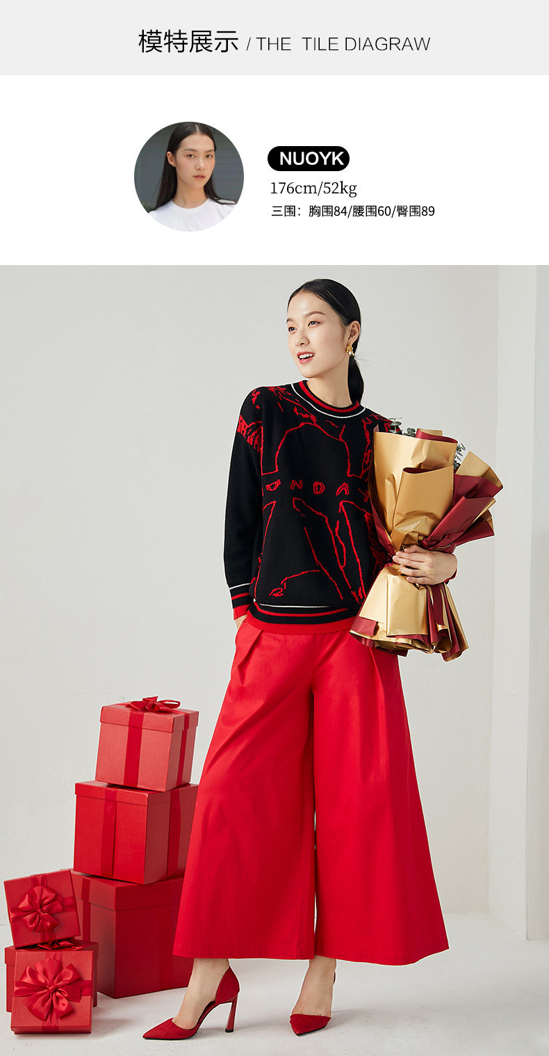 乔万尼秋冬新款纯羊毛时尚减龄休闲撞色设计感卫衣式连衣裙ES4M381