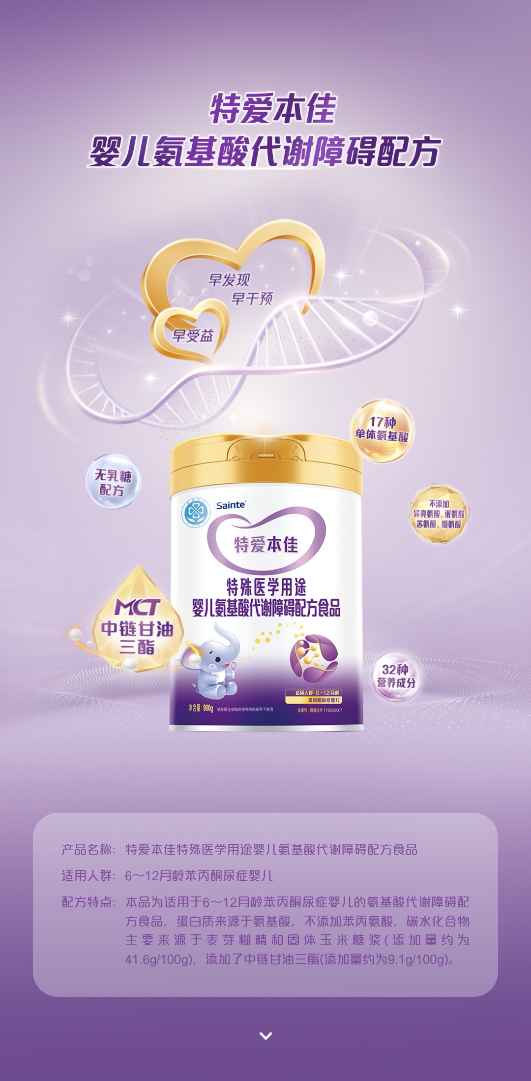 【20倍积分】特爱本佳(苯丙酮尿症特奶)900g/罐 正规发票
