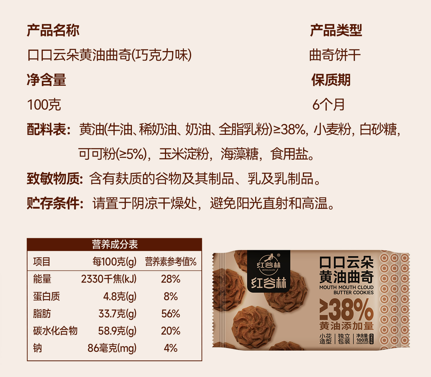 红谷林口口云朵黄油曲奇原味巧克力味曲奇饼干办公室解馋休闲零食