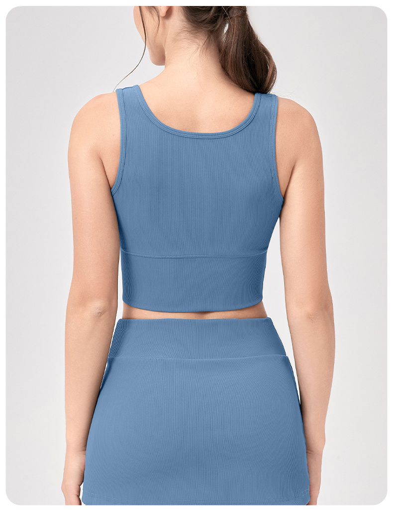 跃牌【欲动春风】系列 瑜伽背心女紧身高弹运动跑步上衣两面穿竖纹显瘦透气性感健身背心12118