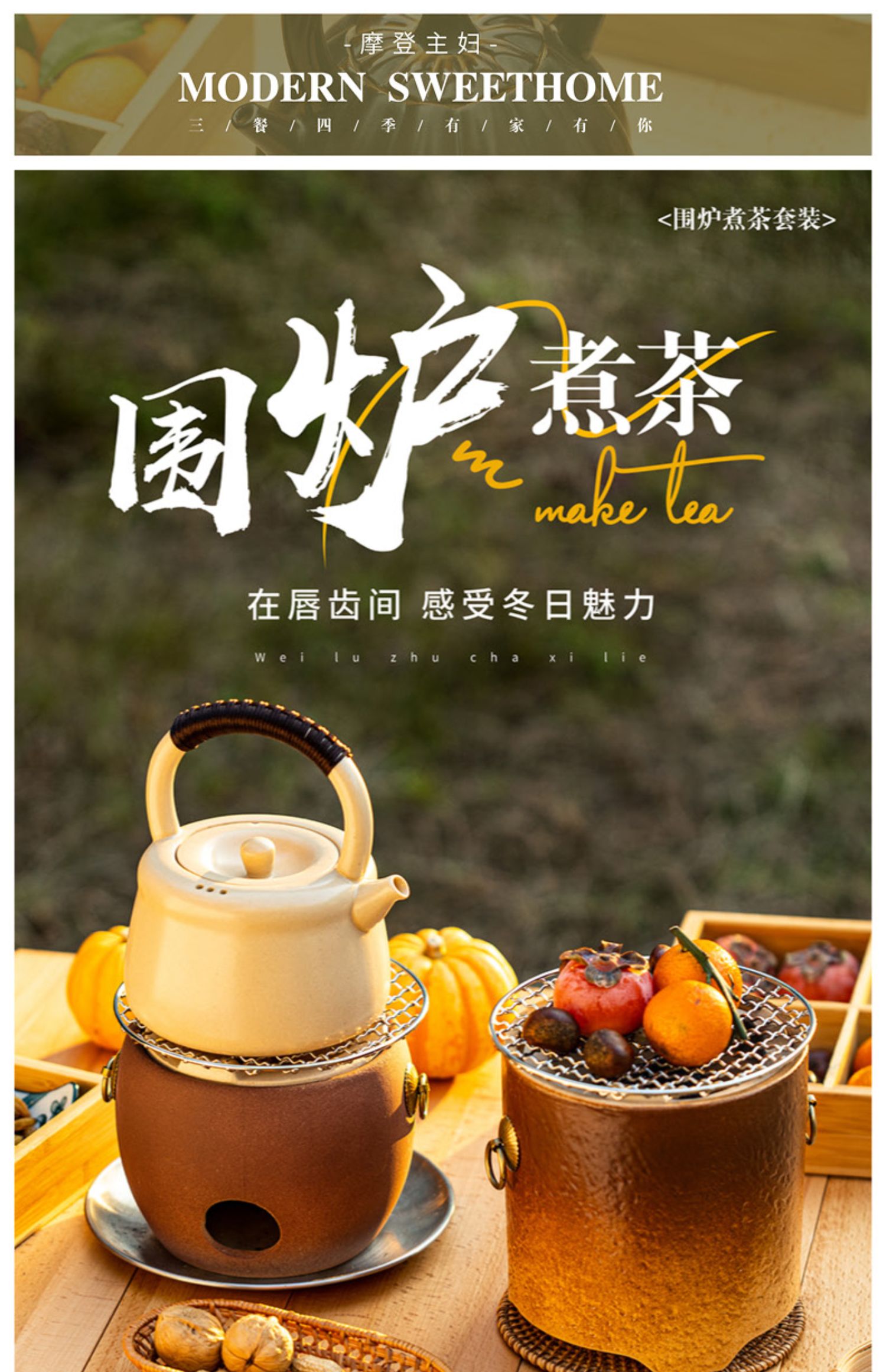 摩登主妇围炉煮茶家用室内烤茶煮茶器茶具套装罐罐茶陶瓷茶壶炭炉