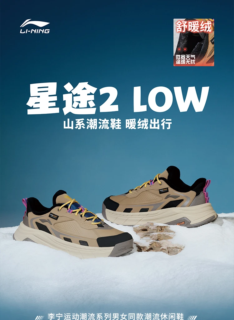 李宁星途2 LOW男女同款反光加绒保暖潮流休闲鞋AGLV171